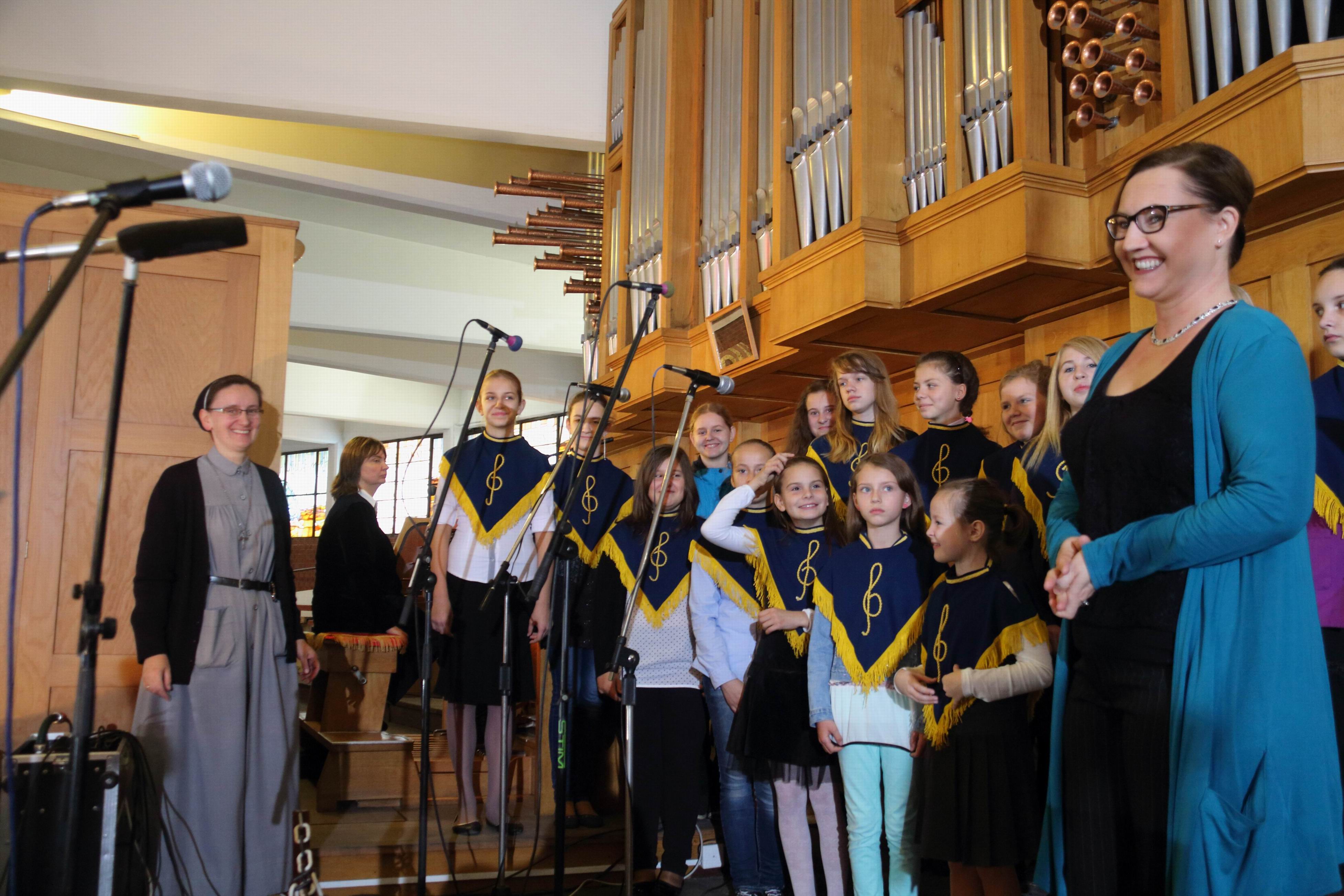 W obu tych nabożeństwach wykonaliśmy utwór skomponowany w X rocznicę śmierci ks. Jerzego Popiełuszki przez znanego bydgoskiego organistę Mieczysława Kowalskiego do słów nieznanego autora - „Pieśń ku czci ks. Jerzego Popiełuszki”. Bardzo miłym dla nas akcentem był dwukrotny udział Scholi dziecięcej pięknie przygotowanej przez Siostrę Mariolę Sośnicką w wykonaniu tej przejmującej pieśni.