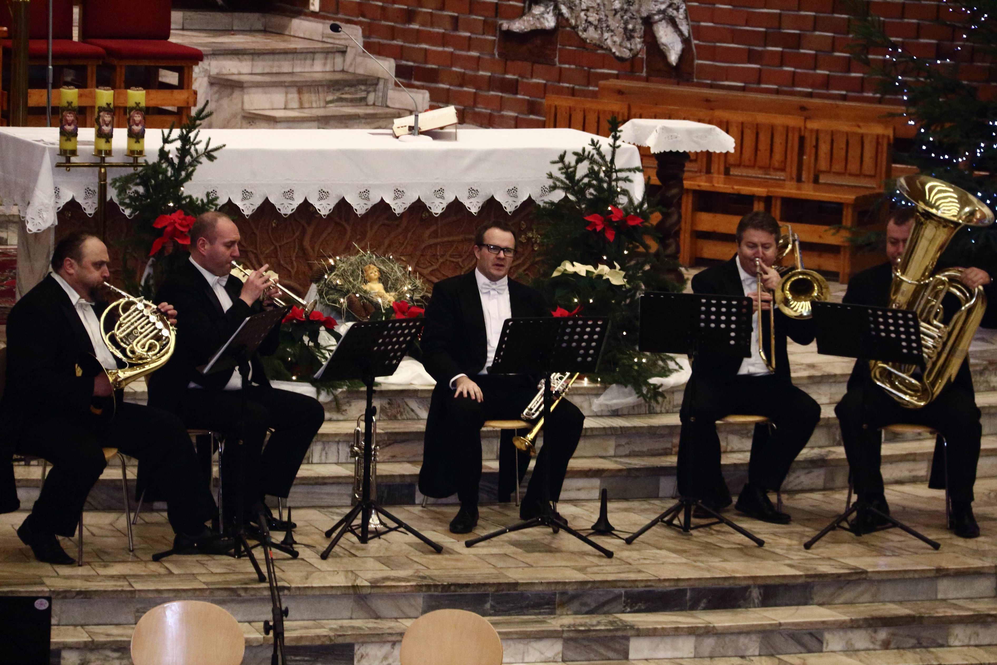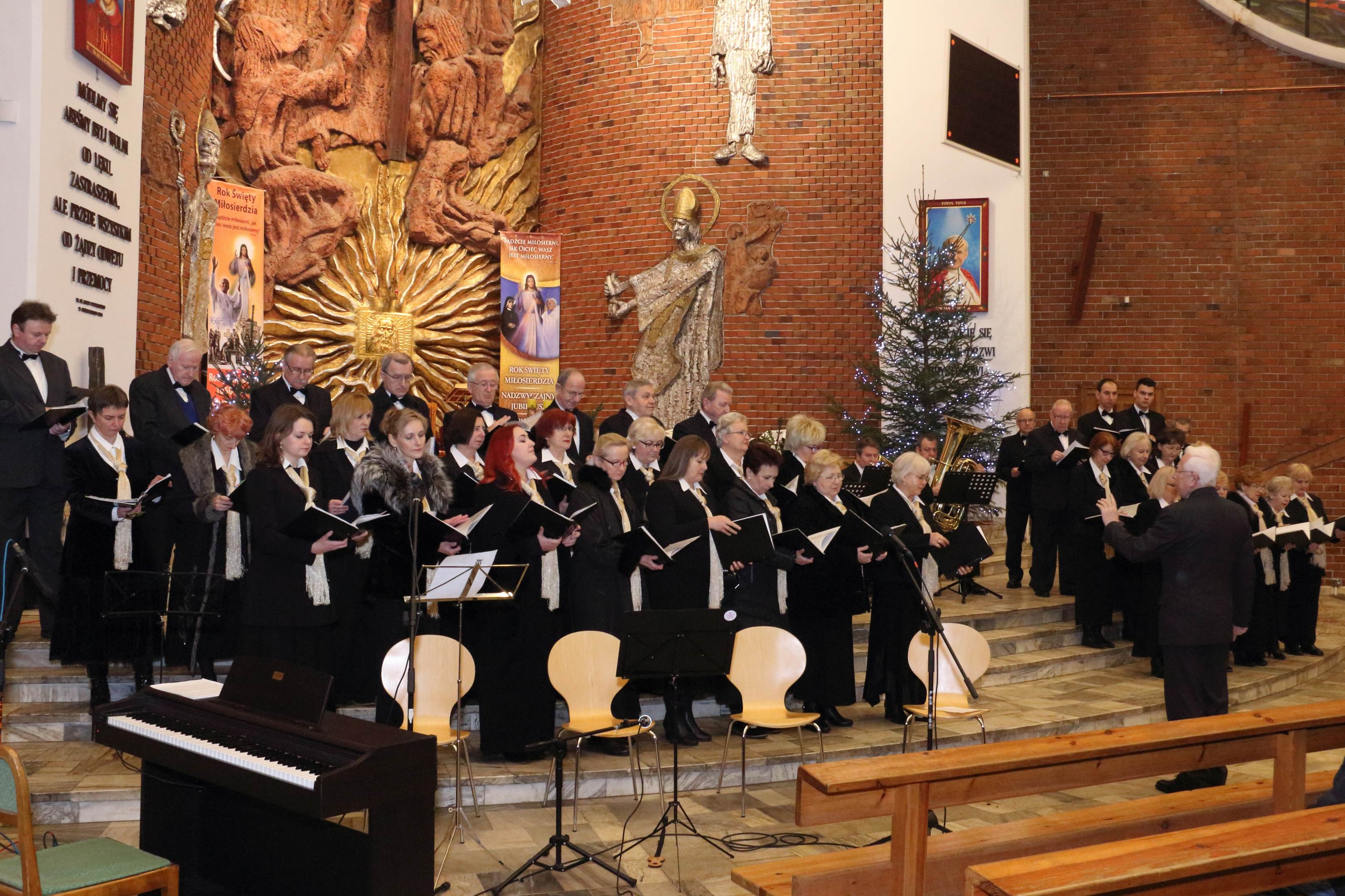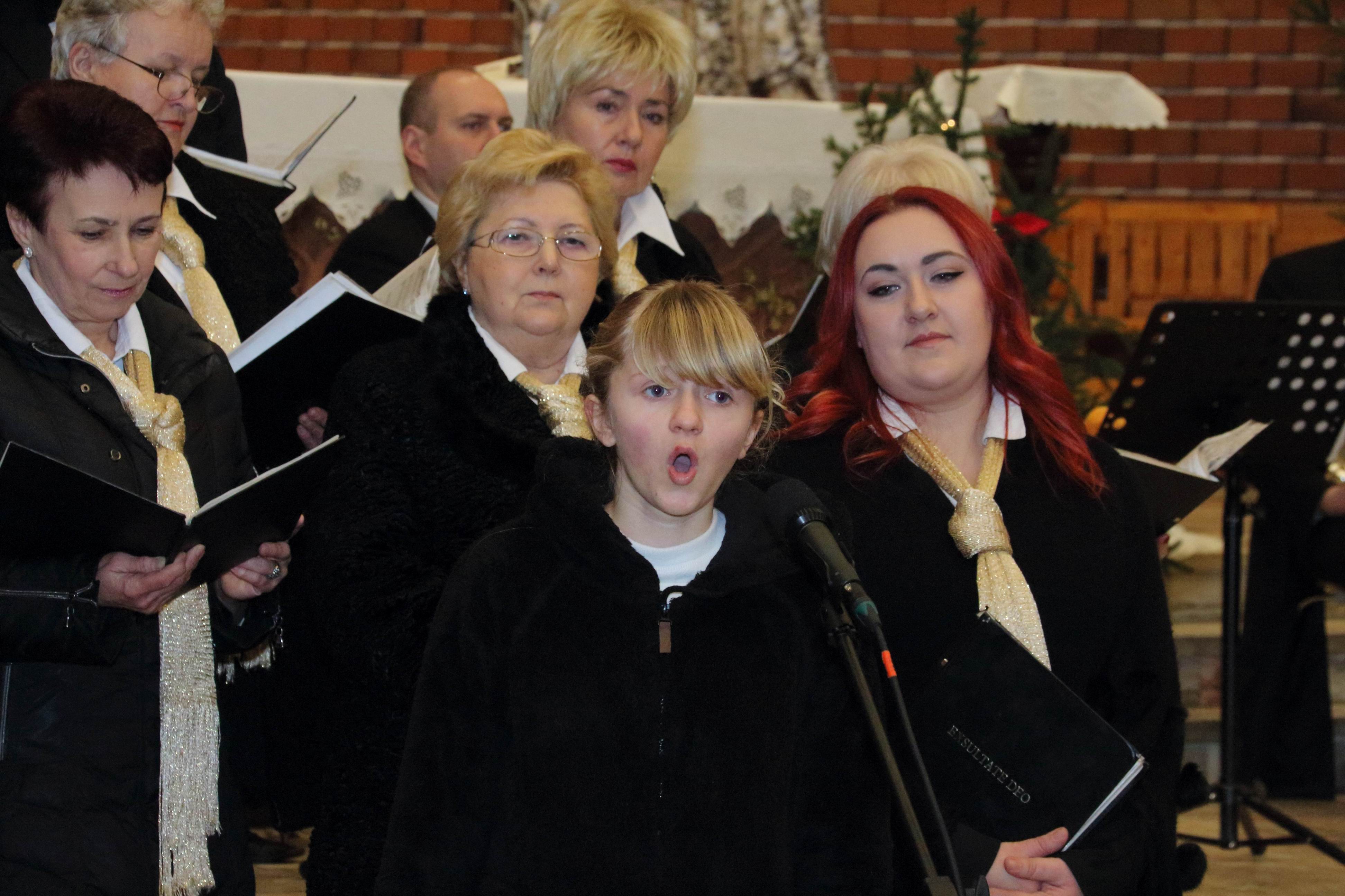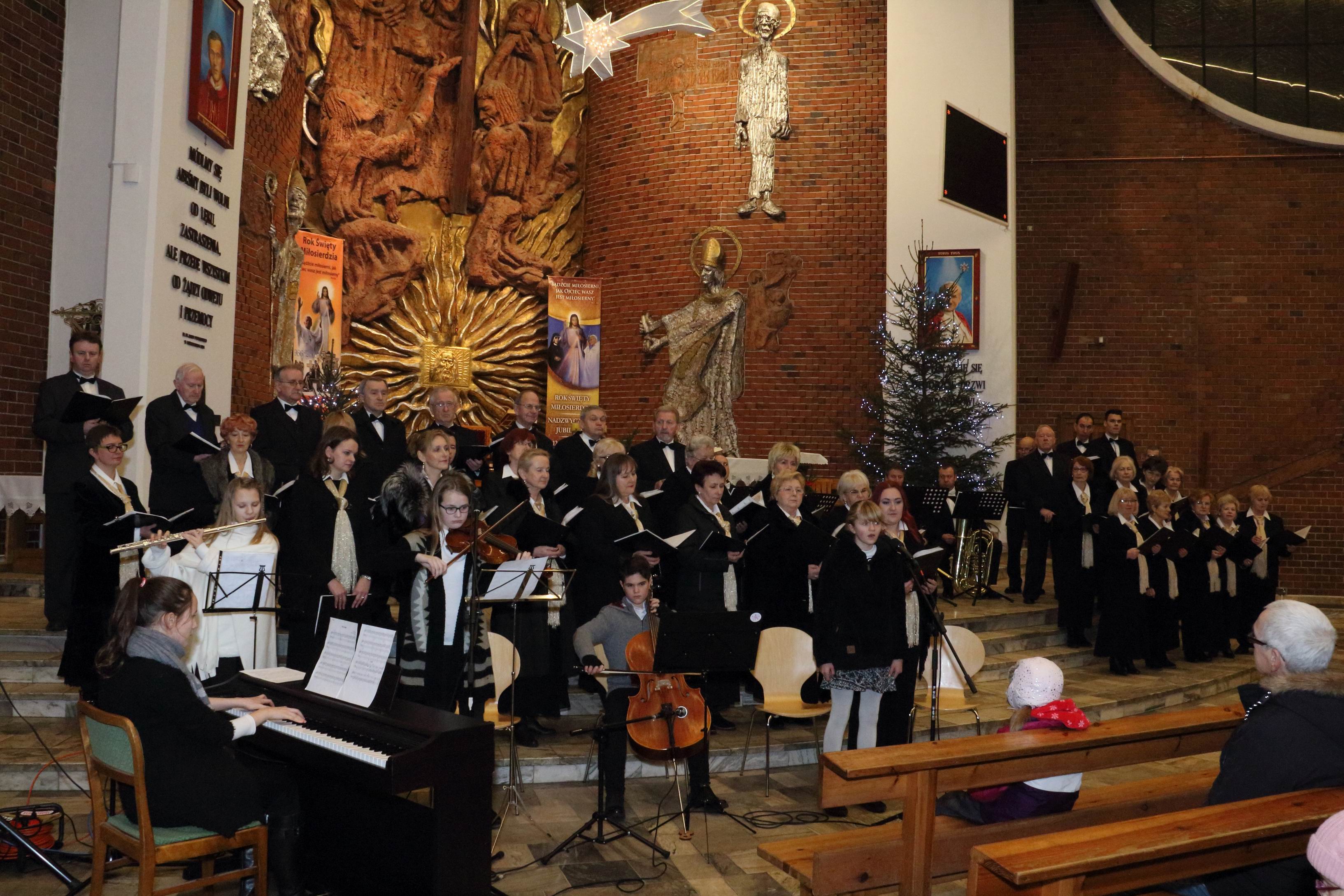 W koncercie wystąpili: znakomity, o pięknym brzmieniu, bydgoski kwintet instrumentów dętych „Triumphal Brass Quintet”, młodzieżowy Zespół Kameralny z PZSM im. Artura Rubinsteina w Bydgoszczy oraz nasz chór „Exsultate Deo”. Podczas dwugodzinnego(!) koncertu występujące zespoły wykonały piękne polskie i zagraniczne kolędy. Prezentowano je zarówno w wersji instrumentalnej jak i śpiewanej przez solistów, zespół i chór. Do śpiewu, zachęcona przez dyrygenta i ks. Proboszcza, chętnie włączyła się publiczność. Przecież kolędy zna i lubi śpiewać każdy! To był wspaniały koncert! Ten kto na nim nie był, ma czego żałować.