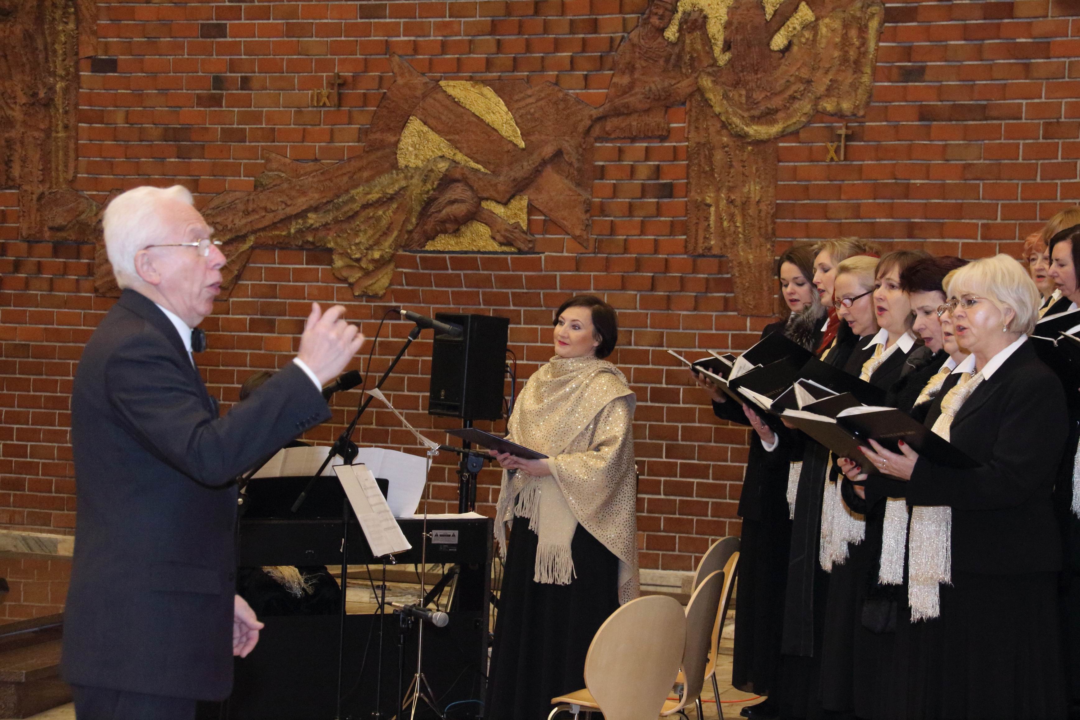 Koncert pięknie prowadziła pani Anna Merder. Na organach akompaniowała chórowi Beata Gaj a dyrygował Romuald Rajs.