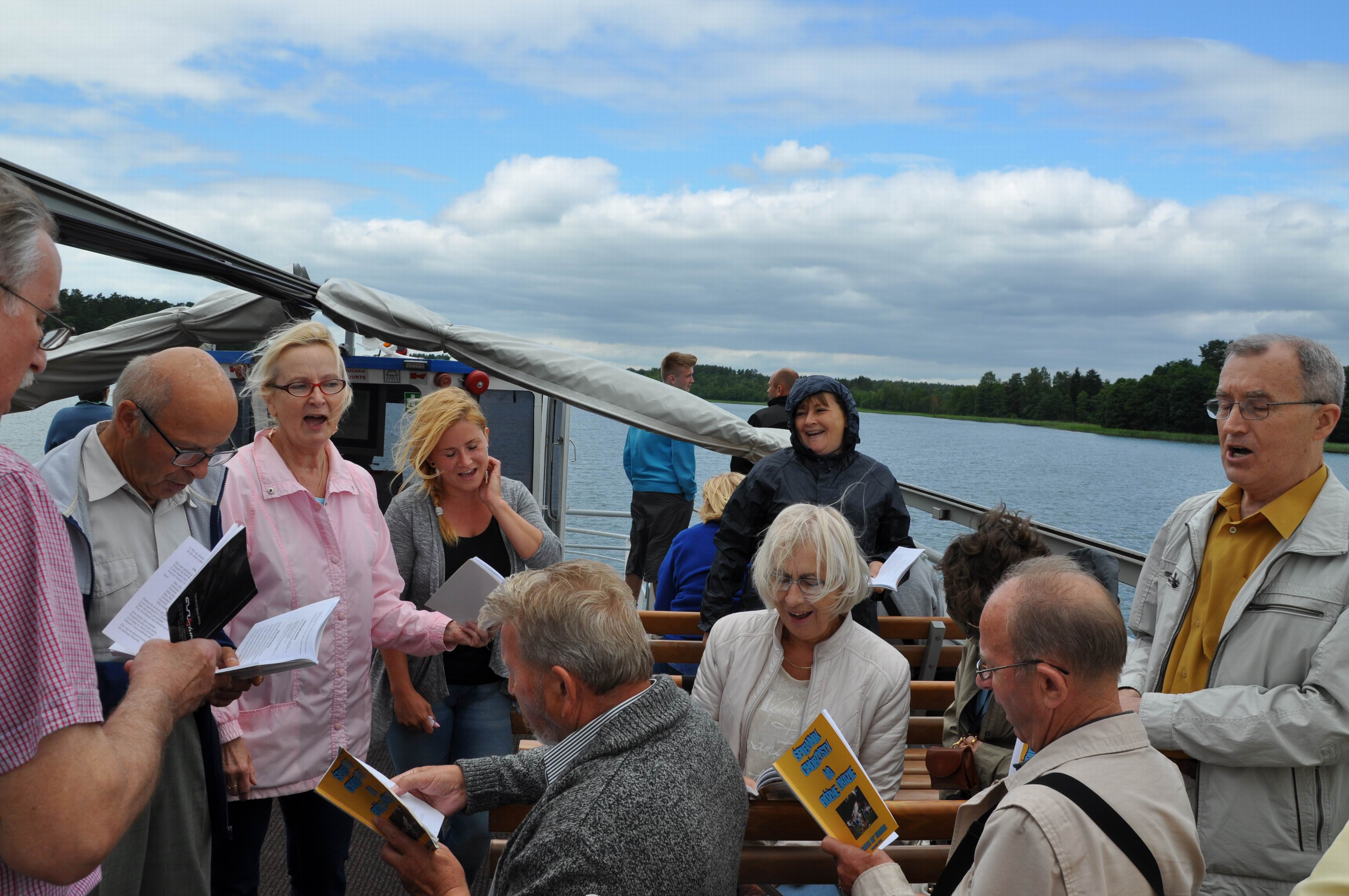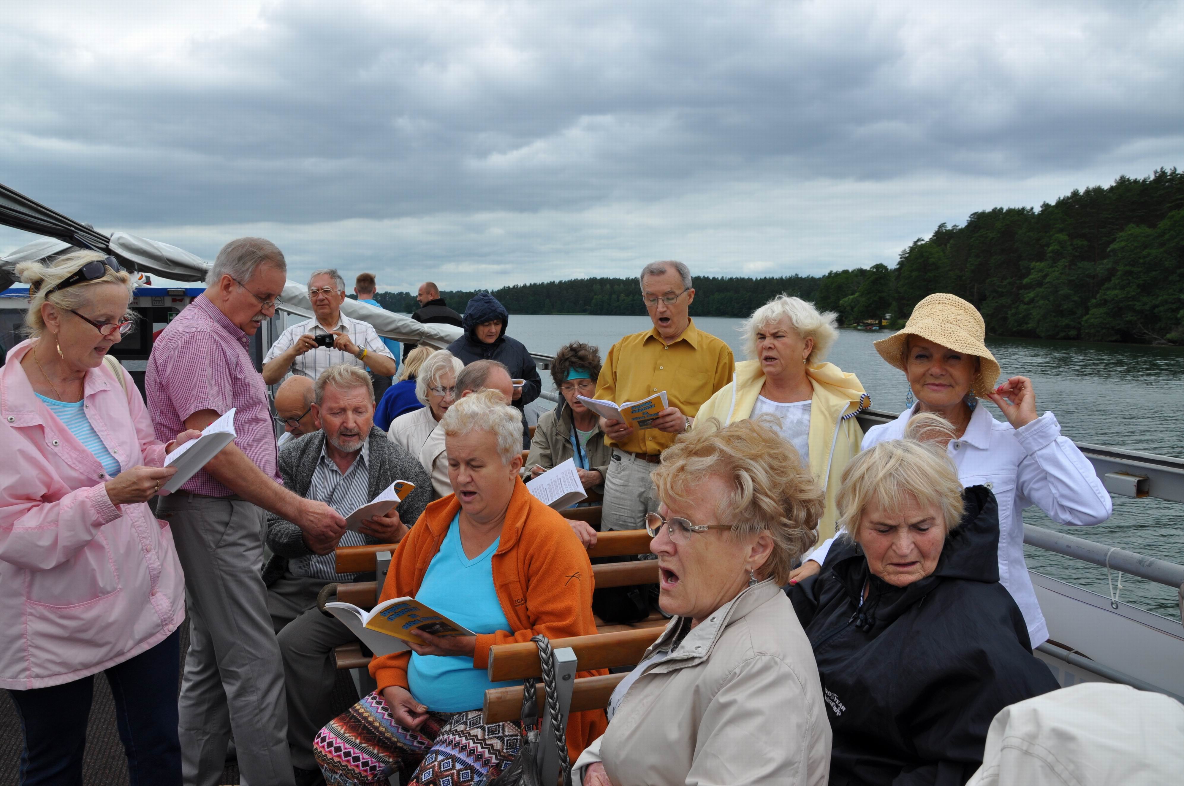 Dzień trzeci (poniedziałek) – wyjazd do Studzienicznej - nawiedzenie Sanktuarium Maryjnego i rejs statkiem - szlakiem papieskim - przez jezioro Studzienicze i śluzy do Augustowa. Na statku była też okazja by chór zaprezentował się w lekkim repertuarze. Kolejnym etapem tego dnia była Suchowola, gdzie nawiedzono kościół, w którym służył do mszy św. bł. ks. Jerzy Popiełuszko oraz izbę Jego pamięci. Carską drogą (od Osowca do Strękowej Góry) wrócono do Wizny.