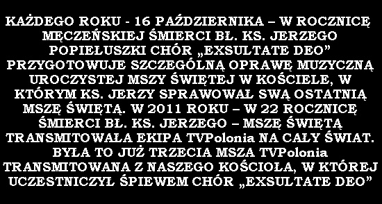 Jesteś tutaj: Home Duszpasterstwa Chór Exsultate Deo ZDJĘCIA MSZA TELEWIZYJNA