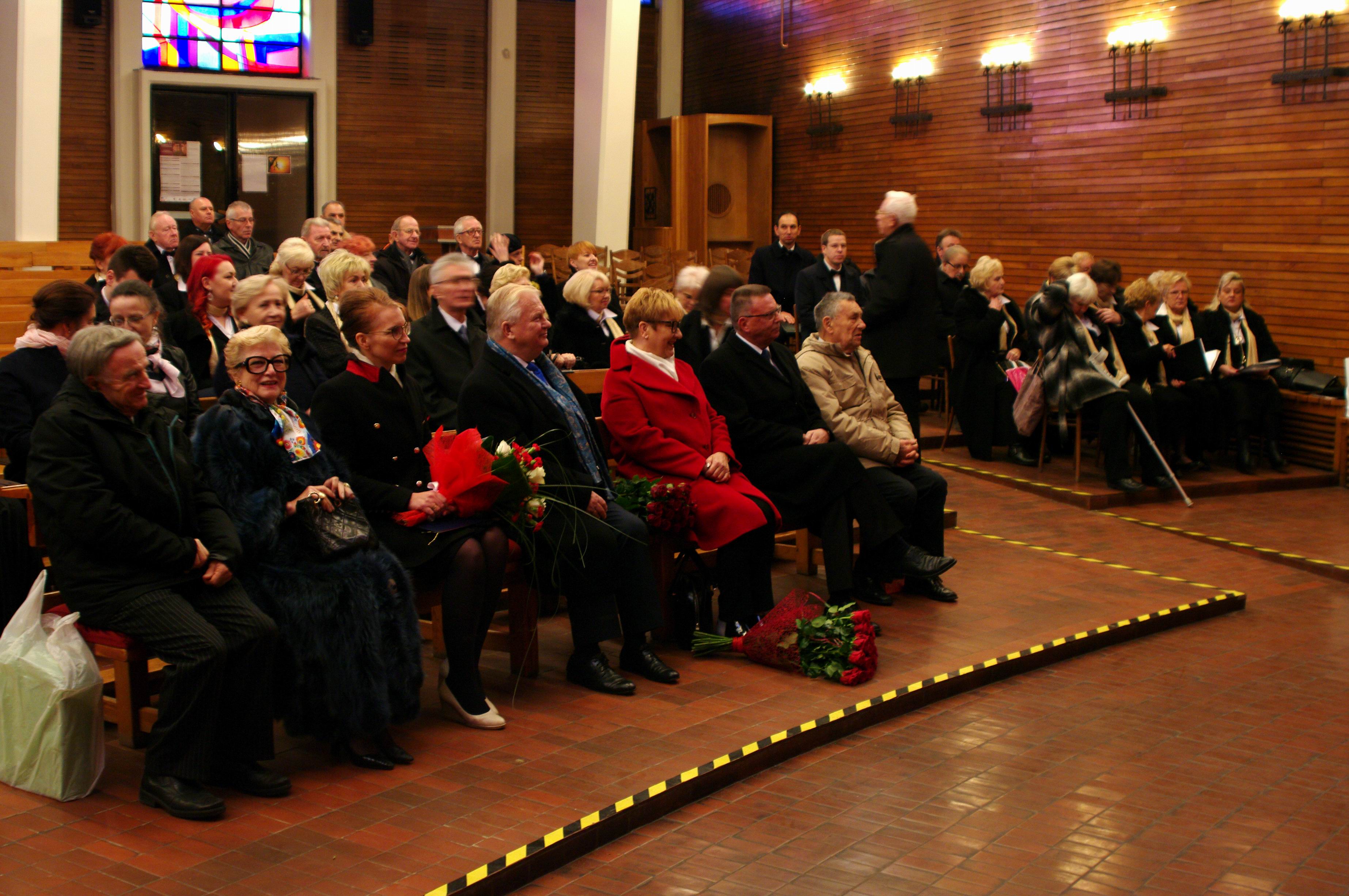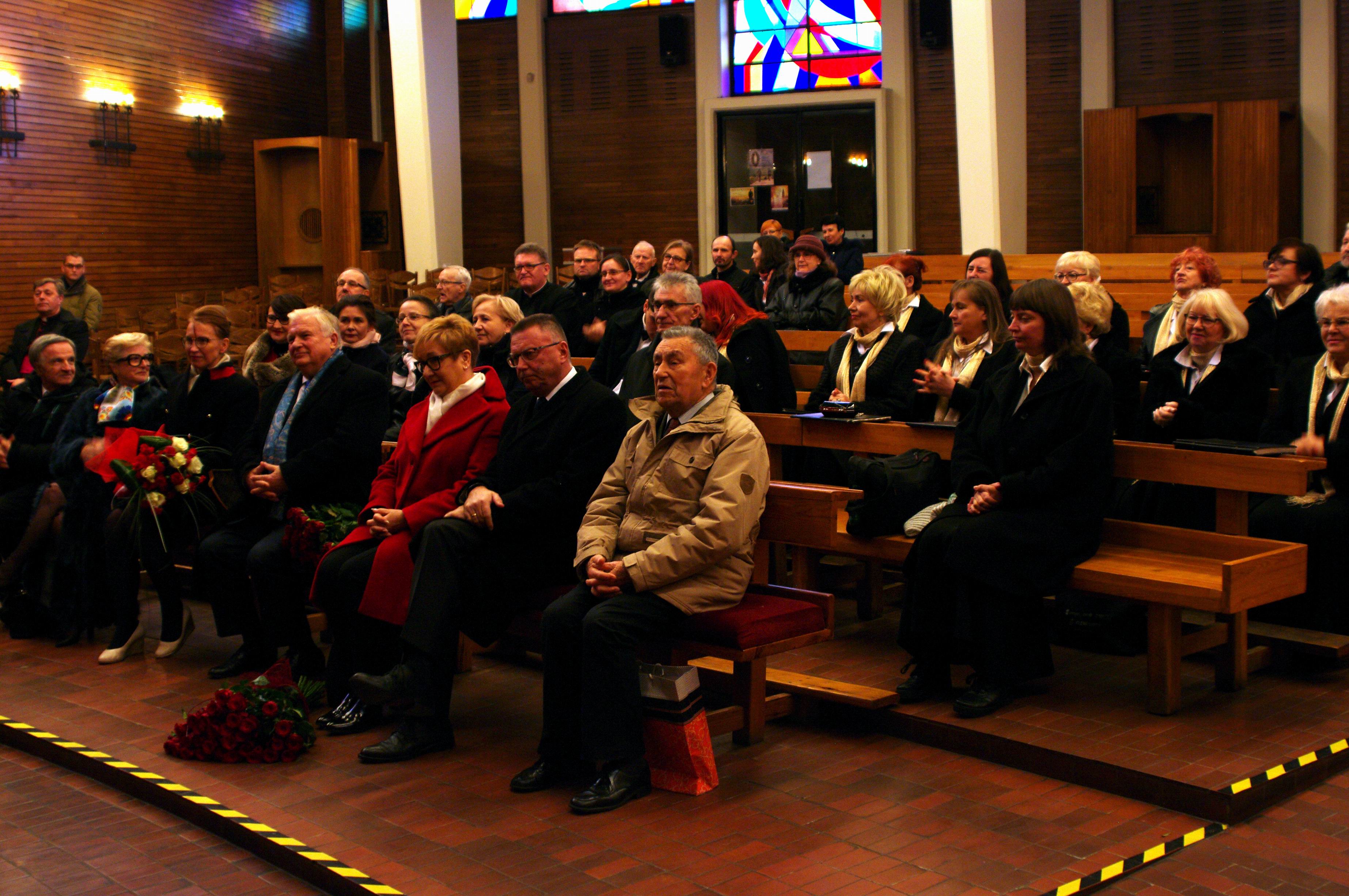 Dalsza część uroczystości odbyła się w Kościele Nawiedzenia. Słowa powitania wygłosił prezes chóru Adam Melkowski, dyrygent dr Romuald Rajs omówił działalność artystyczną chóru, a ks. prałat Józef Kubalewski złożył życzenia dyrygentowi i chórzystom.