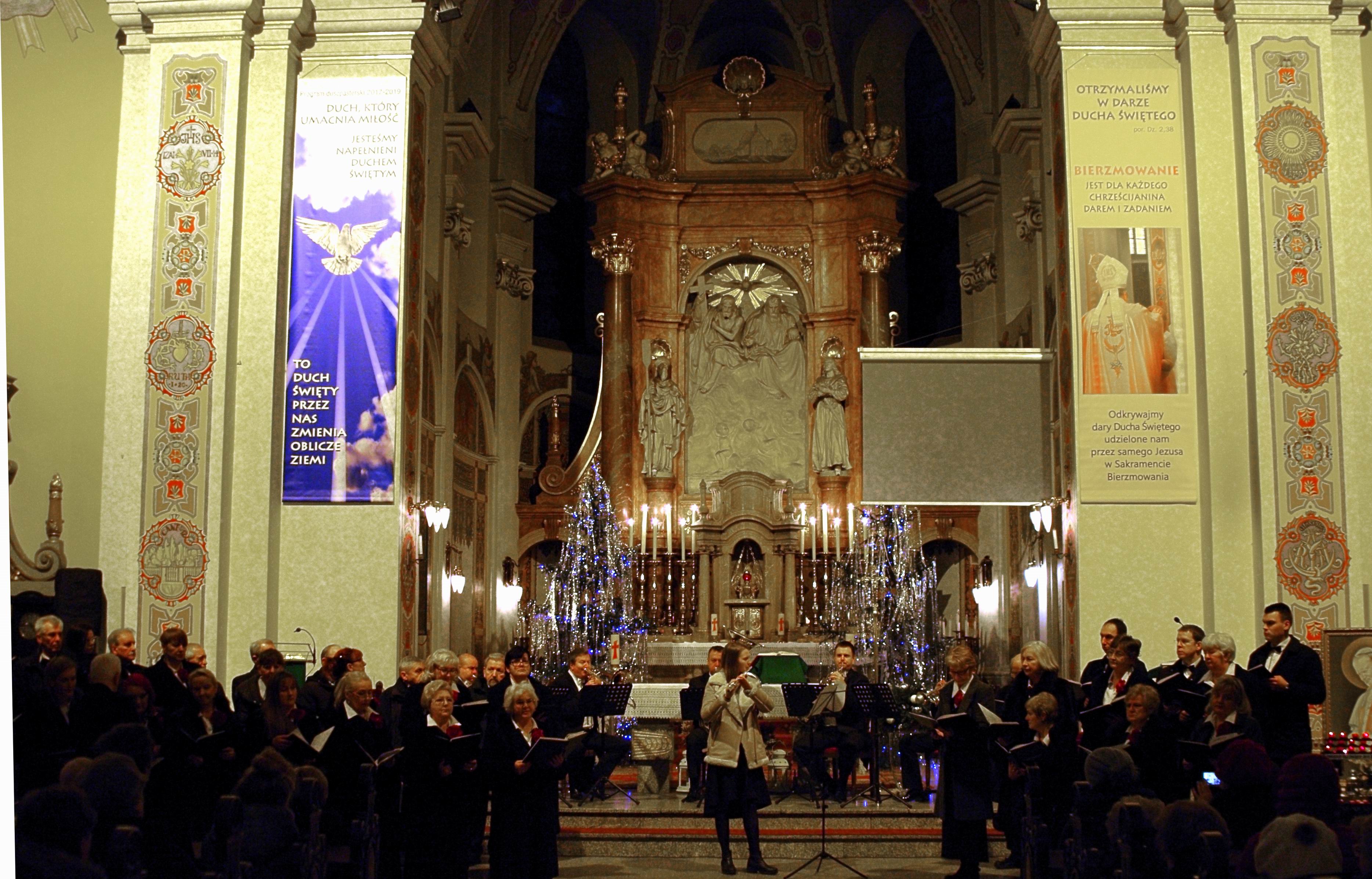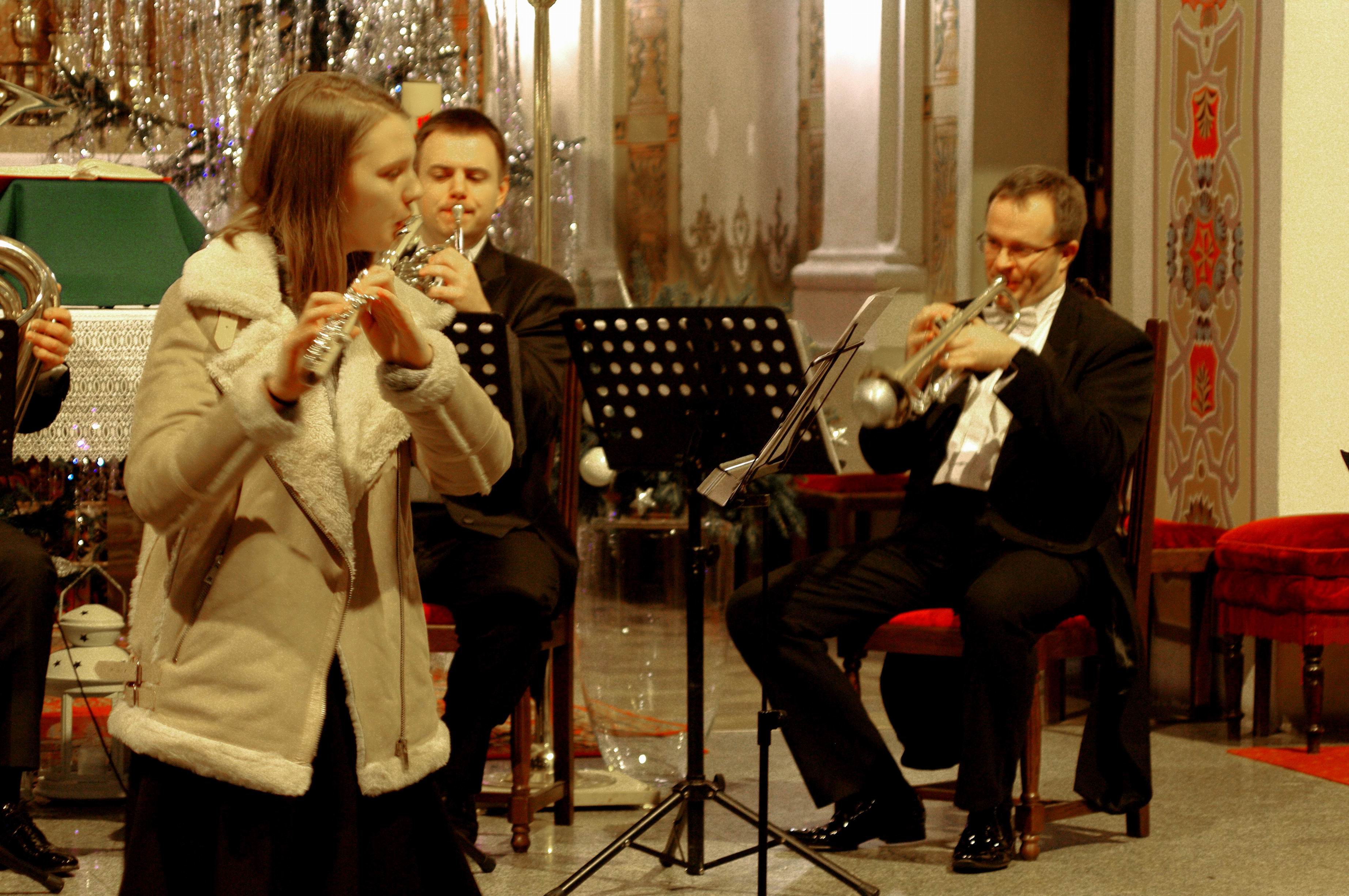 Licznie zebrani słuchacze (ok. 200 osób) mogli rozkoszować się zarówno wspaniałym brzmieniem kwintetu instrumentów dętych jak i śpiewem chóru z towarzyszeniem tego świetnego zespołu lub organów. Zachwycająco zabrzmiały dwa utwory wykonane przez młodziutką flecistkę z towarzyszeniem kwintetu. Słuchacze mieli również niebywałą okazję do wspólnego – razem z chórem i kwintetem – zaśpiewania sześciu kolęd, co czynili z wielkim zapałem.