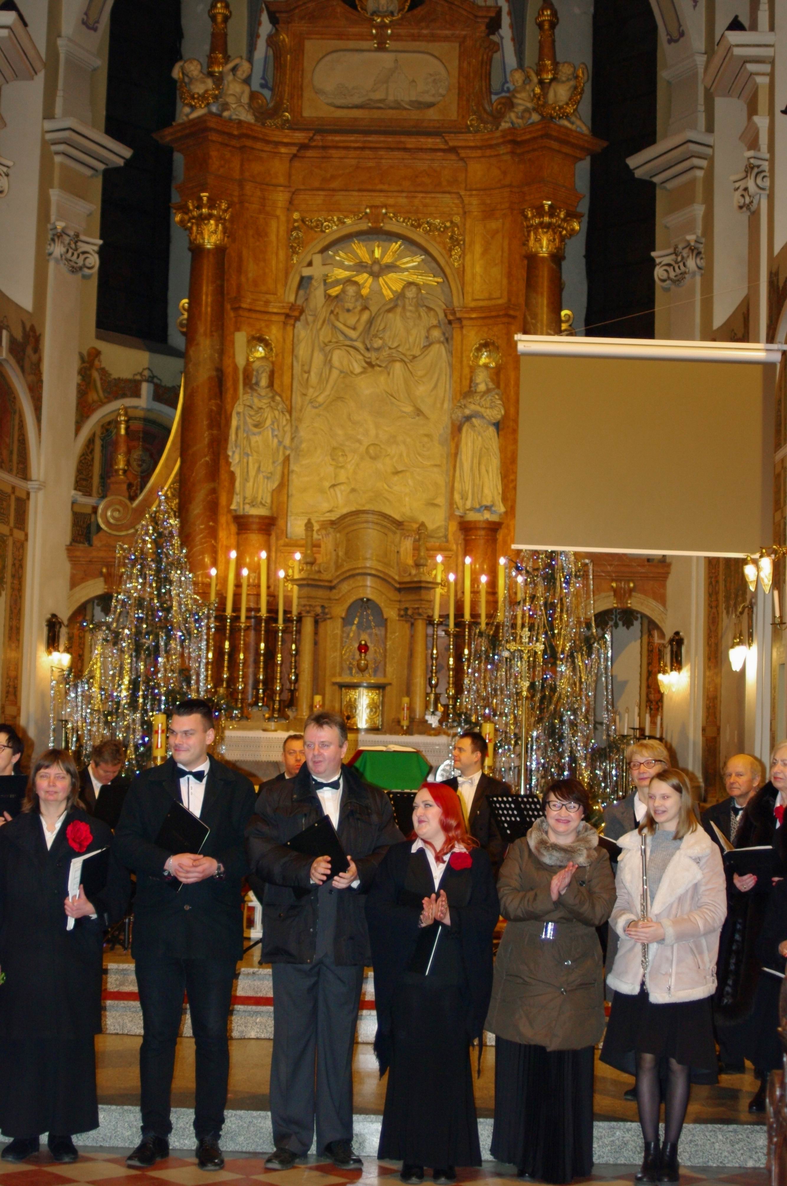 To już po raz trzeci nasz chór „Exsultate Deo” miał okazję wystąpić obok znakomitego, o pięknym brzmieniu, bydgoskiego kwintetu instrumentów dętych „Triumphal Brass Quintet”. Tworzą go najlepsi muzycy - soliści Opery Nova, Filharmonii i Orkiestry Wojskowej w Bydgoszczy. W koncercie wystąpiła również solistka Beata Bobińska – sopran, soliści chóru: Natalia Kolanowska – sopran, Adam Krasiński – tenor i Artur Ptaszyński – bas oraz flecistka - Małgorzata Bobińska. Chórowi towarzyszyła na organach Beata Gaj. Dyrygował Romuald Rajs. Koncert pięknie poprowadziła Anna Merder.