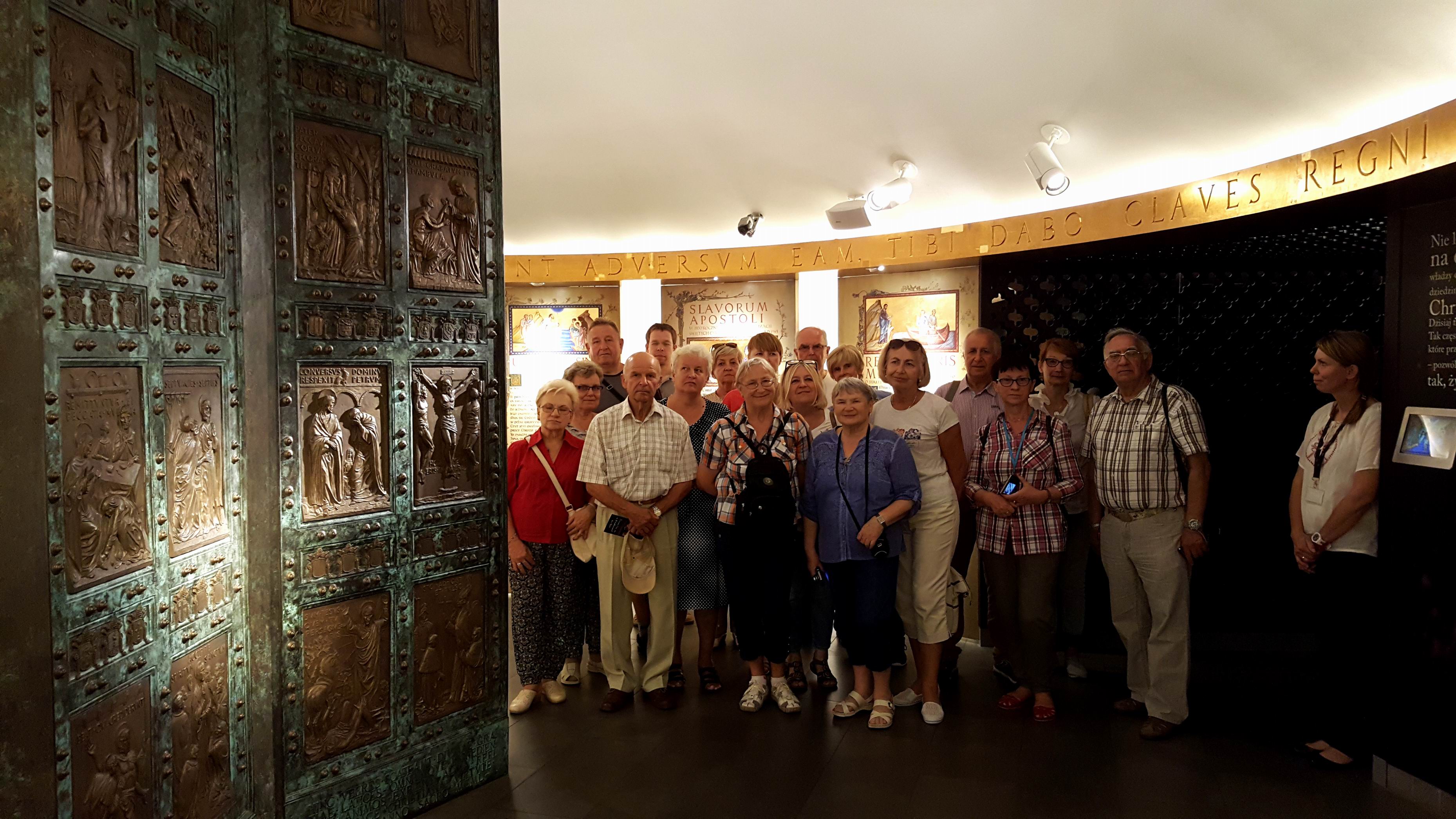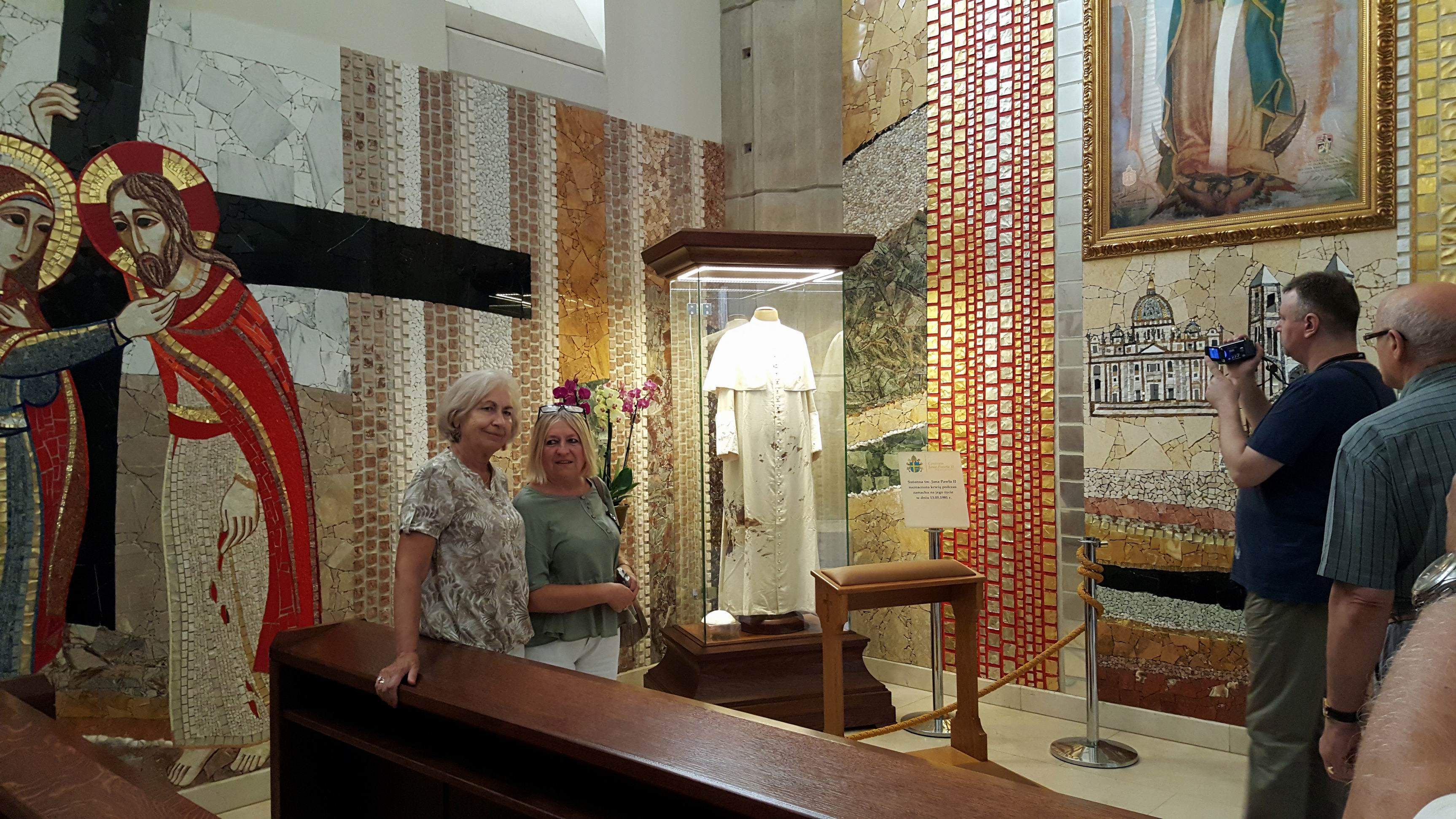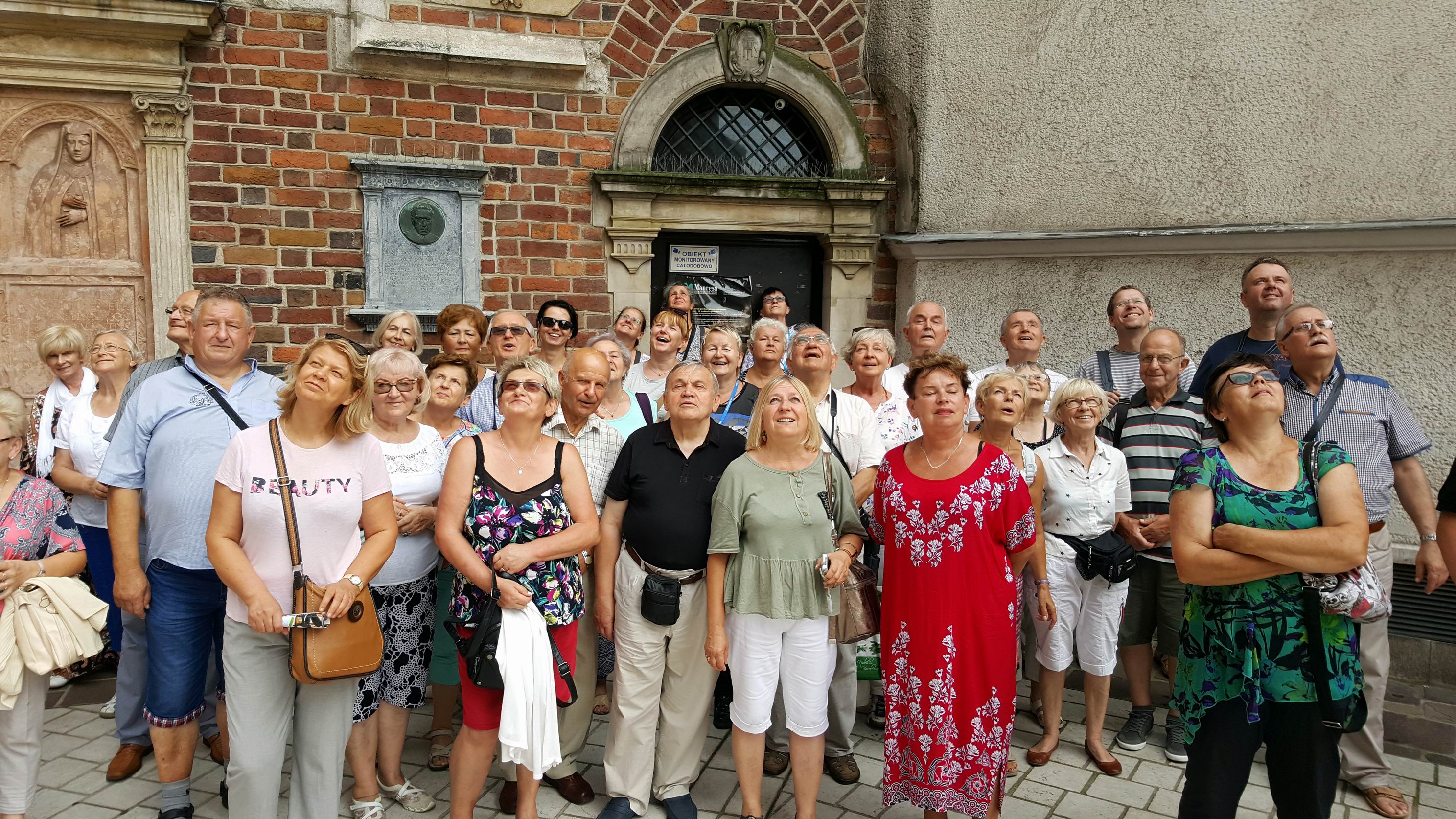 W drugim dniu - zgodnie z planem - nawiedziliśmy dwa Sanktuaria – Św. Jana Pawła II w Krakowie - Jugowicach (wnętrze tamtejszego kościoła ozdobione jest pięknymi mozaikami wg projektu O. Marko Ivana Rupnika SJ, autora mozaik w Sanktuarium Św. O. Pio w San Giovanni Rotondo) oraz Miłosierdzia Bożego w Łagiewnikach, a także zwiedziliśmy Bazylikę Archikatedralną pw. Św. Stanisława i Św. Wacława na Wawelu. W południe wysłuchaliśmy „na żywo” hejnału z wieży Kościoła Mariackiego, pozdrawiając i nagradzając brawami trębacza. Był także czas wolny na indywidualne zwiedzanie Krakowa i zakup pamiątek w krakowskich Sukiennicach.