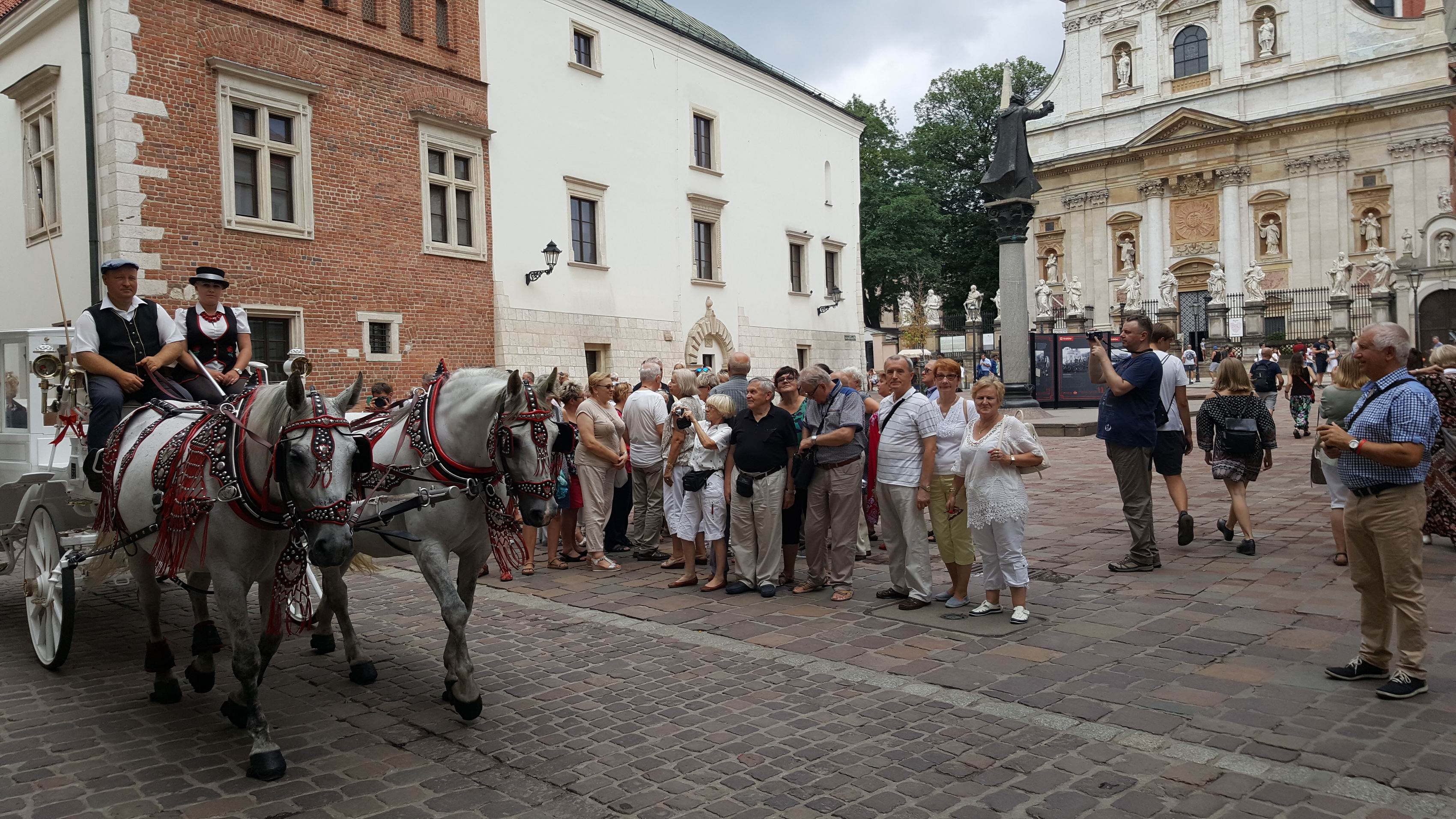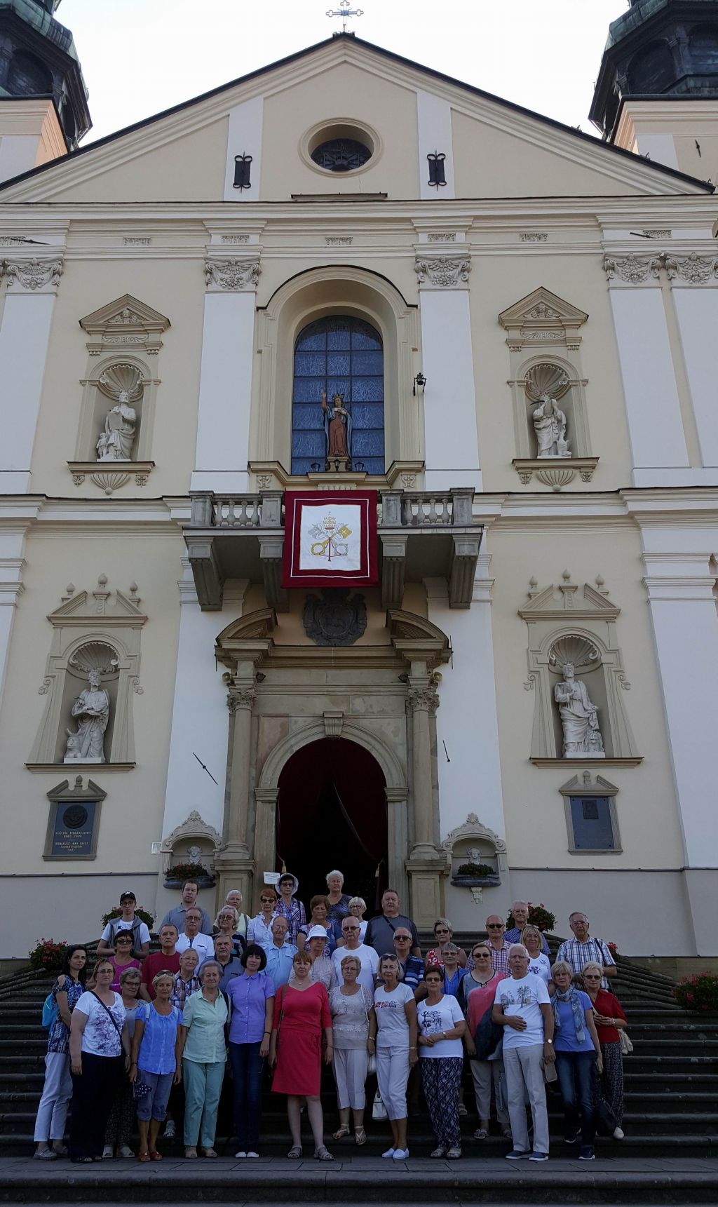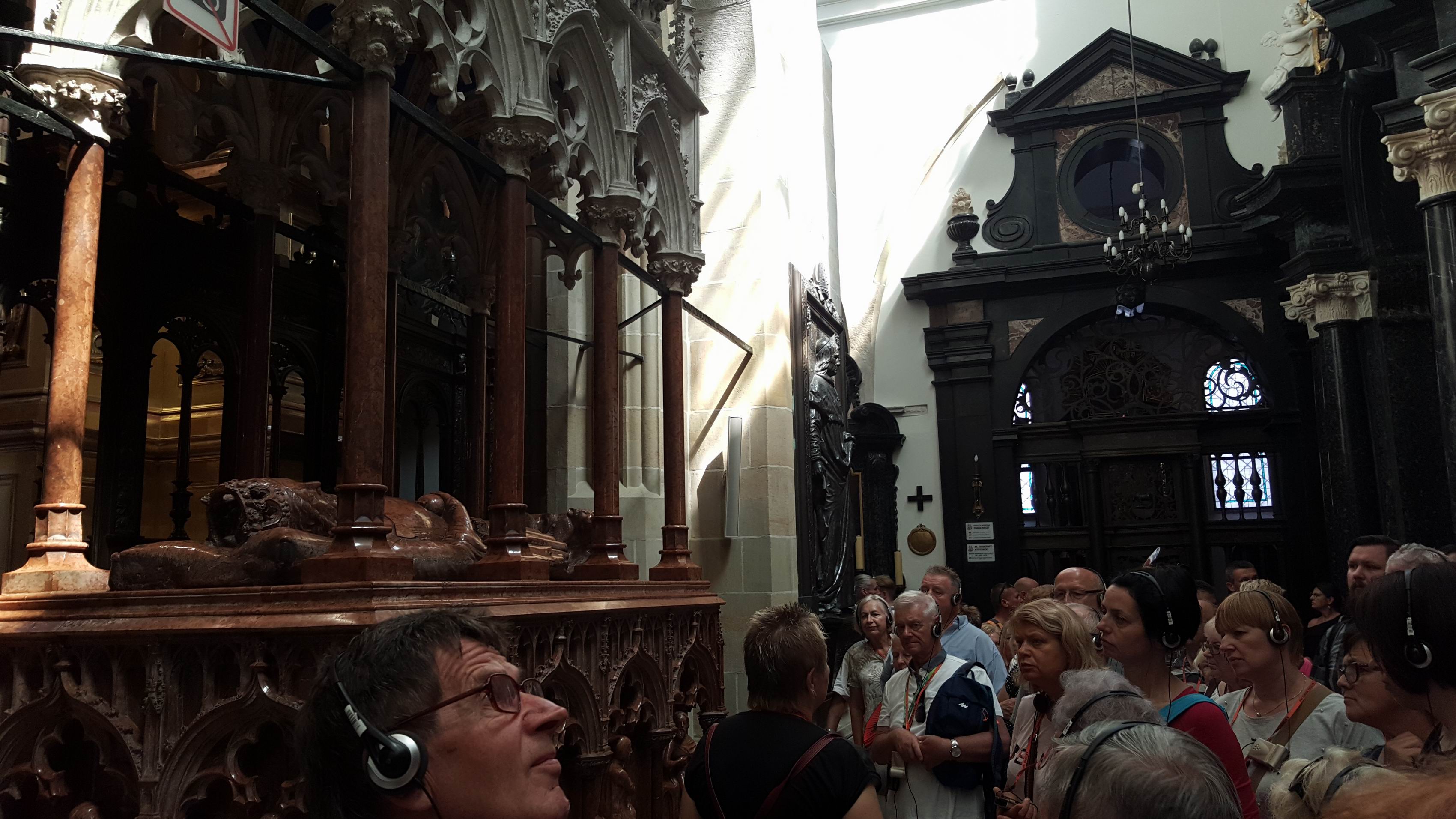 W drugim dniu - zgodnie z planem - nawiedziliśmy dwa Sanktuaria – Św. Jana Pawła II w Krakowie - Jugowicach (wnętrze tamtejszego kościoła ozdobione jest pięknymi mozaikami wg projektu O. Marko Ivana Rupnika SJ, autora mozaik w Sanktuarium Św. O. Pio w San Giovanni Rotondo) oraz Miłosierdzia Bożego w Łagiewnikach, a także zwiedziliśmy Bazylikę Archikatedralną pw. Św. Stanisława i Św. Wacława na Wawelu. W południe wysłuchaliśmy „na żywo” hejnału z wieży Kościoła Mariackiego, pozdrawiając i nagradzając brawami trębacza. Był także czas wolny na indywidualne zwiedzanie Krakowa i zakup pamiątek w krakowskich Sukiennicach.