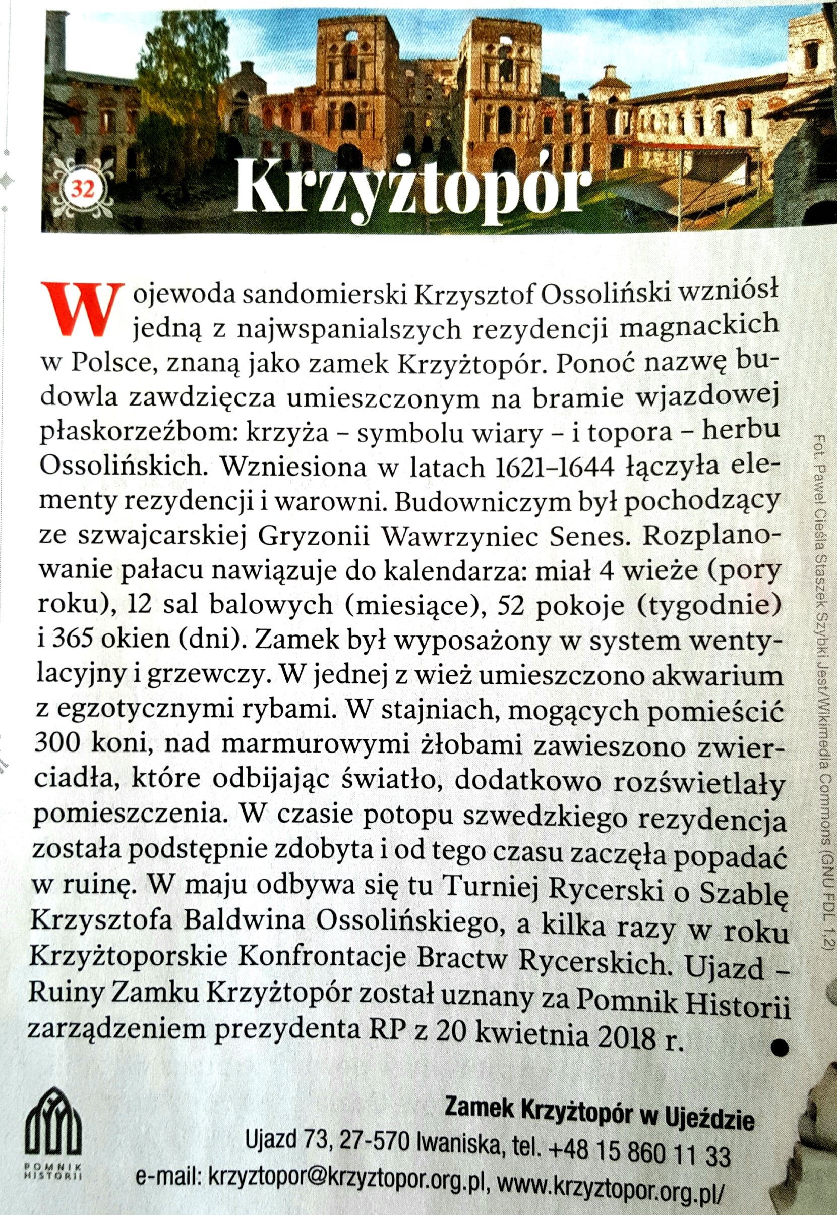 21.08. W Sandomierzu zwiedziliśmy z przewodnikiem Ratusz; Bazylikę Katedralną pw. Narodzenia Najświętszej Maryi Panny; Zamek Królewski; przejście podziemną trasą pod rynkiem, Muzeum Katedralne w Domu Długosza oraz kościoły pw. Św. Michała i Św. Jakuba. Następnie udaliśmy się do miejscowości Ujazd, gdzie z świetną przewodniczką podziwialiśmy ruiny wielkiego Zamku Krzyżtopór.