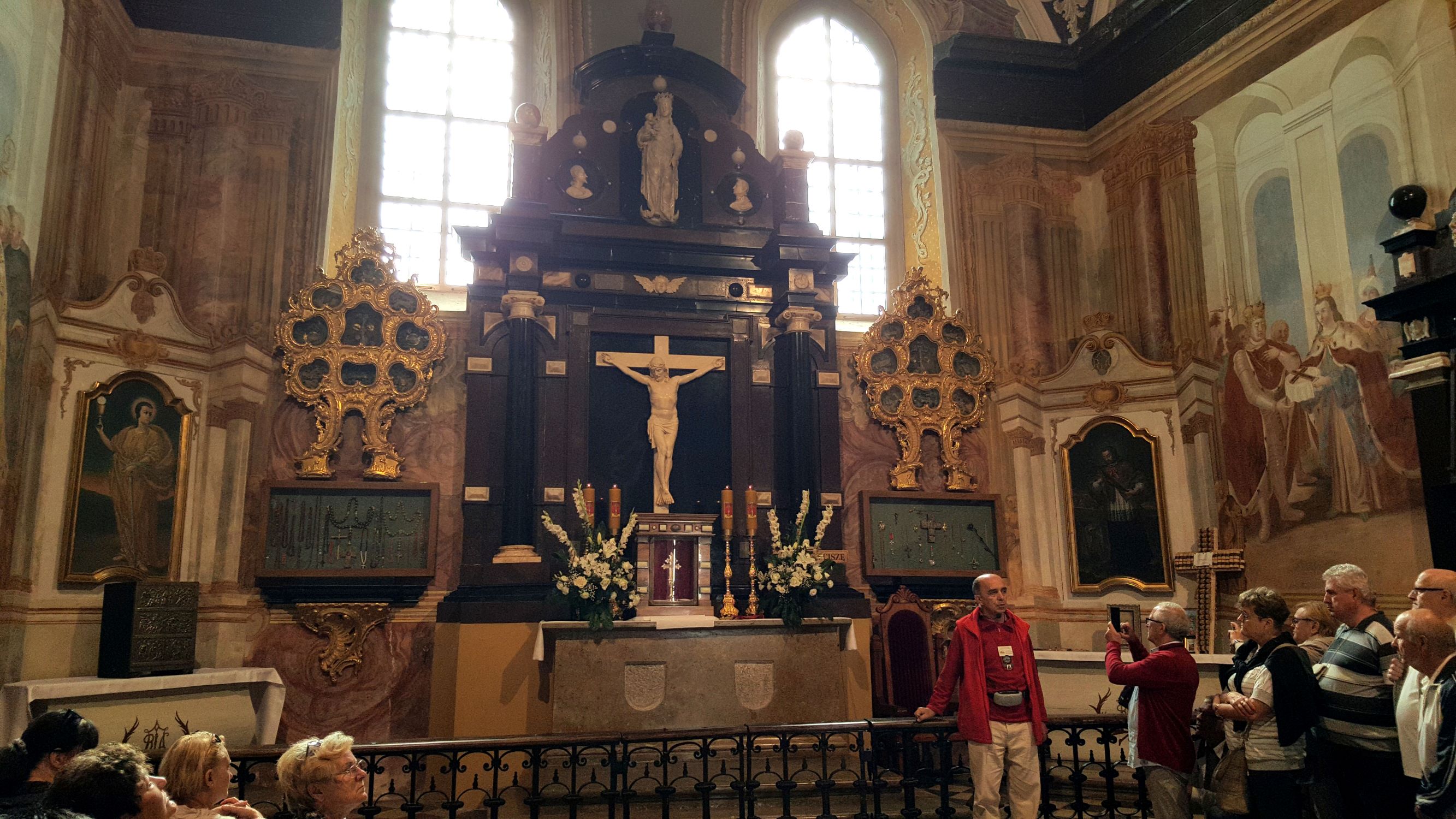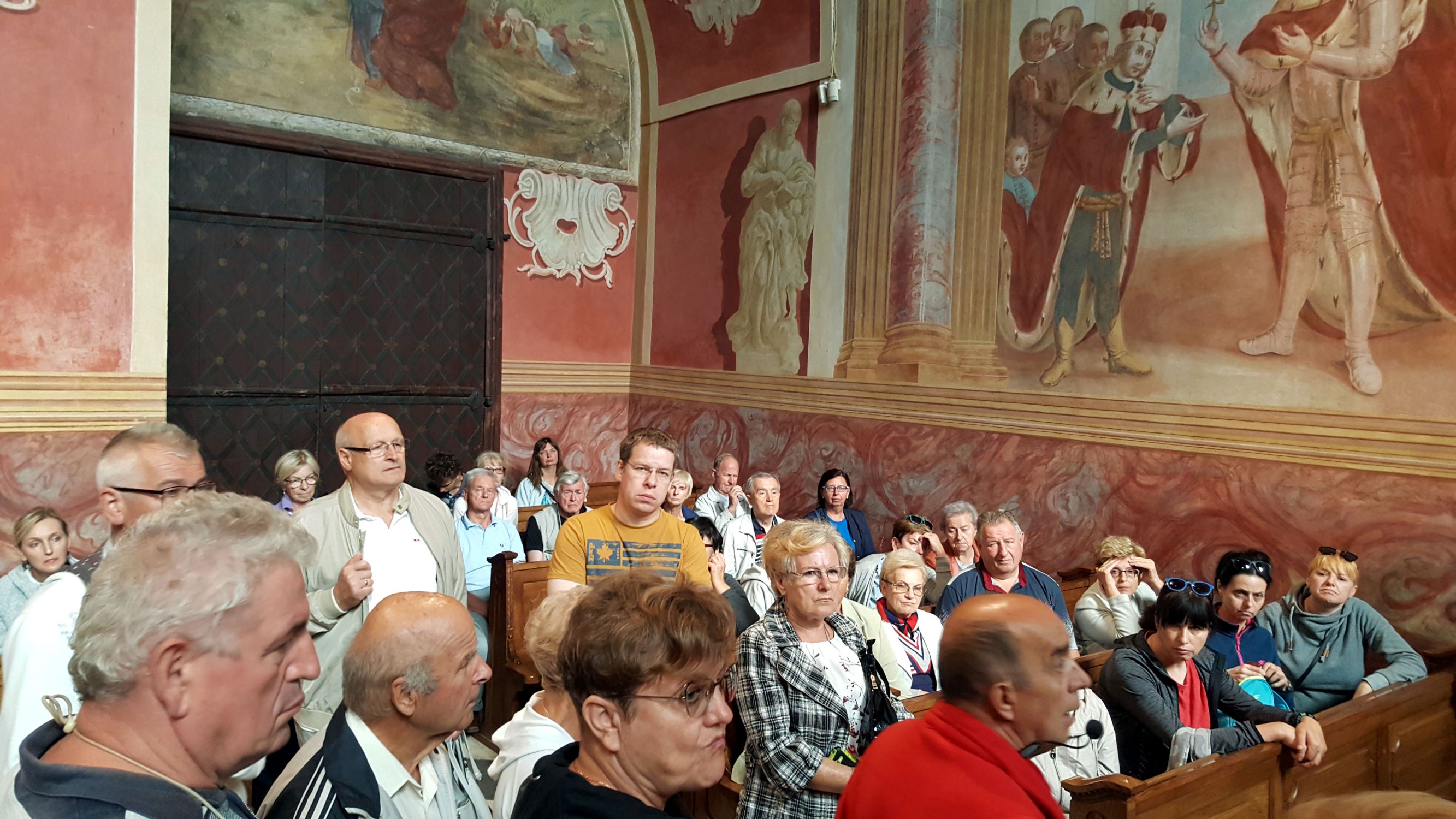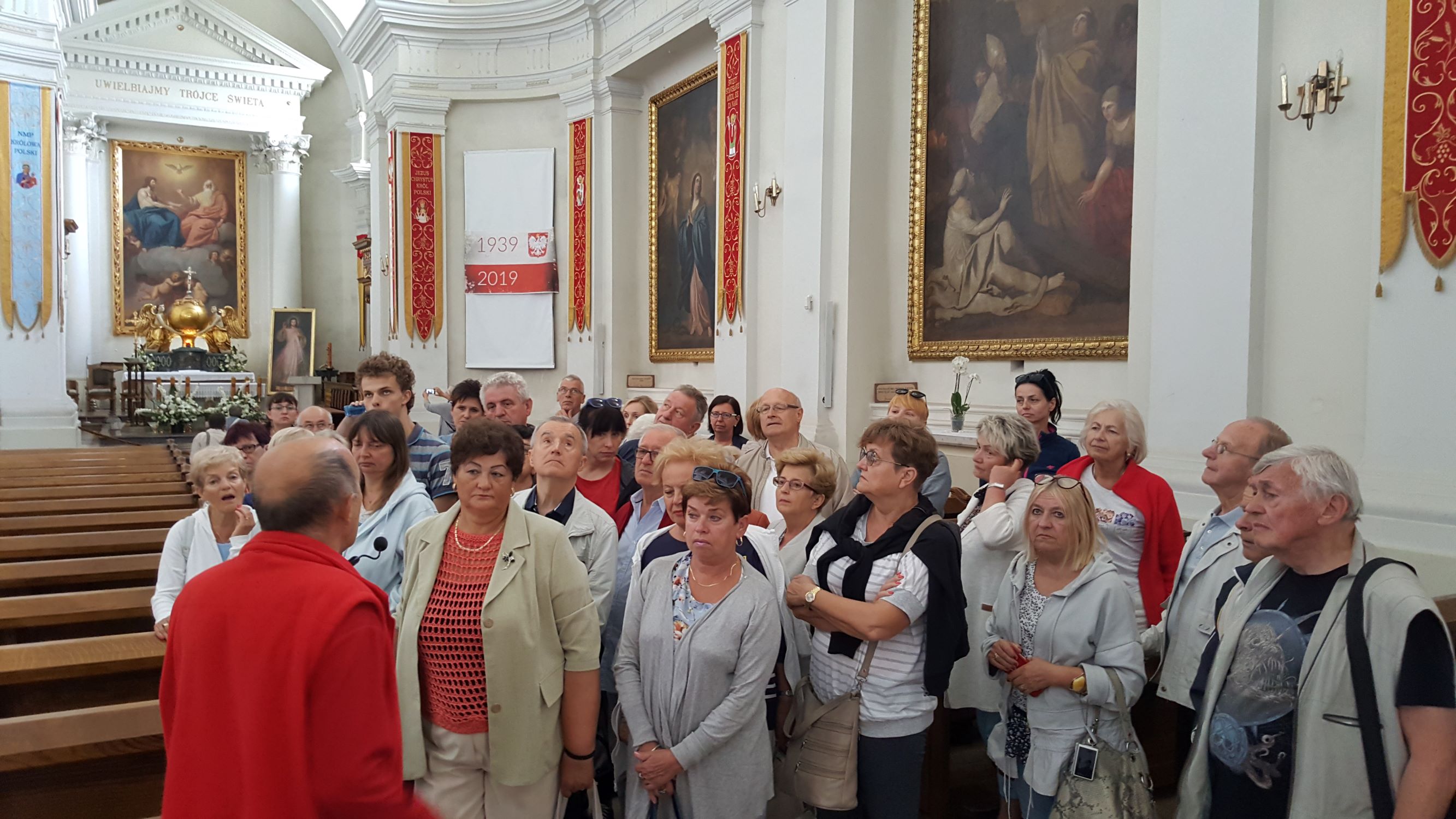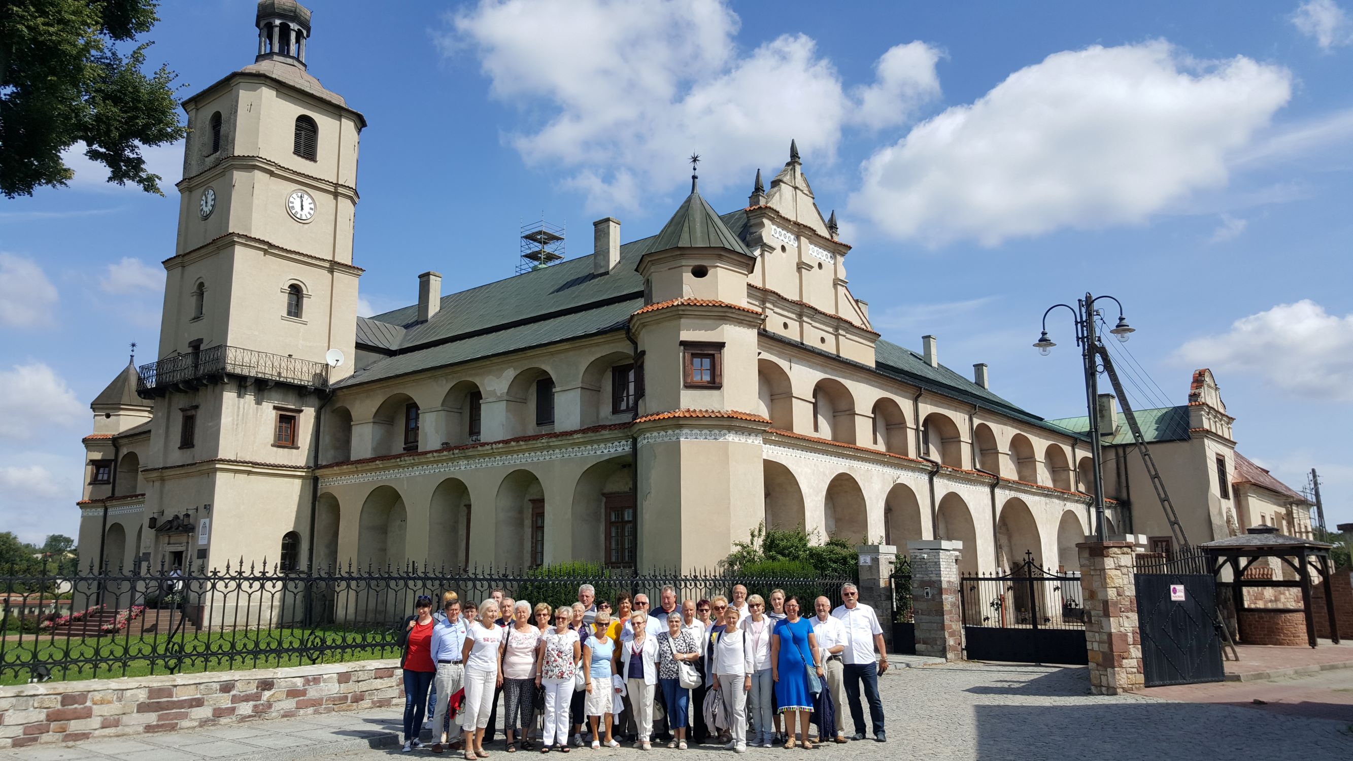 18.08. - Rano uczestniczyliśmy w Mszy św. w wąwelnickim kościele pw. Św. Wojciecha – Sanktuarium Matki Boskiej Kębelskiej, gdzie podczas liturgii chórzyści popisali się wykonaniem kilku pieśni. Nasze śpiewanie spotkało się z uznaniem Proboszcza tej Parafii i Kustosza Sanktuarium ks. Jerzego Ważnego. Następnie udaliśmy się do Kozłówki, gdzie podziwiano pełen zabytkowych dzieł sztuki pałac Zamojskich wraz z przyległym parkiem. Wielu uczestników zainteresowało istniejące tam Muzeum Socrealizmu. Kolejnym etapem naszej wędrówki był Lubartów, gdzie zwiedziliśmy kościół i klasztor Kapucynów, kościół pw. Św. Anny oraz pałac Firlejów-Sanguszków.