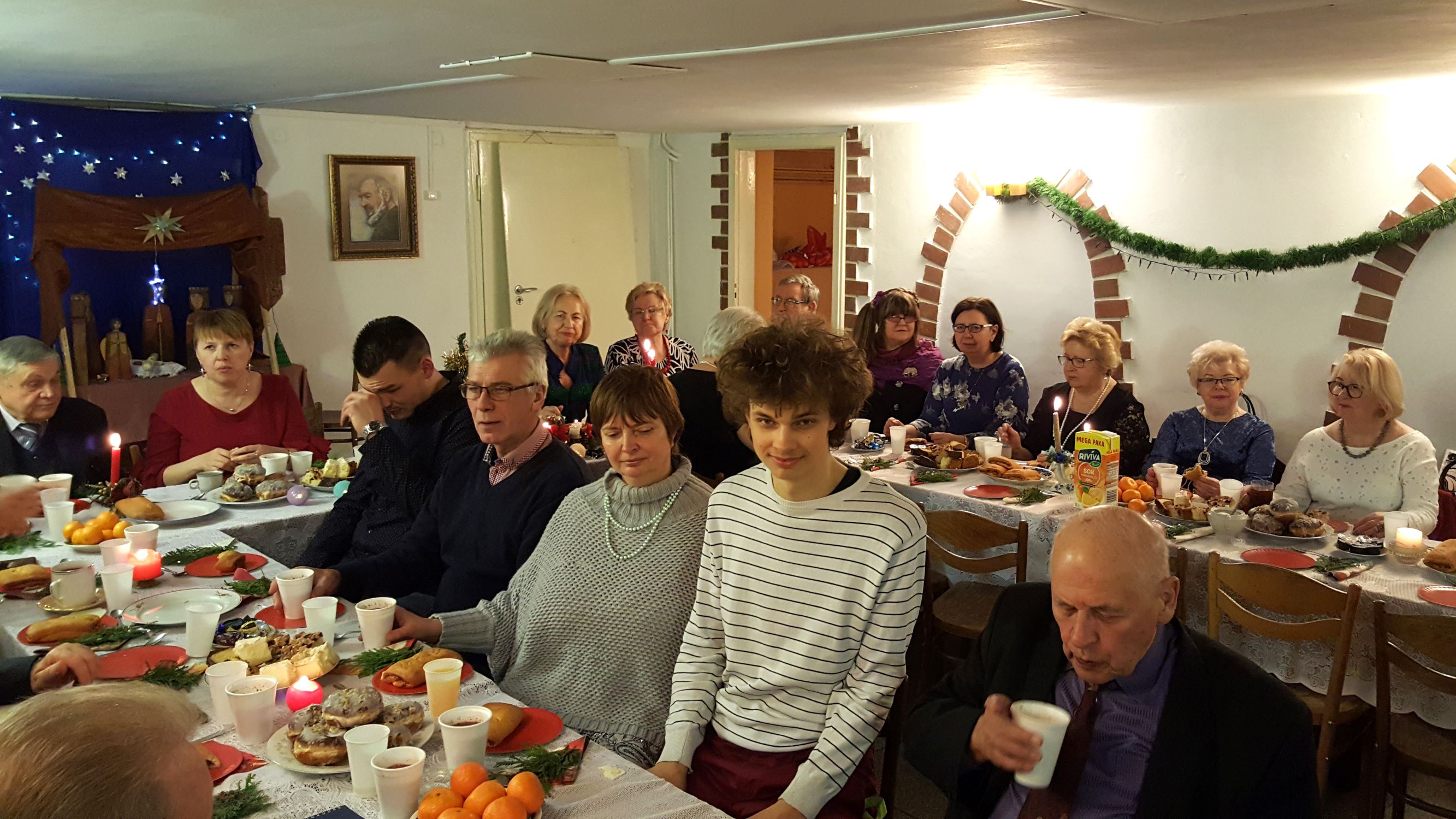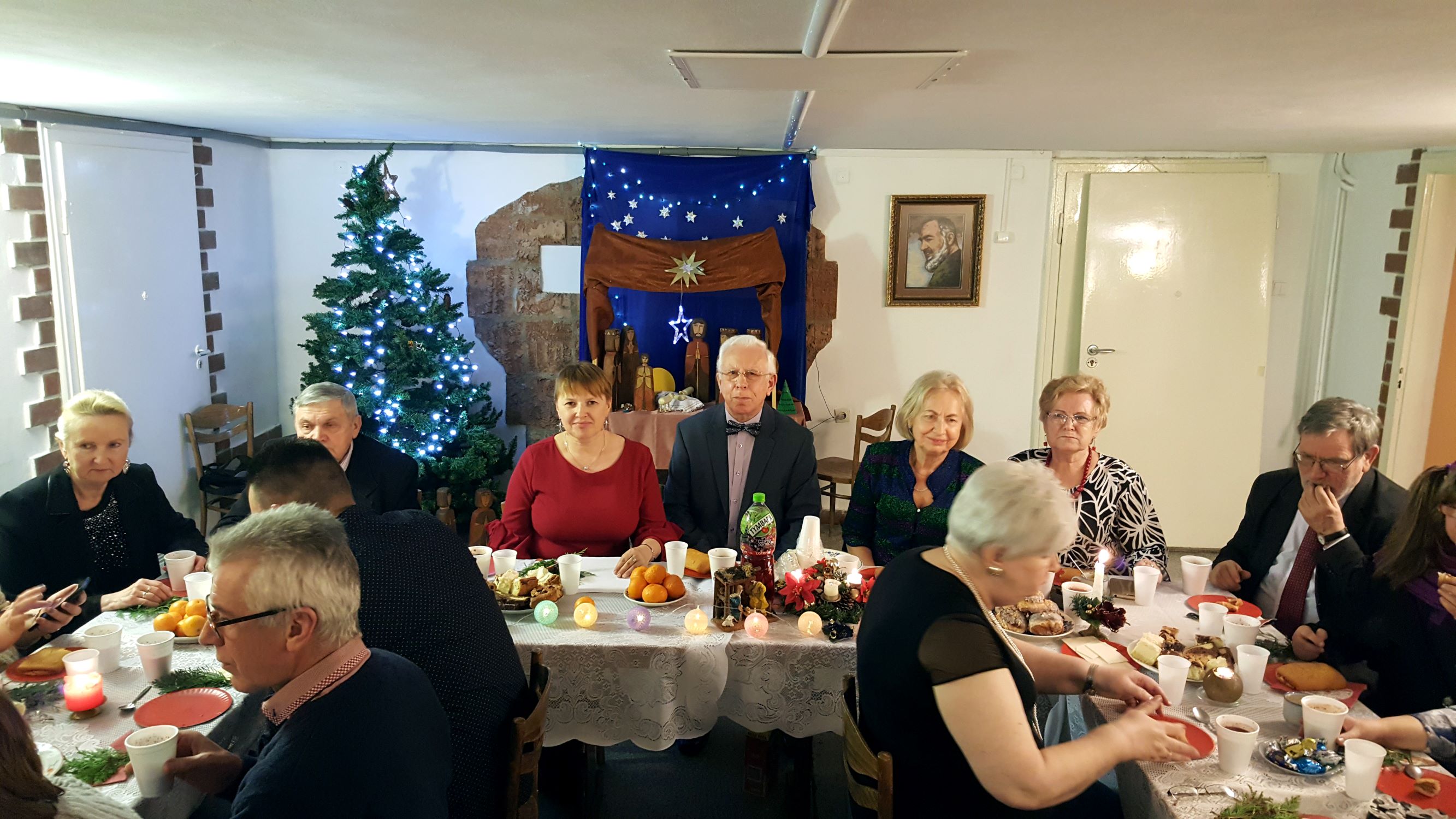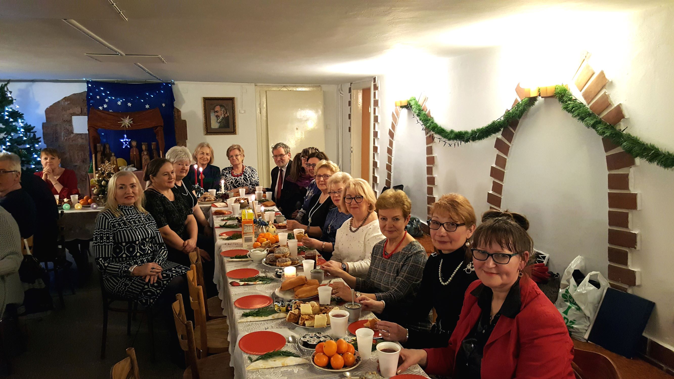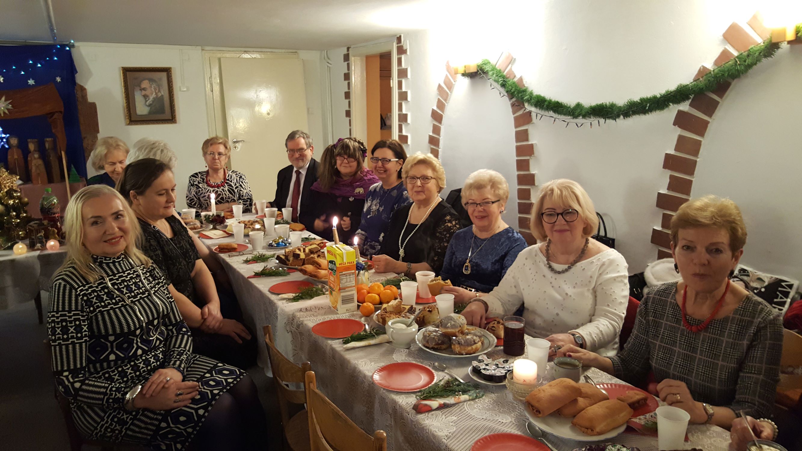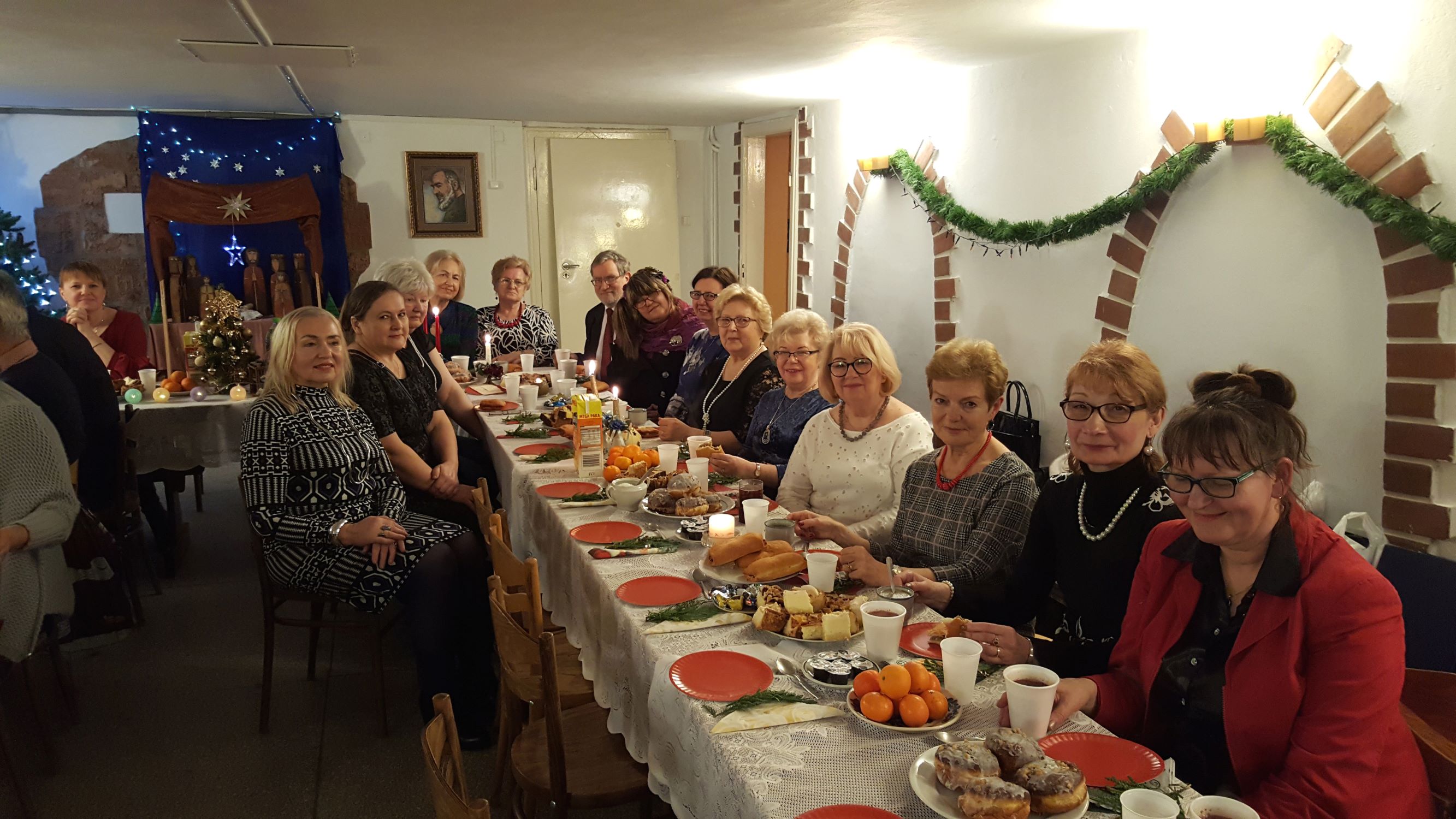 Staraniem naszych nieocenionych Koleżanek, które ustroiły pięknie stoły i przygotowały smakowite ciasta, a także przyrządziły barszcz z pasztecikami i zupę grzybową, przeżyliśmy wspaniałą biesiadę kulinarną oraz duchową. Okazało się, że nasze Panie oprócz osobistego wdzięku i talentu wokalnego posiadają także niespotykany talent kulinarny!