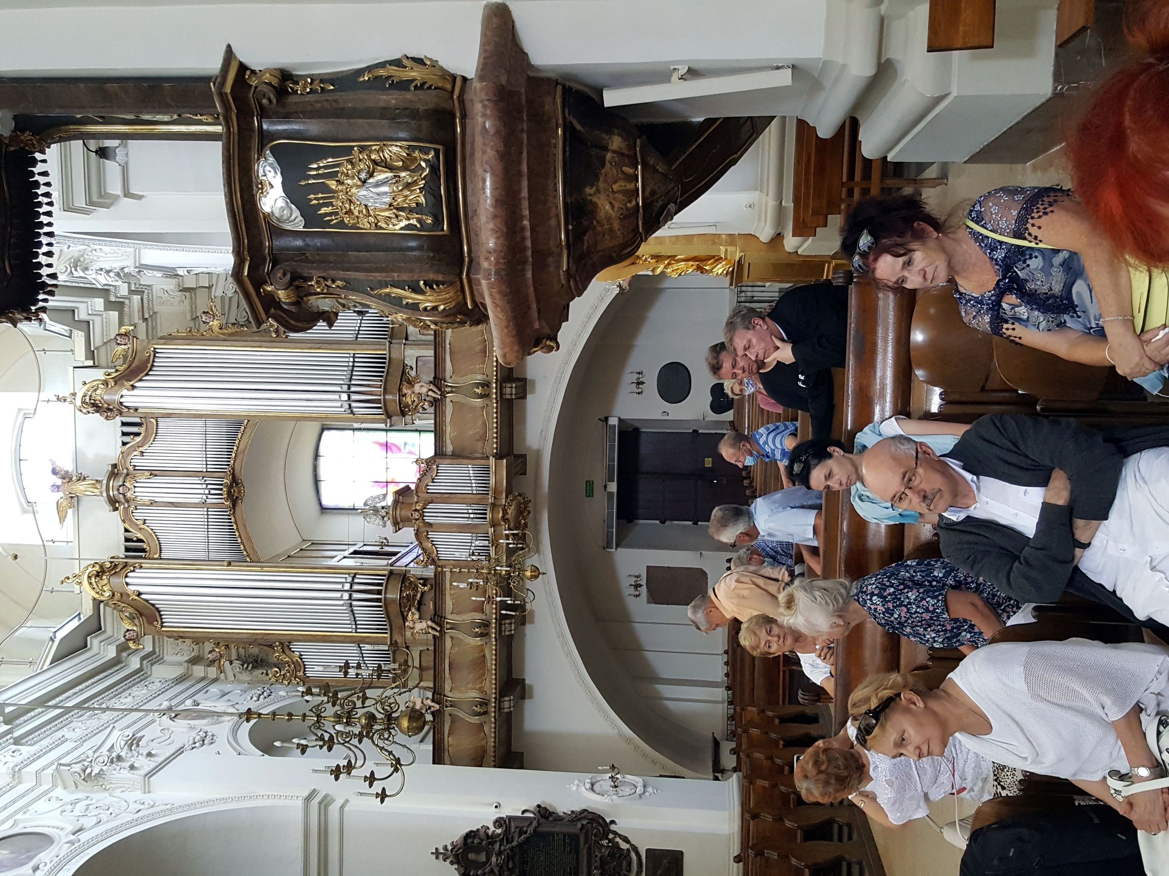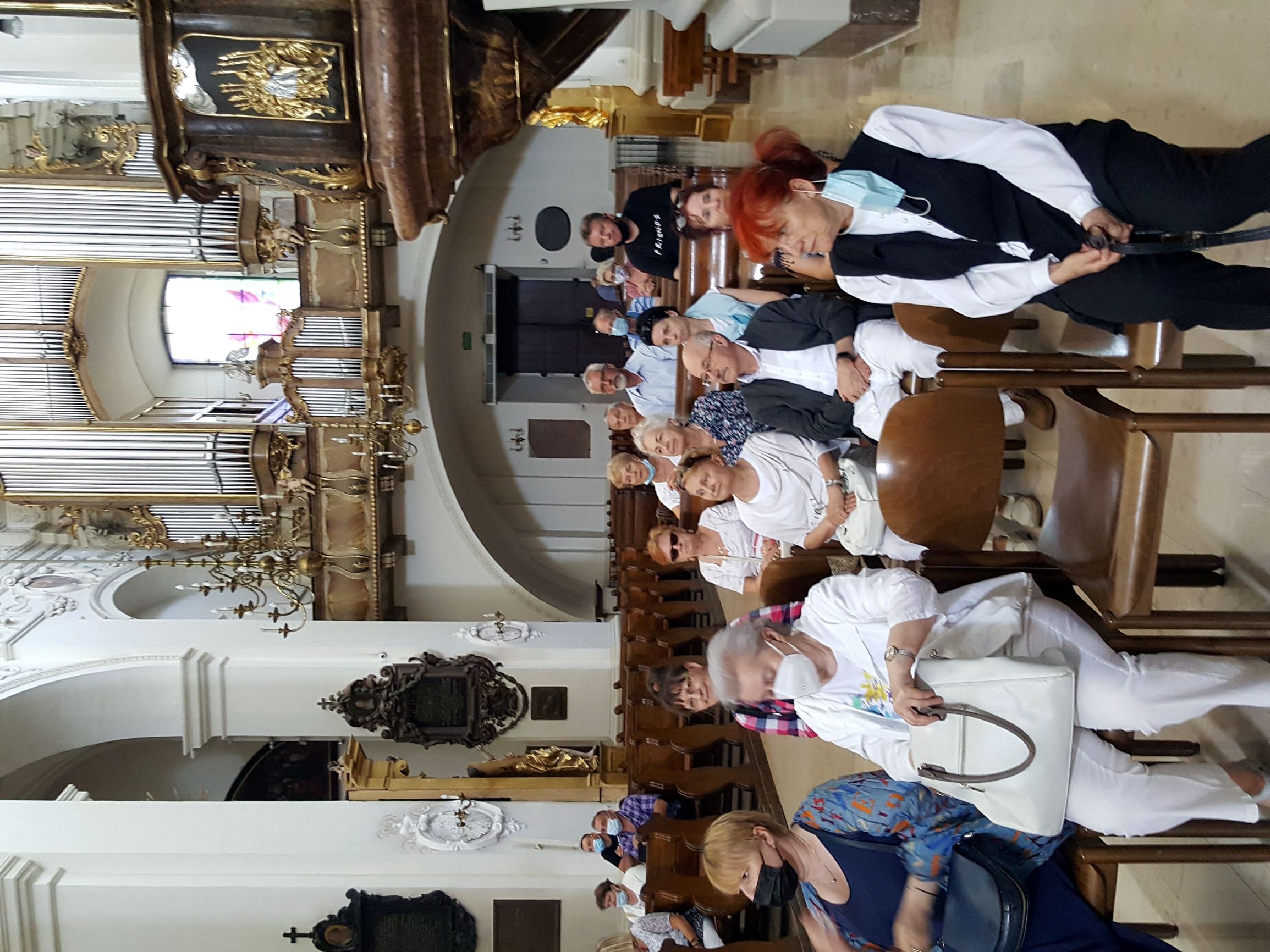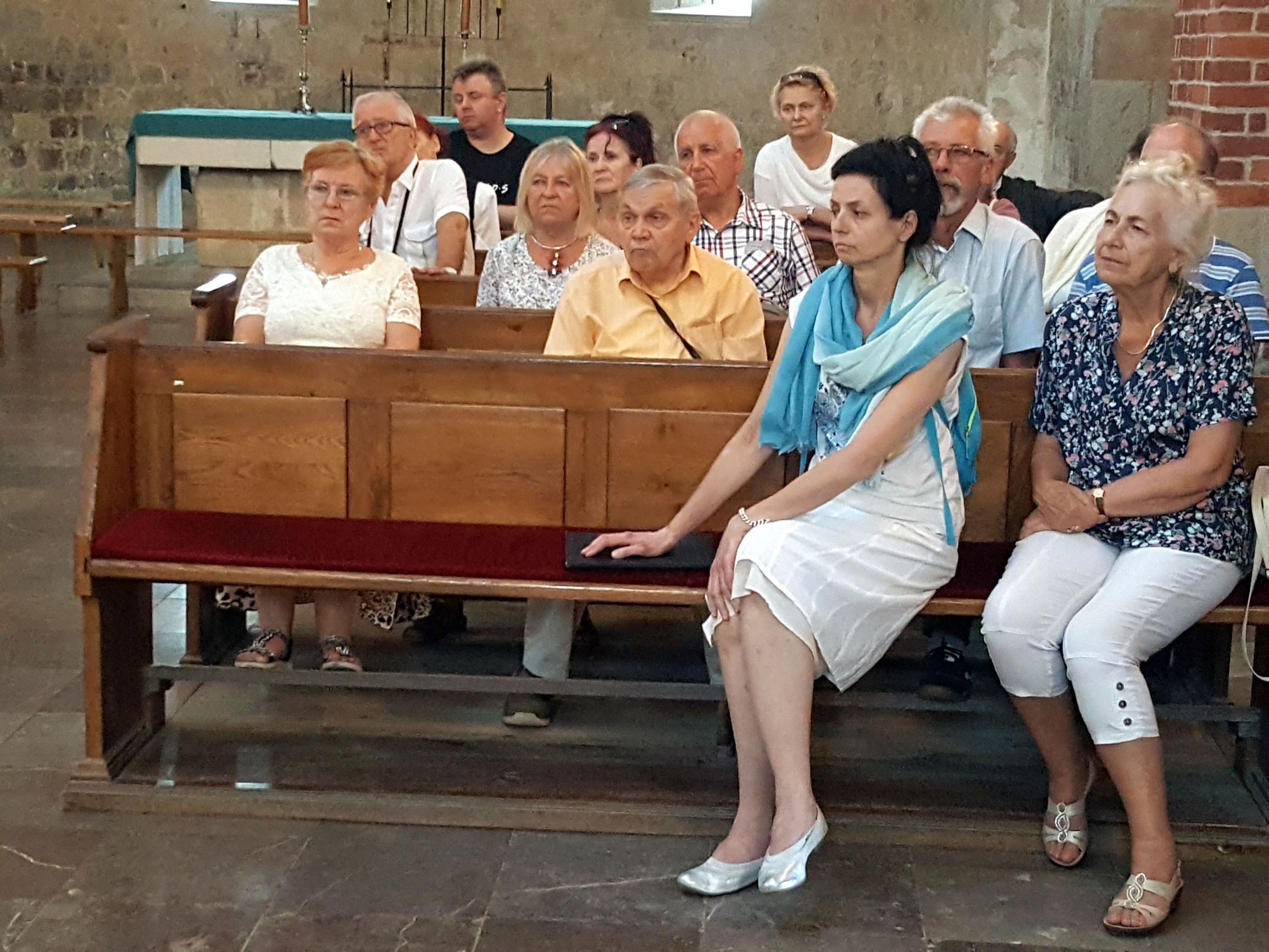 Po zwiedzeniu Archikolegiaty i Muzeum Dziedzictwa Kościelnego wszyscy uczestniczyli w nabożeństwie czerwcowym i mszy świętej, którą sprawowali dwaj proboszczowie – ks. Józef Kubalewski i ks. Paweł Nowak, a chórzyści śpiewali części mszy gregoriańskiej Missa de angelis.