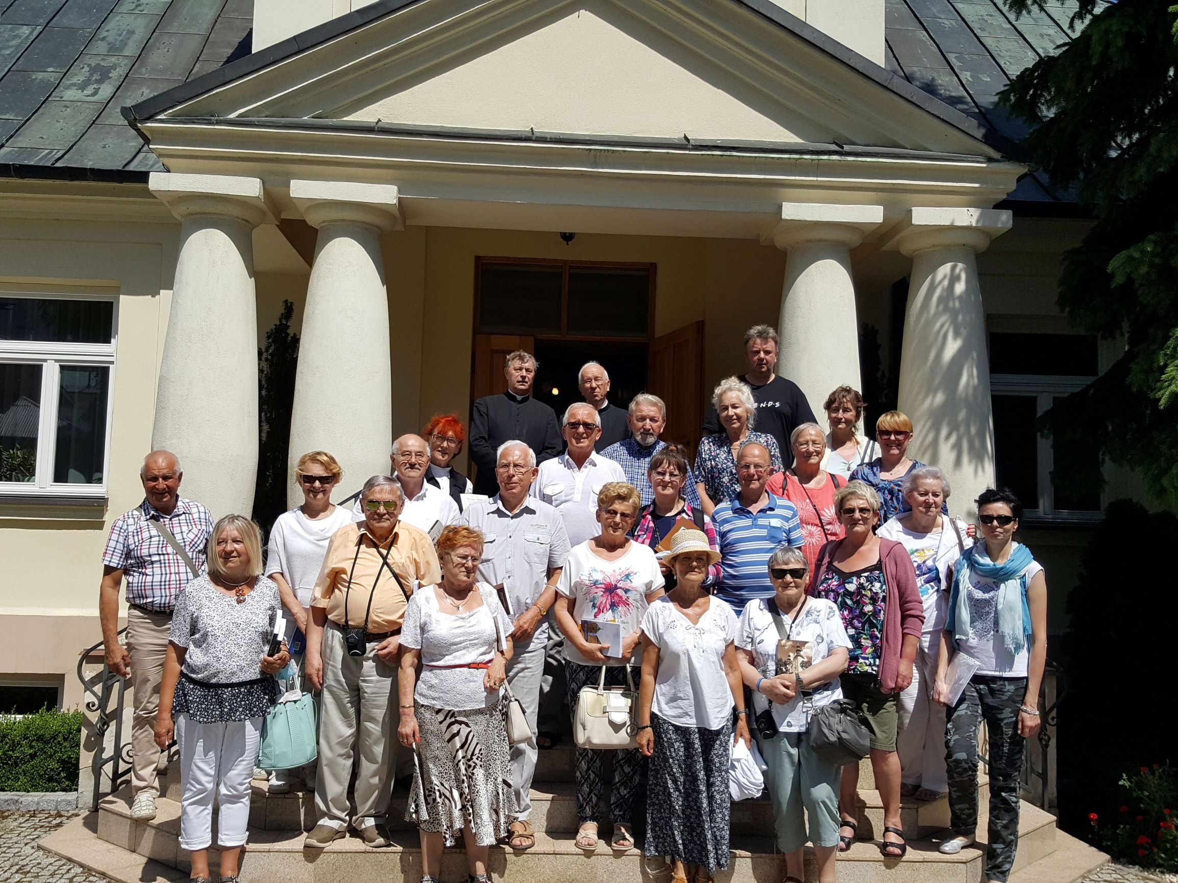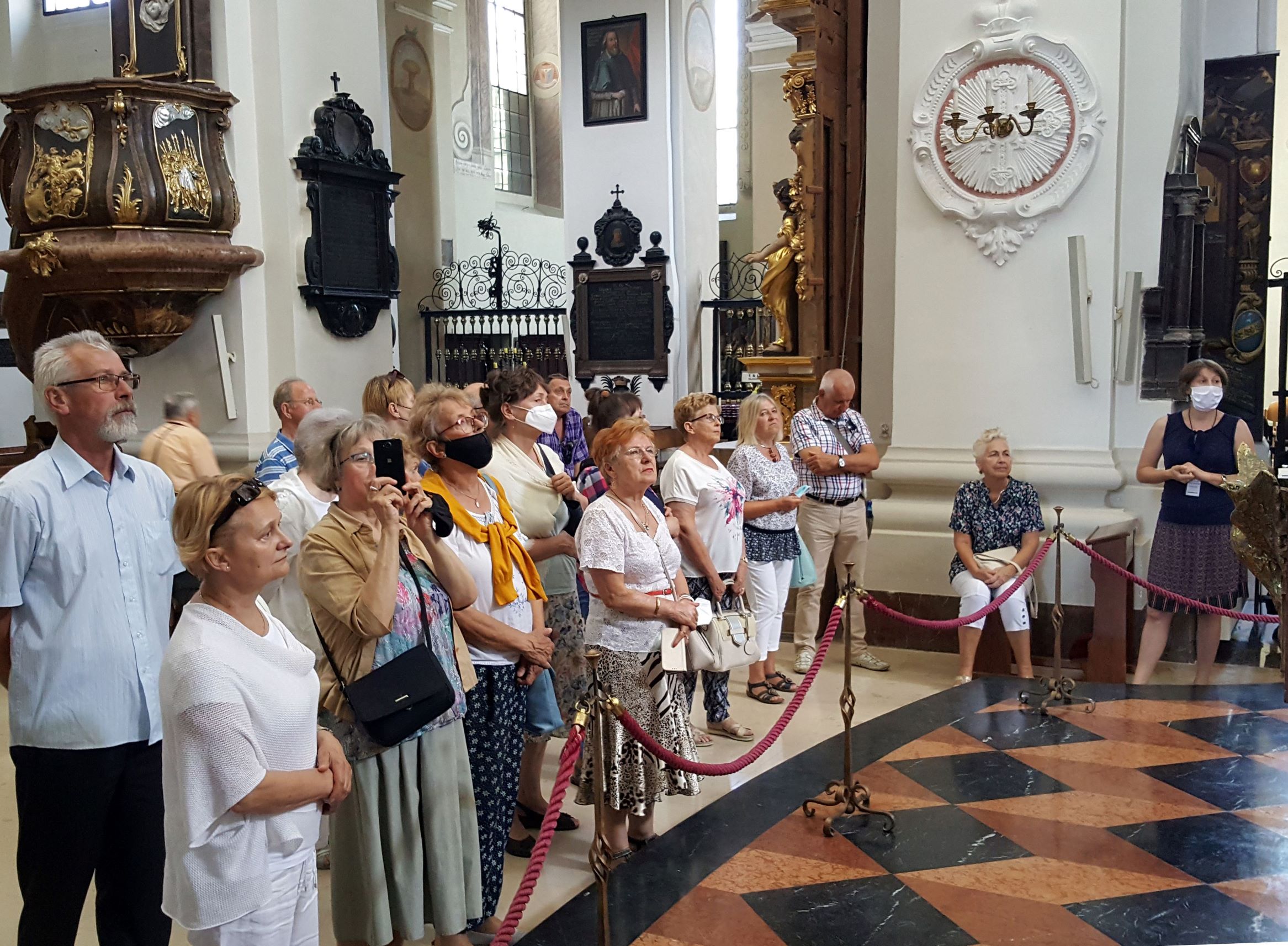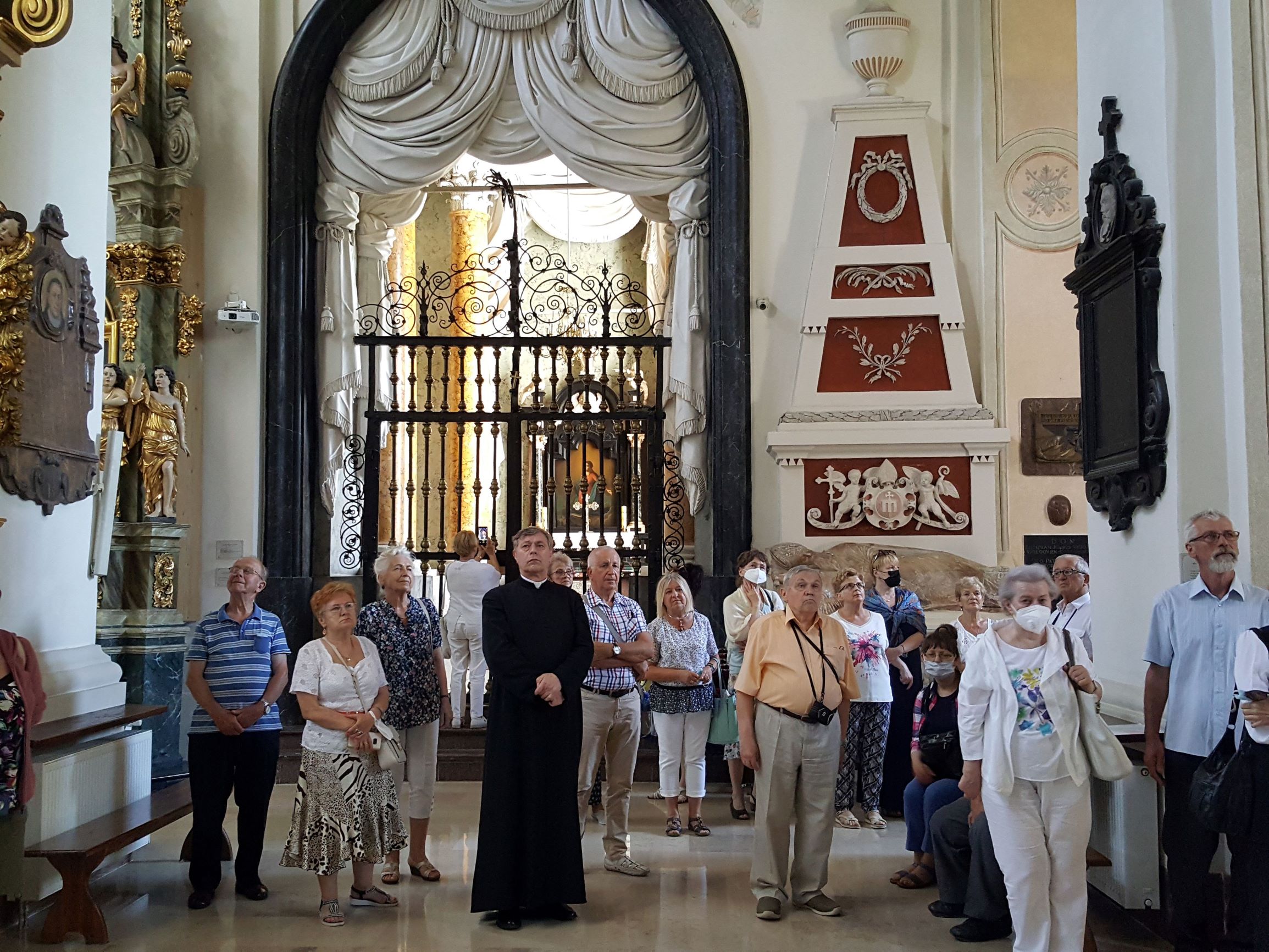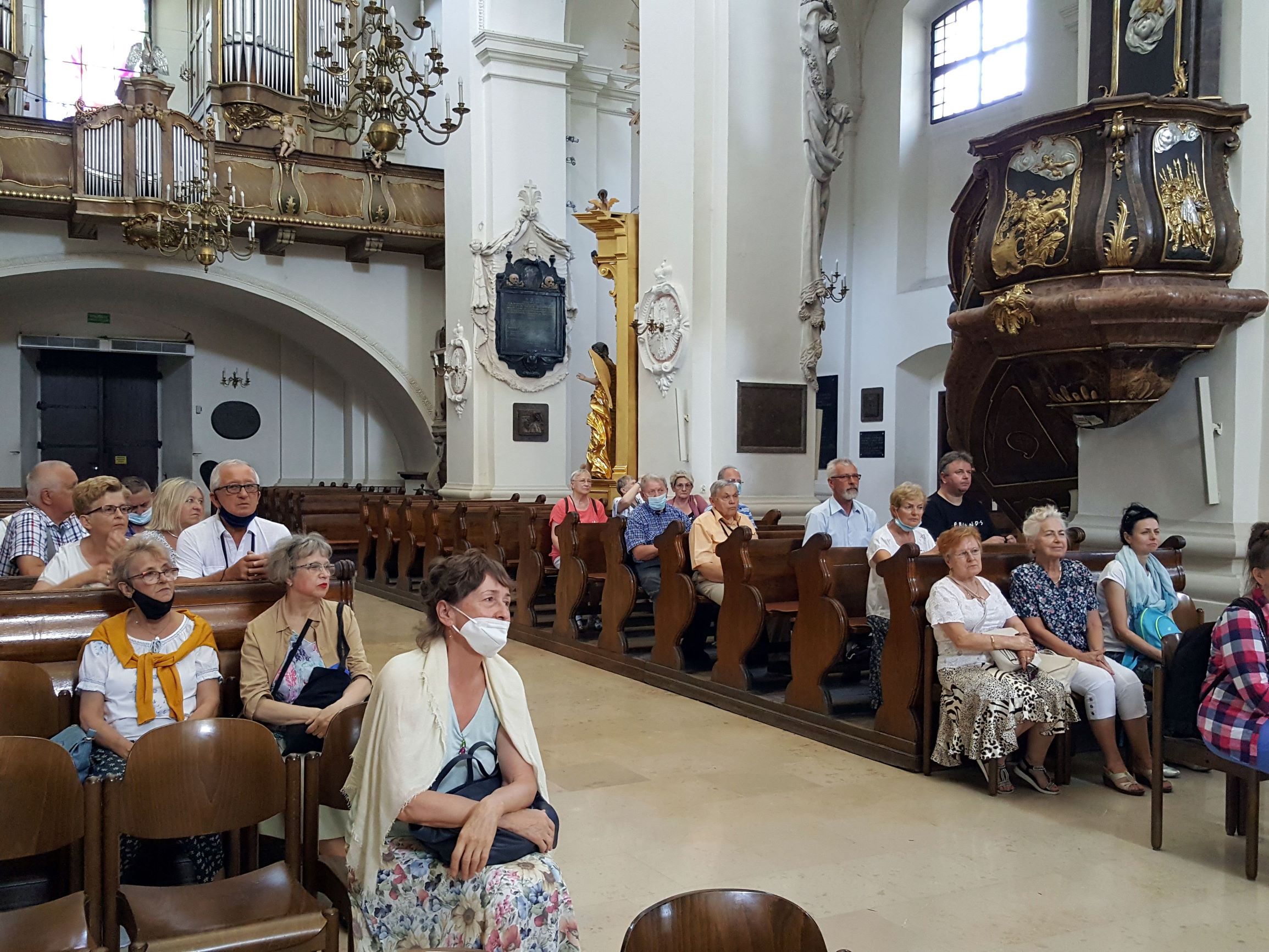Po zwiedzeniu Archikolegiaty i Muzeum Dziedzictwa Kościelnego wszyscy uczestniczyli w nabożeństwie czerwcowym i mszy świętej, którą sprawowali dwaj proboszczowie – ks. Józef Kubalewski i ks. Paweł Nowak, a chórzyści śpiewali części mszy gregoriańskiej Missa de angelis.