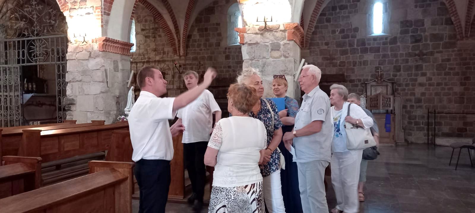Po zwiedzeniu Archikolegiaty i Muzeum Dziedzictwa Kościelnego wszyscy uczestniczyli w nabożeństwie czerwcowym i mszy świętej, którą sprawowali dwaj proboszczowie – ks. Józef Kubalewski i ks. Paweł Nowak, a chórzyści śpiewali części mszy gregoriańskiej Missa de angelis.