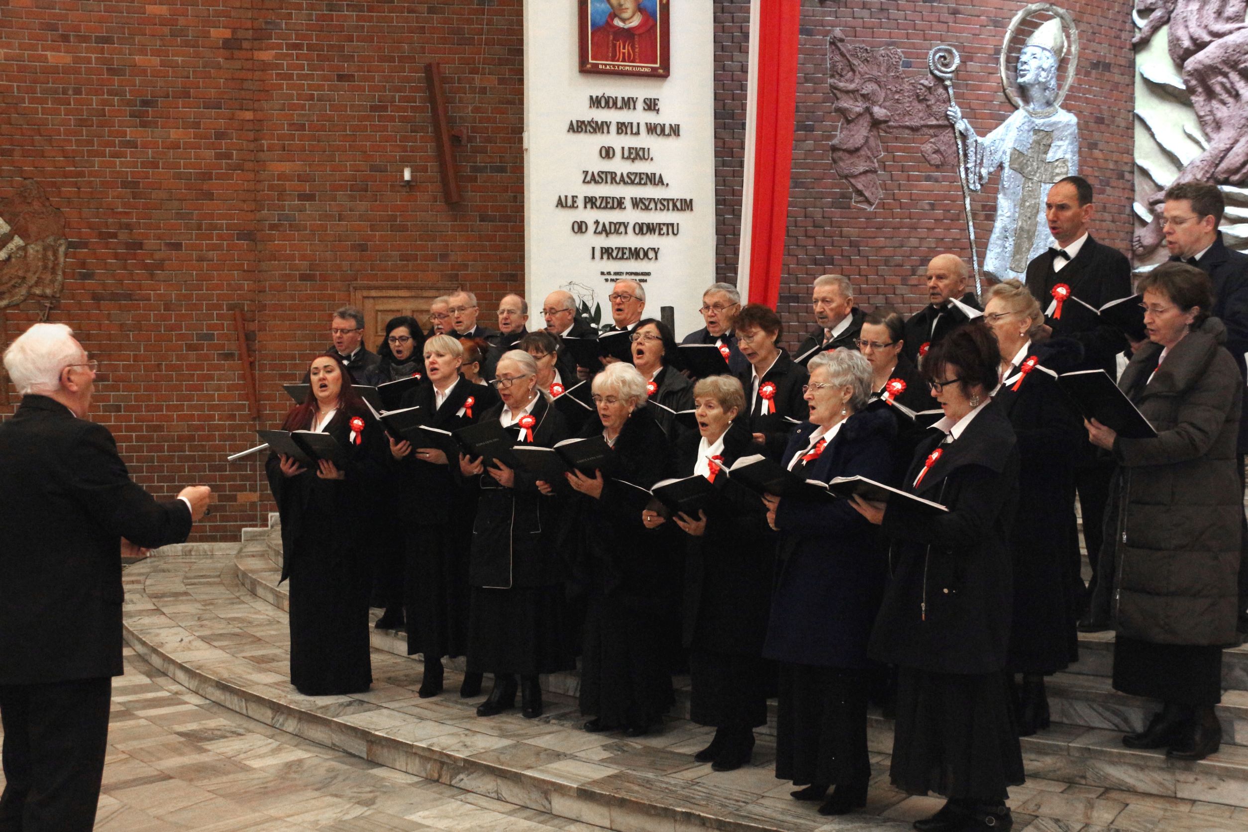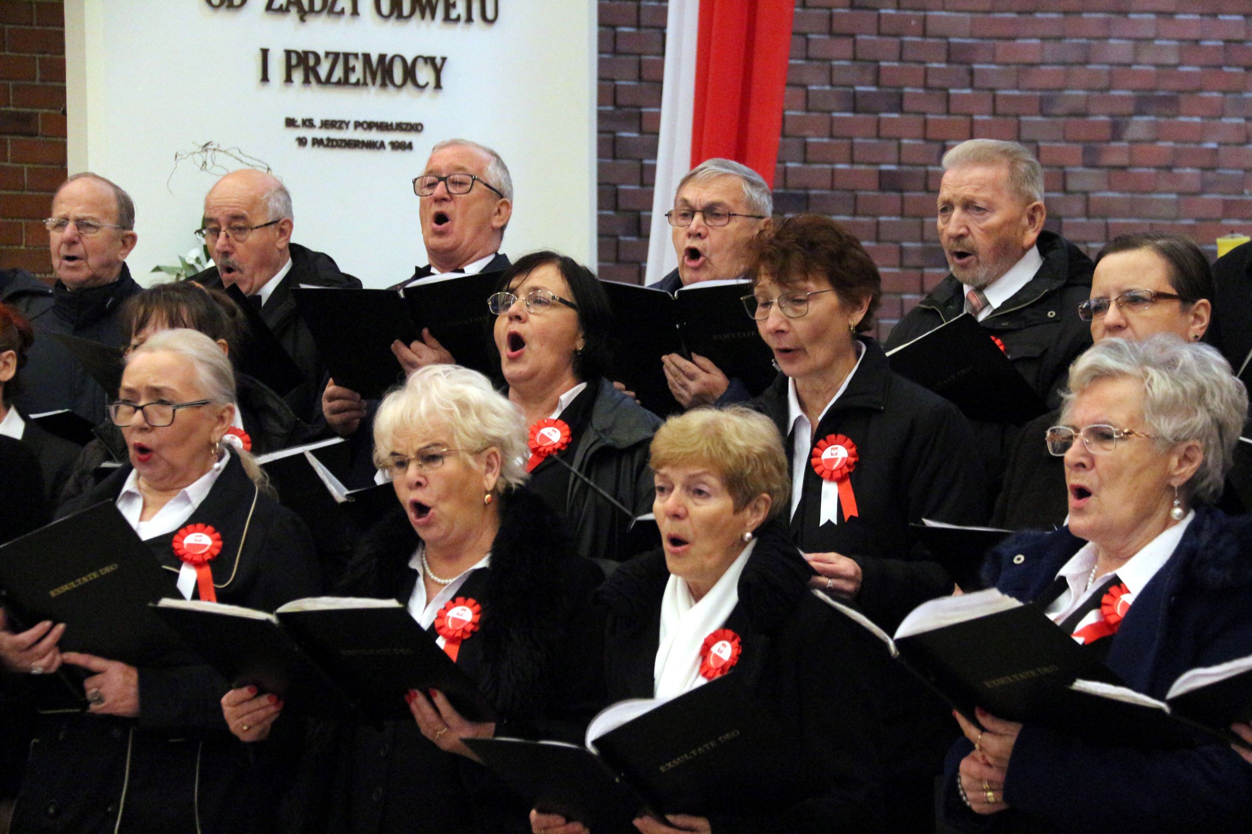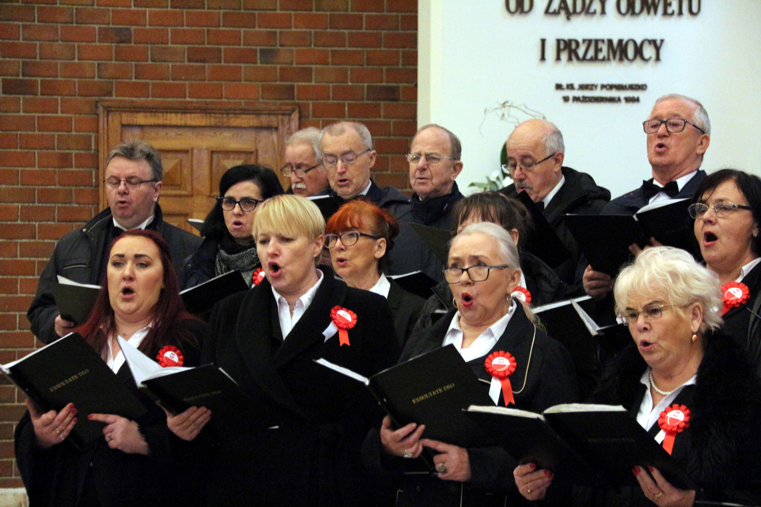 Zgodnie z długoletnią tradycją również w tym roku chór „Exsultate Deo” uczestniczył w ramach 40 Tygodnia Kultury Chrześcijańskiej, dając dwa koncerty pieśni patriotycznej „Tobie Polsko”. Pierwszy, zapowiedziany pięknymi plakatami, poprzedzony uroczystą Mszą Świętą, której przewodniczył Proboszcz ks. prałat Józef Kubalewski, odbył się w dniu Święta Niepodległości, w naszym kościele. Na Mszę św. i na koncert przybyła duża grupa Parafian i Sympatyków naszego chóru. Była też obecna drużyna harcerska Związku Harcerzy Rzeczpospolitej działająca przy naszej Parafii. Razem z chórem wystąpili soliści; Natalia Kolanowska, Hanna Twaróżek-Bułka i Adam Krasiński. Podczas Mszy Św. towarzyszyła chórowi na organach Beata Gaj. Koncert pieśni patriotycznej poprowadził od organów dyrygent Romuald Rajs. Cały koncert opatrzyła pięknym słowem Agnieszka Kucharska. Miłe chórzystom były rzęsiste brawa słuchaczy. Dodatkowym akcentem było specjalne podziękowanie od organizatorów TKCh, podpisane przez nowego Biskupa Bydgoskiego ks. Krzysztofa Włodarczyka, wręczył Senior Archikonfraterni Literackiej Aleksander Grzybek.