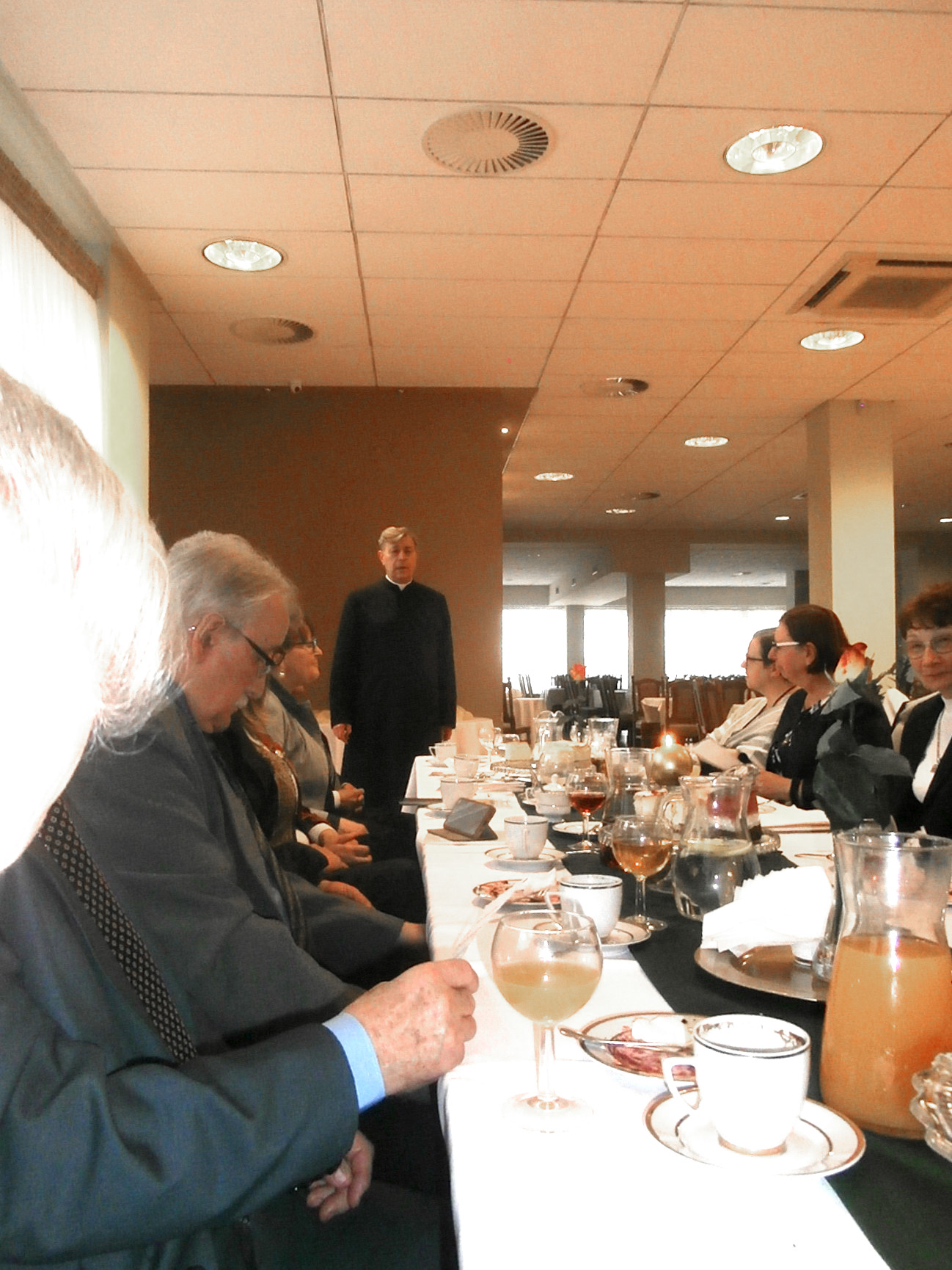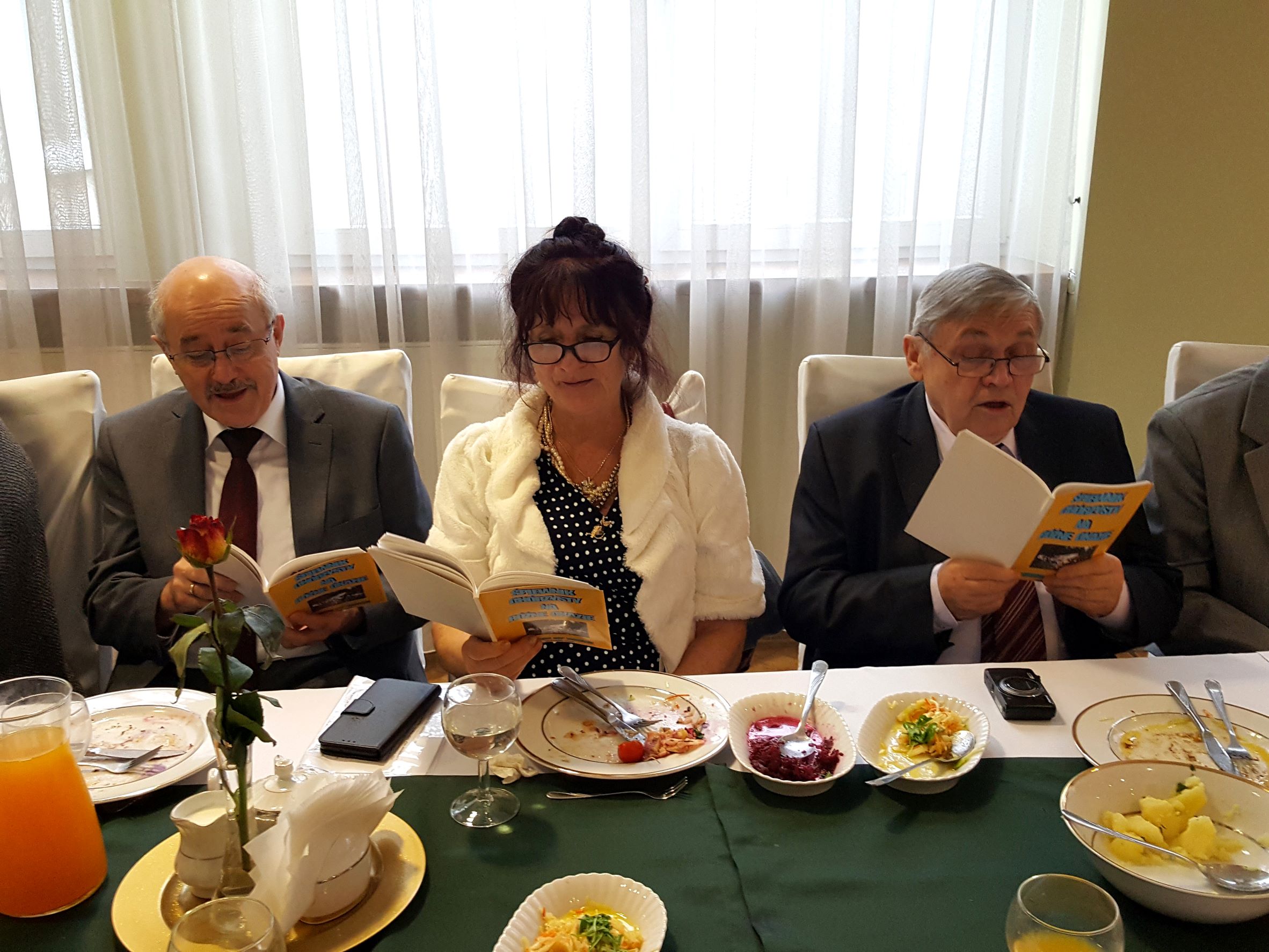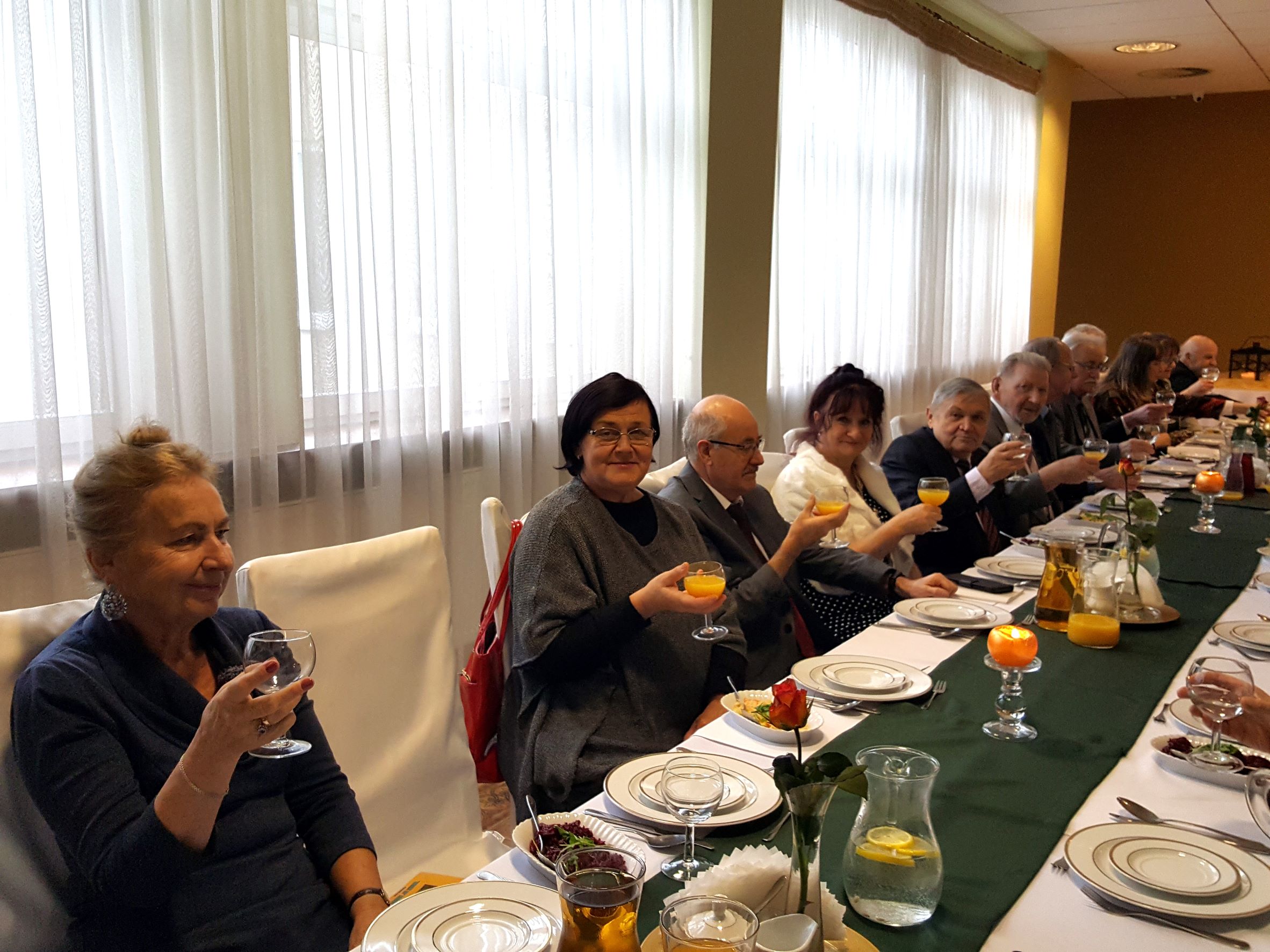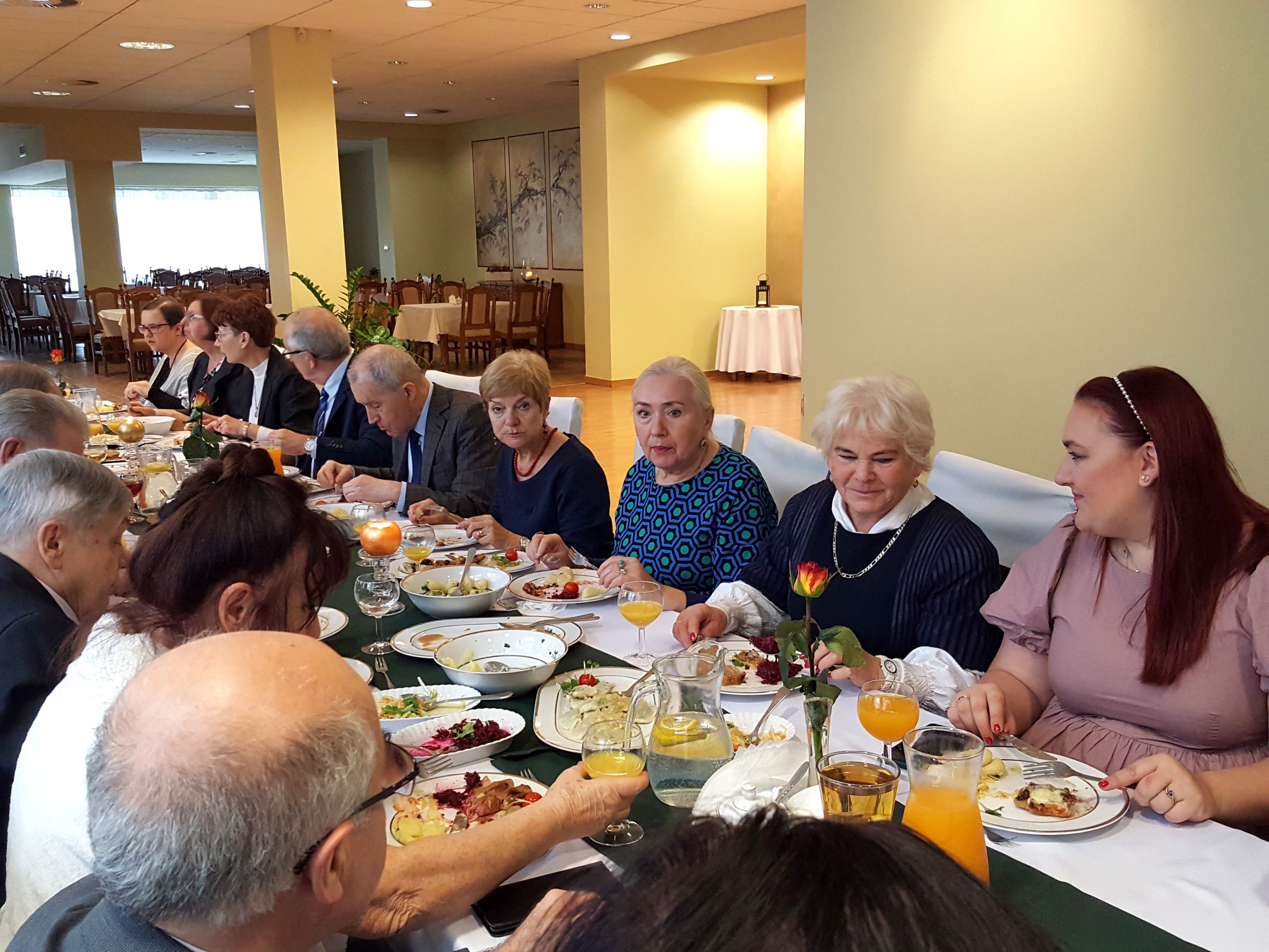 Na spotkanie przyszliśmy bezpośrednio po Mszy św. sprawowanej w Uroczystość Chrystusa Króla, w której uczestniczyliśmy śpiewem. Rozpoczęliśmy od bezalkoholowego toastu za dalsze istnienie i działanie naszego chóru. Z wielkim apetytem rozpoczęliśmy konsumpcję uroczystego obiadu, gdzie każdy mógł wybrać ulubione danie. Jak widać na prezentowanych zdjęciach, menu było wyśmienite i urozmaicone oraz cieszyło się powodzeniem chórzystów.