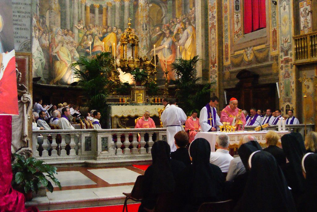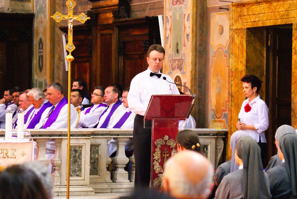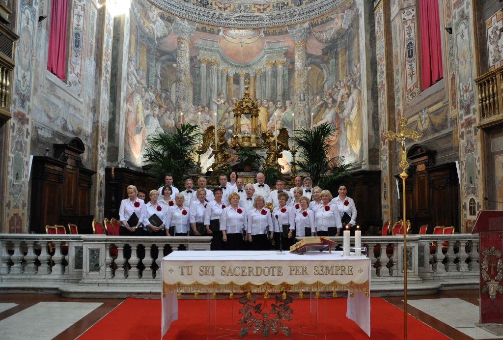 2 kwietnia - w 6 rocznicę śmierci bł. Jana Pawła II, chór miał zaszczyt śpiewać (na zaproszenie duszpasterza pielgrzymów polskich w Rzymie i za zgodą stosownych władz Watykanu) w pięknym rzymskim kościele Świętego Ducha, podczas uroczystej Eucharystii, którą sprawował ks. kardynał Stanisław Ryłko - w koncelebrze 40 kapłanów. Msza św. miała charakter uroczystego dziękczynienia Panu Bogu za dar Jana Pawła II. Zespół wykonał śpiewy liturgiczne w języku łacińskim (Missa de angelis), trzy polskie pieśni wielkopostne oraz psalm i czytania mszalne. Dyrygował Romuald Rajs, akompaniowała Aleksandra Walecka. Udział naszego, parafialnego chóru został bardzo dobrze przyjęty przez księży i wiernych licznie zgromadzonych w świątyni.