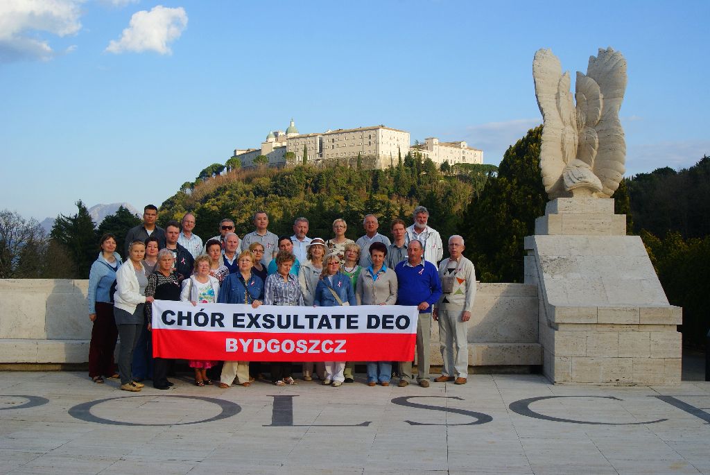 Chór „Exsultate Deo" z parafii Św. Polskich Braci Męczenników w Bydgoszczy w dniach od 27 marca do 6 kwietnia przebywał w Italii. Uczestnicy 11 dniowej pielgrzymki, prowadzeni przez znakomitego przewodnika p. Łukasza z biura „Gosia Travel", zwiedzili Asyż, San Giovanni Rotondo, Florencję, Sienę, Monte Cassino, Wenecję i Rzym, gdzie spotkali się z papieżem Benedyktem XVI na modlitwie „ Anioł Pański". Na wojskowym, polskim cmentarzu na Monte Cassino, po odśpiewaniu Polskiego Hymnu, modlitwy Anioł Pański i pieśni „Czerwone maki" złożono okazałą wiązankę kwiatów i zapalono znicze.