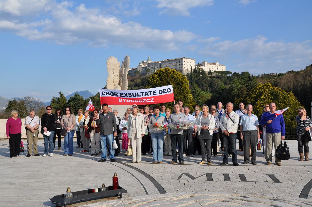 Chór „Exsultate Deo" z parafii Św. Polskich Braci Męczenników w Bydgoszczy w dniach od 27 marca do 6 kwietnia przebywał w Italii. Uczestnicy 11 dniowej pielgrzymki, prowadzeni przez znakomitego przewodnika p. Łukasza z biura „Gosia Travel", zwiedzili Asyż, San Giovanni Rotondo, Florencję, Sienę, Monte Cassino, Wenecję i Rzym, gdzie spotkali się z papieżem Benedyktem XVI na modlitwie „ Anioł Pański". Na wojskowym, polskim cmentarzu na Monte Cassino, po odśpiewaniu Polskiego Hymnu, modlitwy Anioł Pański i pieśni „Czerwone maki" złożono okazałą wiązankę kwiatów i zapalono znicze.