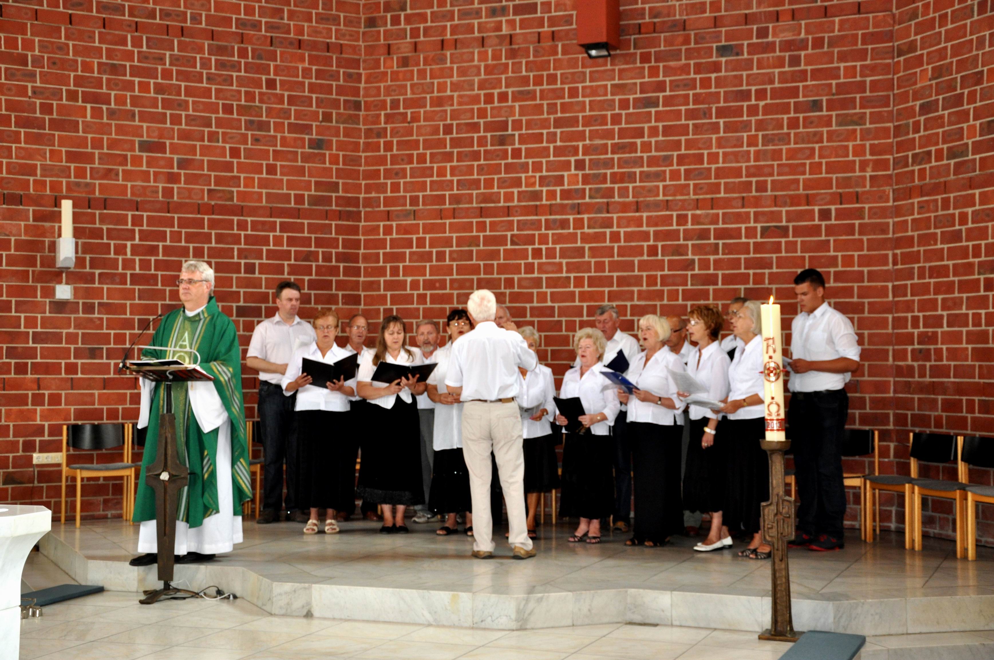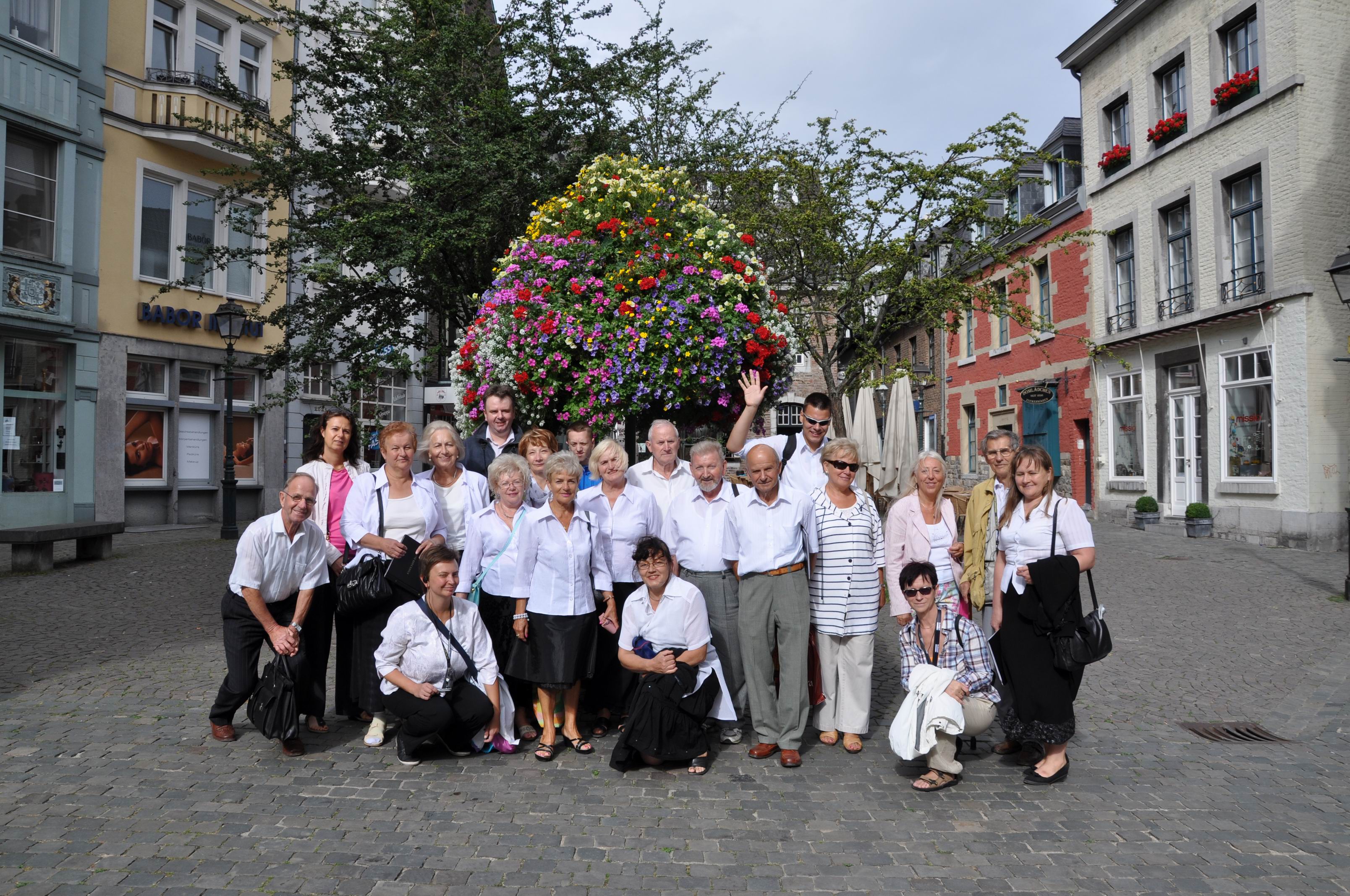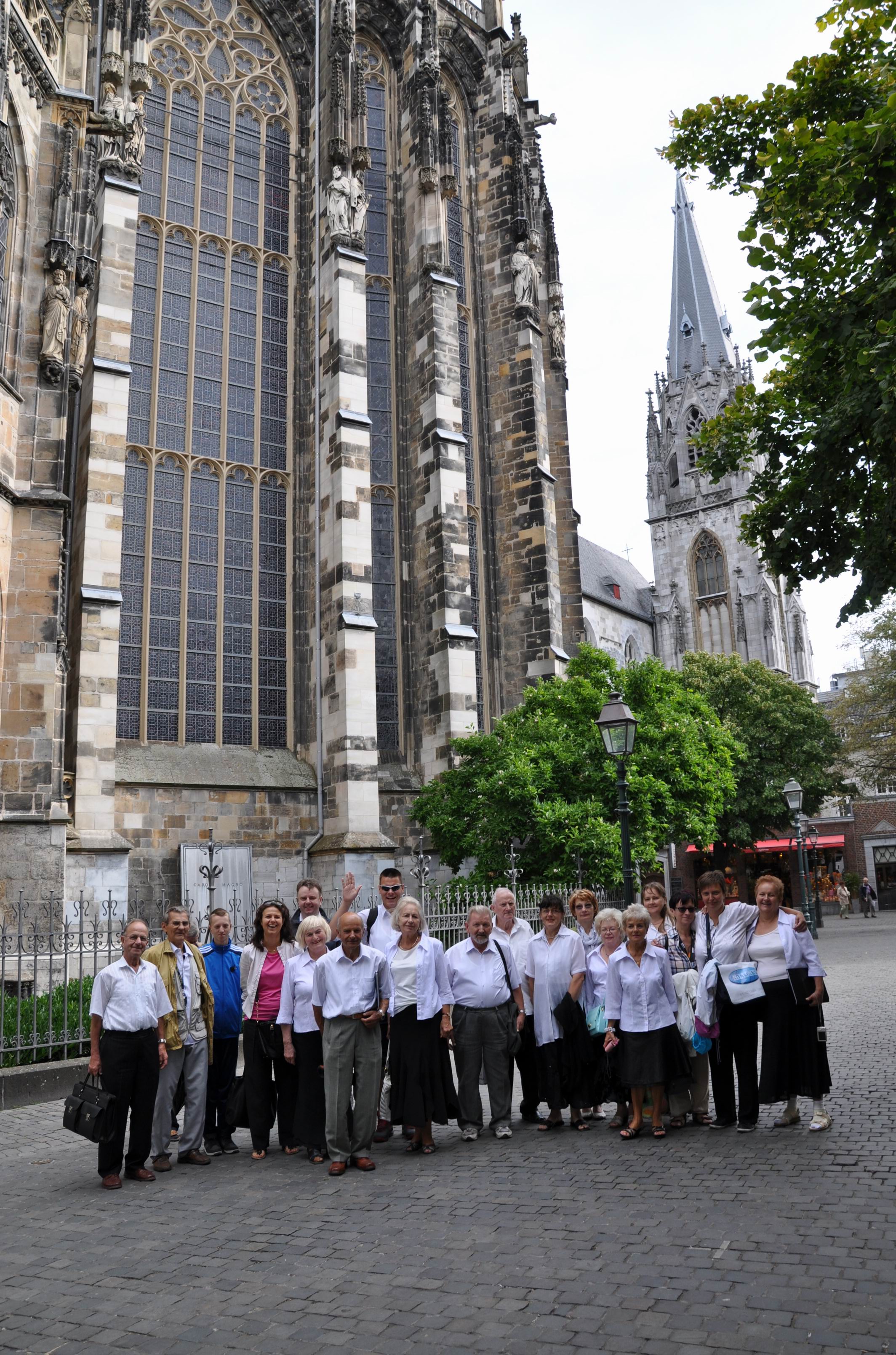 W Niemczech, w Aachen (d. Akwizgran) chór śpiewał podczas niedzielnej mszy świętej w „polskim kościele” pw. Najświętszej Marii Panny. Występ chóru został nagrodzony rzęsistymi brawami przez bardzo licznie obecną na mszy polonię. Po mszy świętej zwiedzano wspaniałą katedrę ze słynną ośmioboczną kaplicą pałacową. Wzniesiona przez Karola Wielkiego,     który w 1156 roku został ogłoszony świętym - jest      miejscem jego spoczynku.     Świątynia została      wyposażona przez fundatora w liczne relikwie z Ziemi Świętej. W pięknym złotym relikwiarzu (w kształcie szkatuły) znajdują się: pieluszka Pana Jezusa; opaska, którą biodra Chrystusa były otoczone gdy wisiał na krzyżu; tkanina, którą owinięta była odcięta głowa Jana Chrzciciela oraz suknia Matki Boskiej z Nocy Bożego Narodzenia". Katedra usytuowana jest w środku urokliwego starego miasta.