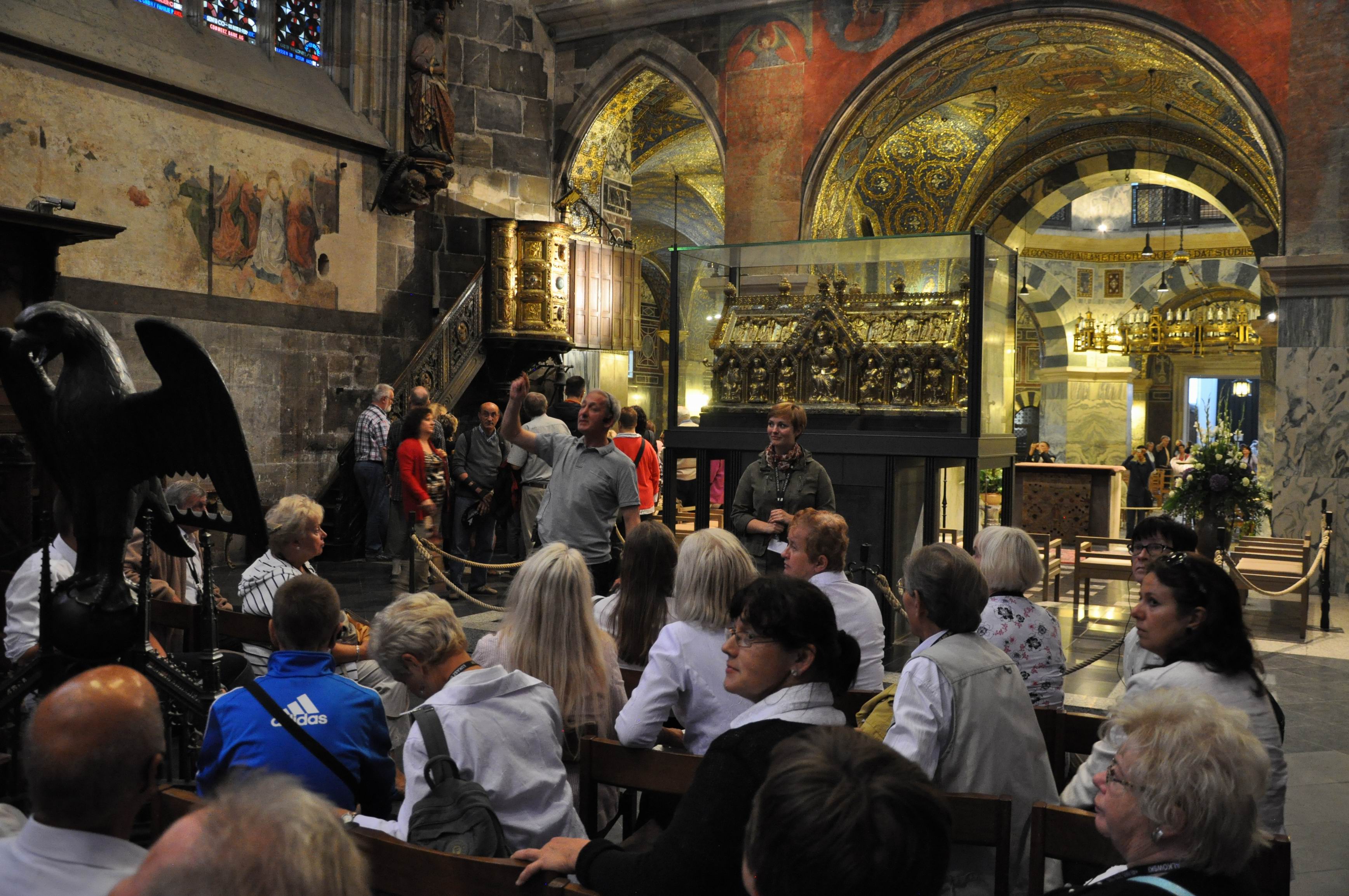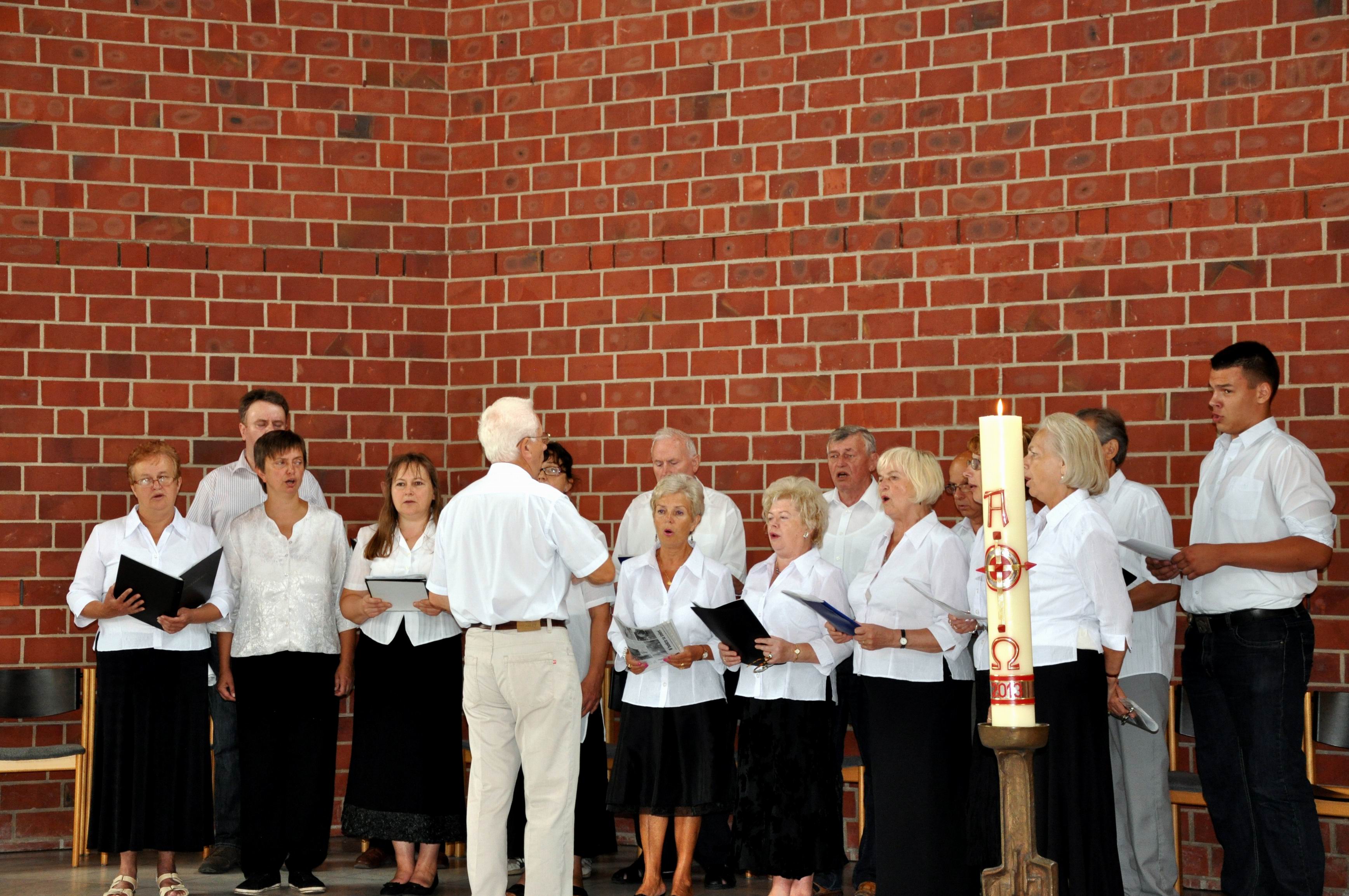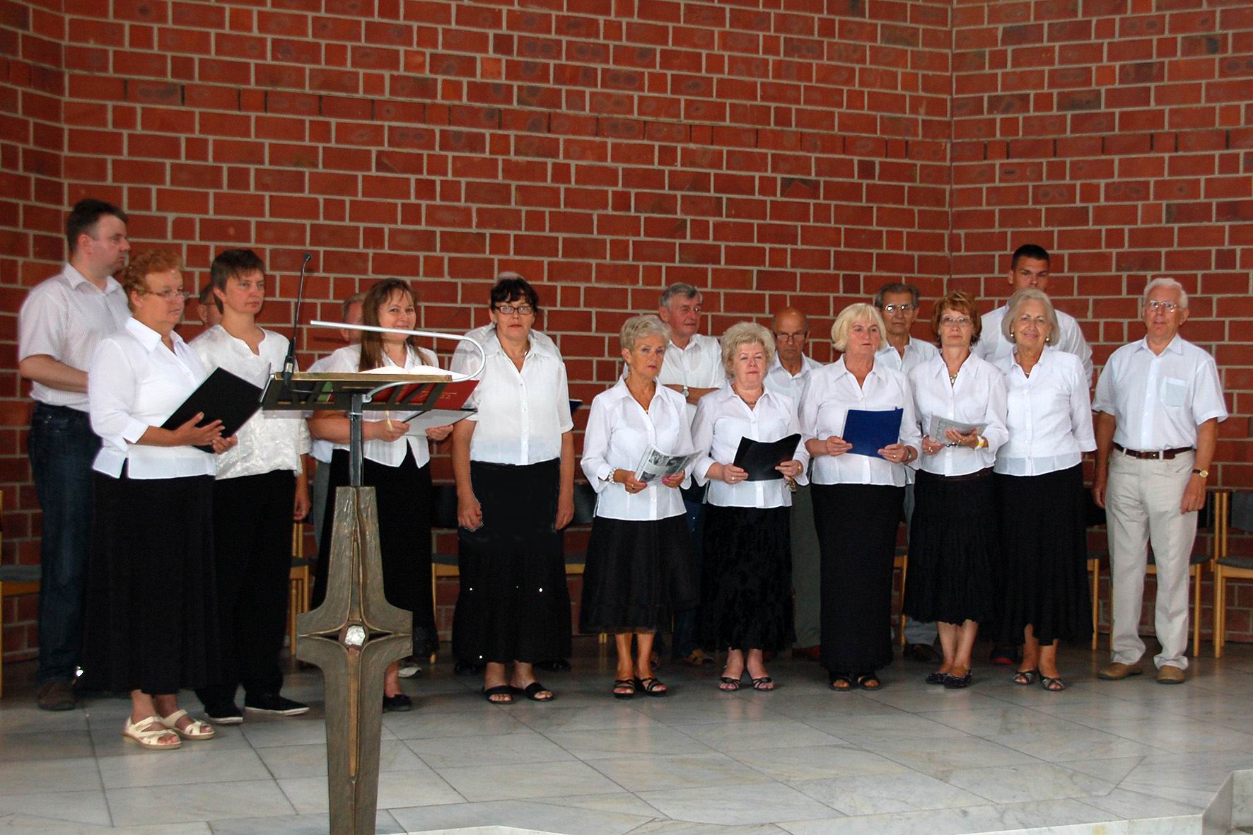 W Niemczech, w Aachen (d. Akwizgran) chór śpiewał podczas niedzielnej mszy świętej w „polskim kościele” pw. Najświętszej Marii Panny. Występ chóru został nagrodzony rzęsistymi brawami przez bardzo licznie obecną na mszy polonię. Po mszy świętej zwiedzano wspaniałą katedrę ze słynną ośmioboczną kaplicą pałacową. Wzniesiona przez Karola Wielkiego,     który w 1156 roku został ogłoszony świętym - jest      miejscem jego spoczynku.     Świątynia została      wyposażona przez fundatora w liczne relikwie z Ziemi Świętej. W pięknym złotym relikwiarzu (w kształcie szkatuły) znajdują się: pieluszka Pana Jezusa; opaska, którą biodra Chrystusa były otoczone gdy wisiał na krzyżu; tkanina, którą owinięta była odcięta głowa Jana Chrzciciela oraz suknia Matki Boskiej z Nocy Bożego Narodzenia". Katedra usytuowana jest w środku urokliwego starego miasta.