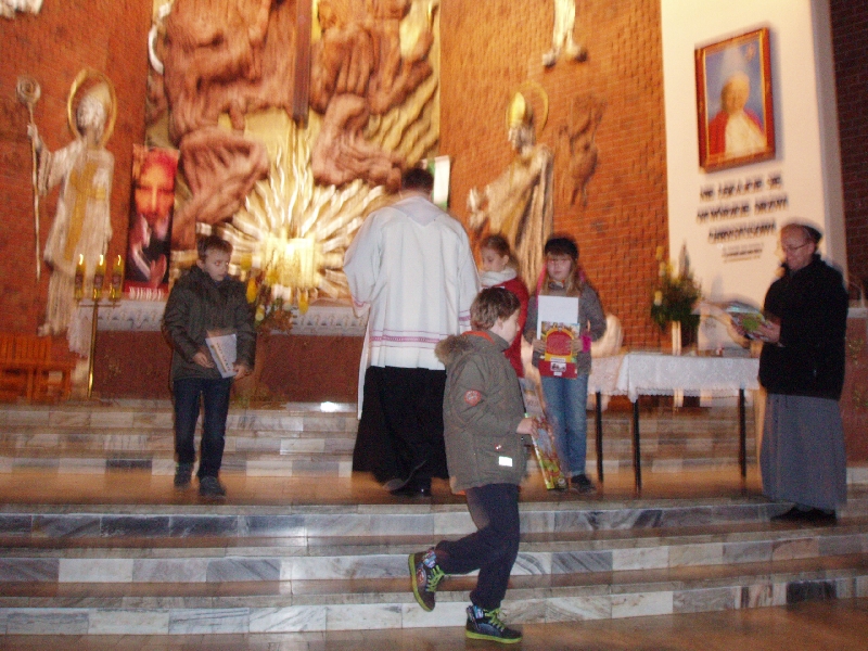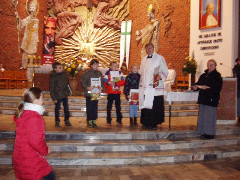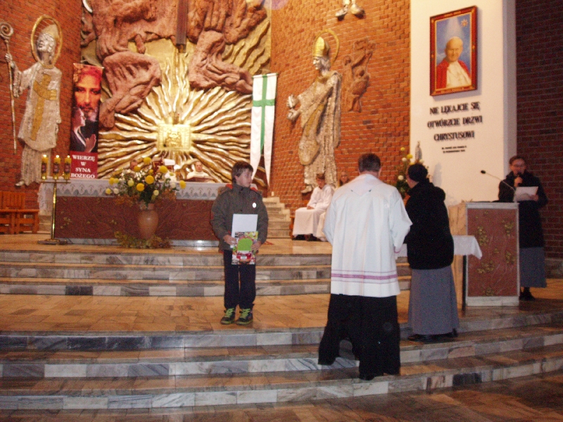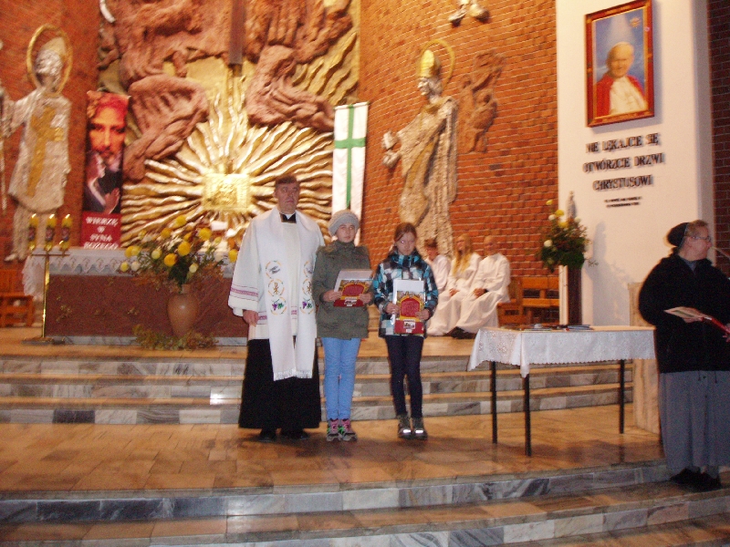 Podsumowanie i rozstrzygnięcie konkursu wiedzy miało miejsce w czasie nabożeństwa różańcowego, natomiast konkurs plastyczny swój finał miał podczas Mszy świętej 9 listopada.
