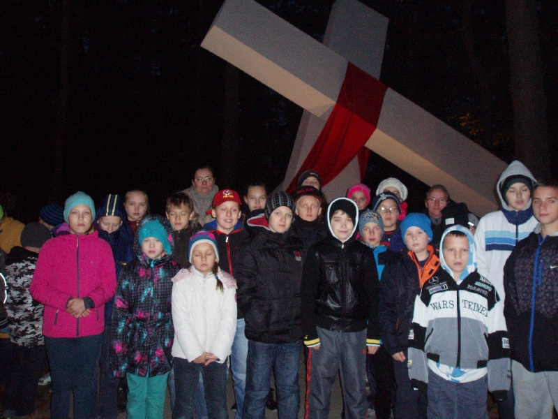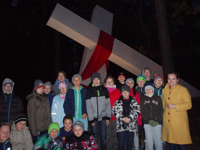 24 października  uczniowie szkoły nr 46 i 57 pod opieką s. Marii i swoich katechetów p. Lucyny, p. Agaty i p. Katarzyny udali się na pielgrzymkę śladami ostatniej podróży ks. Jerzego Popiełuszki. Pielgrzymka wyruszyła wczesnym rankiem spod kościoła Polskich Braci Męczenników, aby po drodze zatrzymać się w Górsku – miejscu uprowadzenia ks. Jerzego. Po krótkiej modlitwie przy pomniku – Krzyżu ruszyliśmy w kierunku Warszawy, aby na warszawskim Żoliborzu modlić się przy grobie ks. Jerzego.