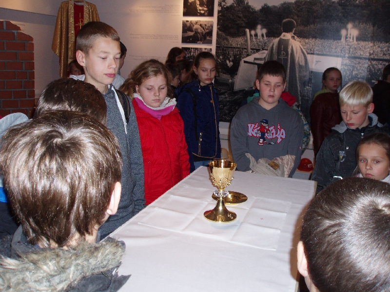 Na terenie parafii w której pracował ks. Jerzy zwiedziliśmy Muzeum poświęcone życiu i działalności oraz męczeńskiej śmierci ks. Jerzego. Była to dla nas wielka historia Polski ostatnich lat XX wieku.