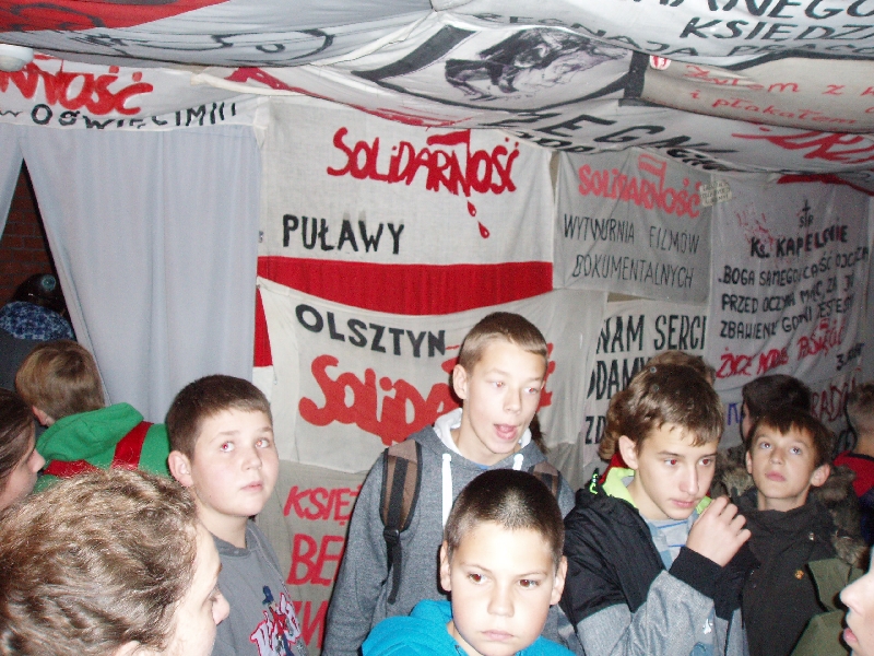 24 października uczniowie szkoły nr 46 i 57 pod opieką s. Marii i swoich katechetów p. Lucyny, p. Agaty i p. Katarzyny udali się na pielgrzymkę śladami ostatniej podróży ks. Jerzego Popiełuszki. Pielgrzymka wyruszyła wczesnym rankiem spod kościoła Polskich Braci Męczenników, aby po drodze zatrzymać się w Górsku – miejscu uprowadzenia ks. Jerzego. Po krótkiej modlitwie przy pomniku – Krzyżu ruszyliśmy w kierunku Warszawy, aby na warszawskim Żoliborzu modlić się przy grobie ks. Jerzego.
