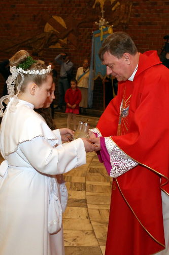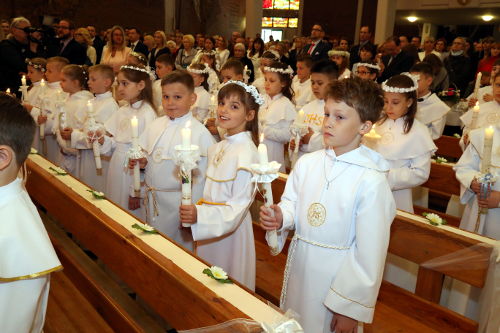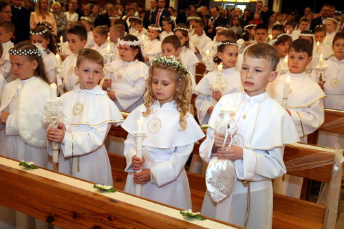 W homilii ks. proboszcz wskazał radość, że swoim szczęściem dzieli się Bogiem z innymi. Ukazał Chrystusa, jako światło. Pierwsza Komunia Św. to wydarzenie, które pozostaje w pamięci wielu, pozostaje na całe życie. To wtedy po raz pierwszy dzieci przyjmują Najświętszy Sakrament. Maj to miesiąc, w którym wszystko budzi się do życia po zimie, jest kolorowo i słonecznie. Niech dzień I Komunii św. stanie się „rozpakowywaniem” najważniejszego, najpiękniejszego Prezentu – Jezusa!