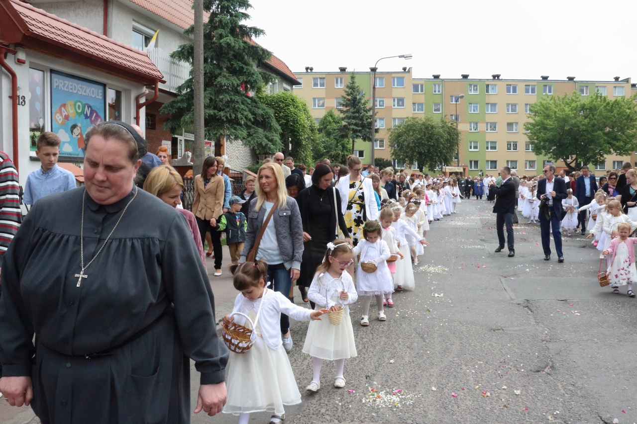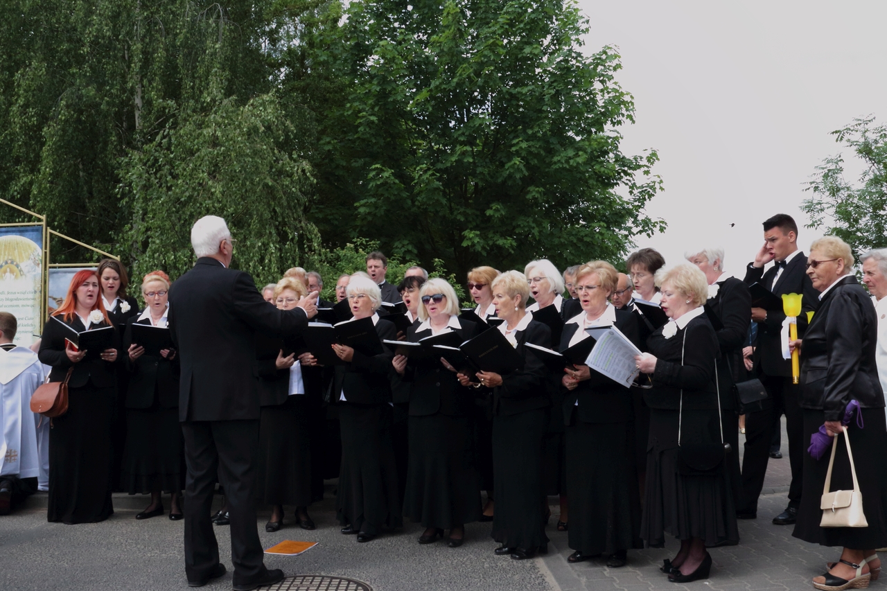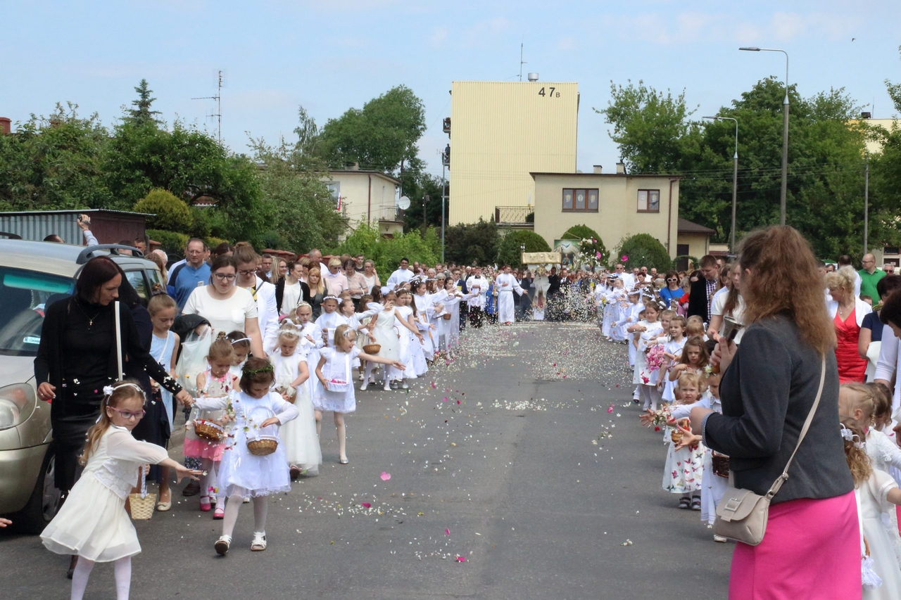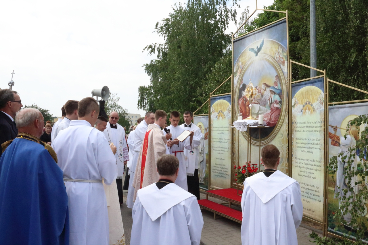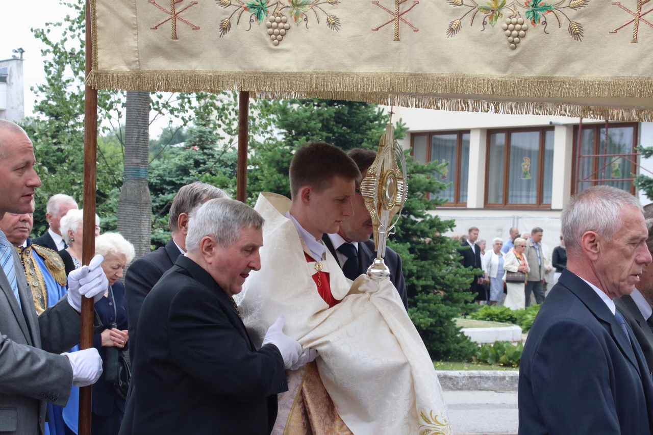Procesję Eucharystyczną do czterech ołtarzy poprowadził ks. neoprezbiter Paweł Białczyk. Bezpośrednio po procesji Ks. Paweł odprawił Mszę św. i udzielił prymicyjnego błogosławieństwa.