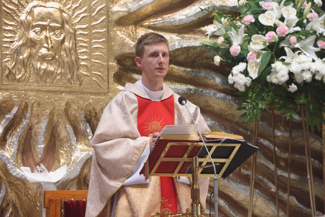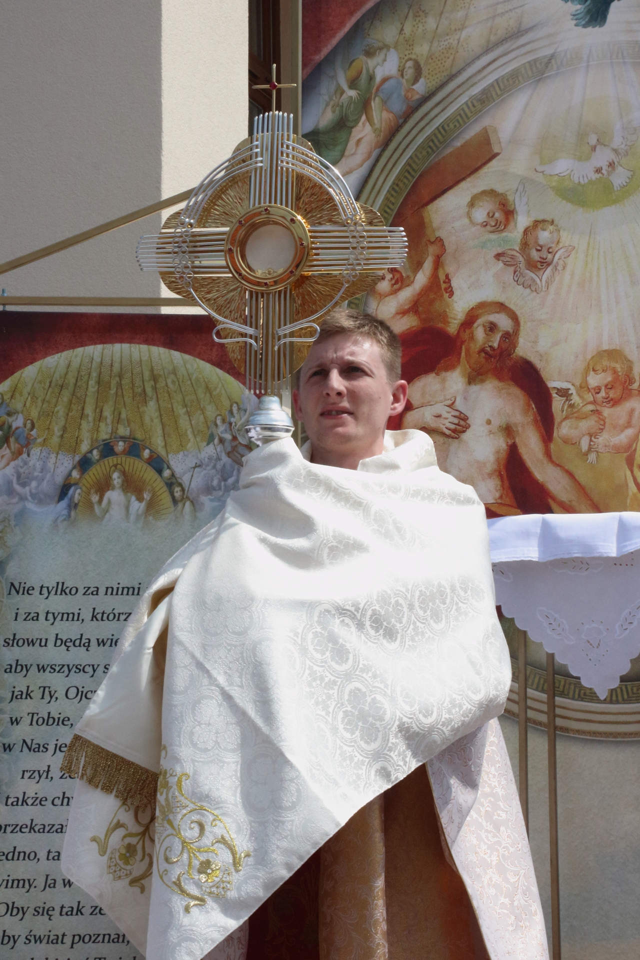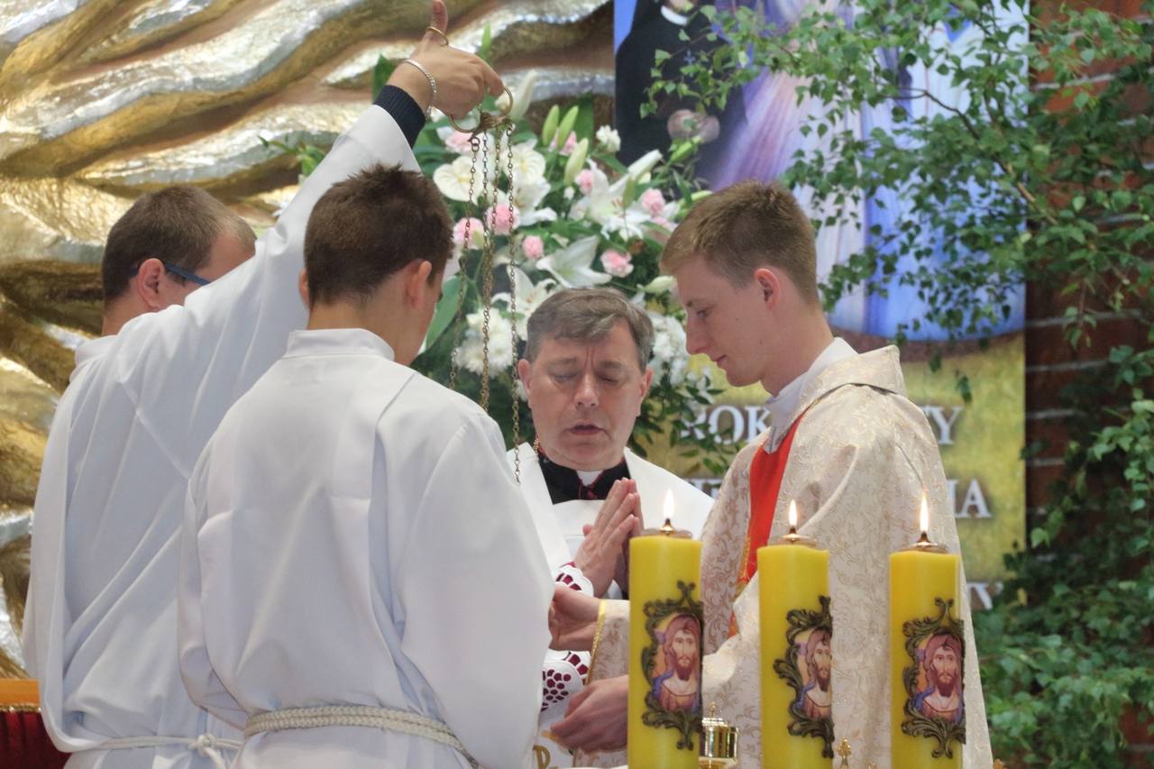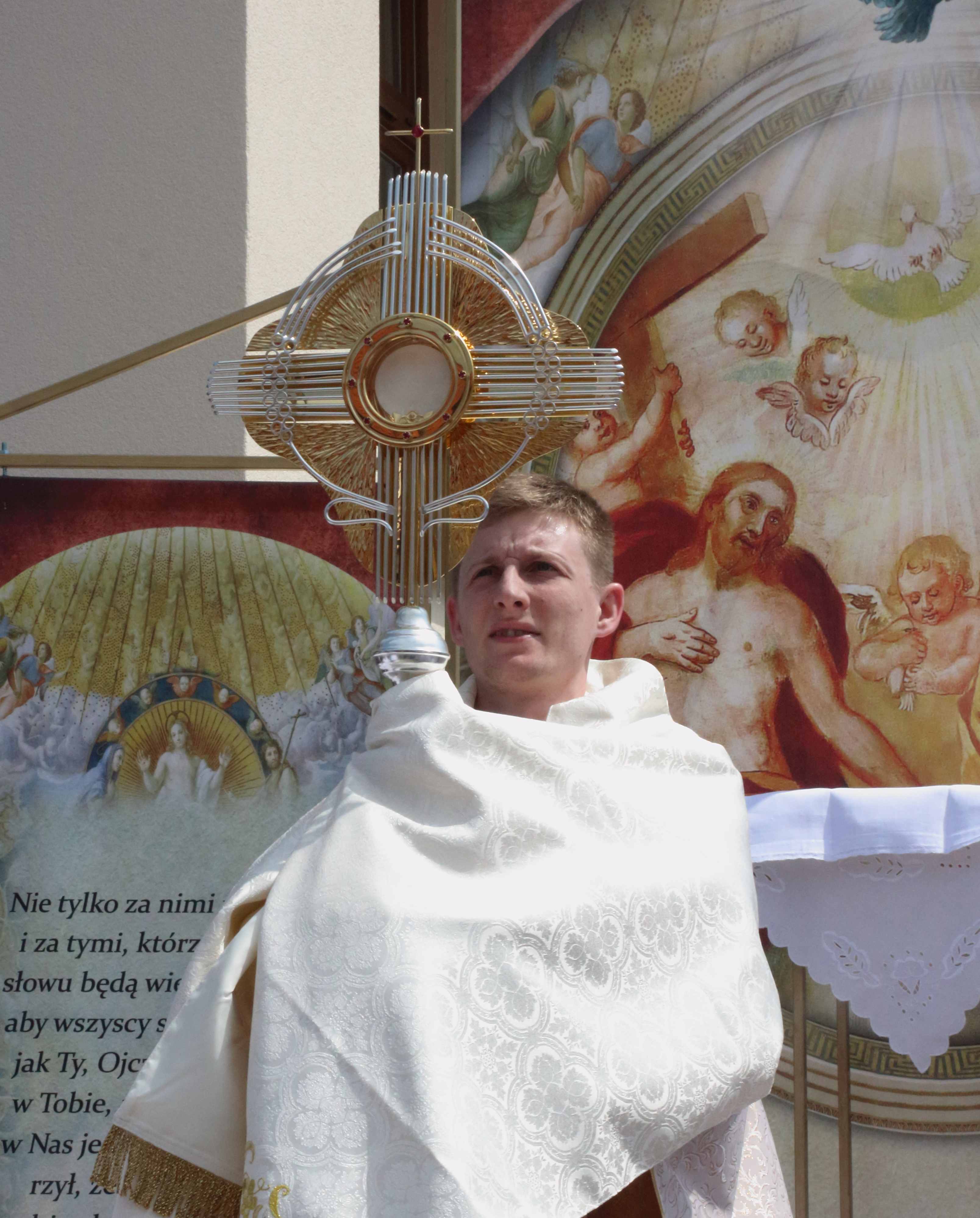 Procesję Eucharystyczną do czterech ołtarzy poprowadził ks. neoprezbiter Paweł Białczyk. Bezpośrednio po procesji Ks. Paweł odprawił Mszę św. i udzielił prymicyjnego błogosławieństwa.