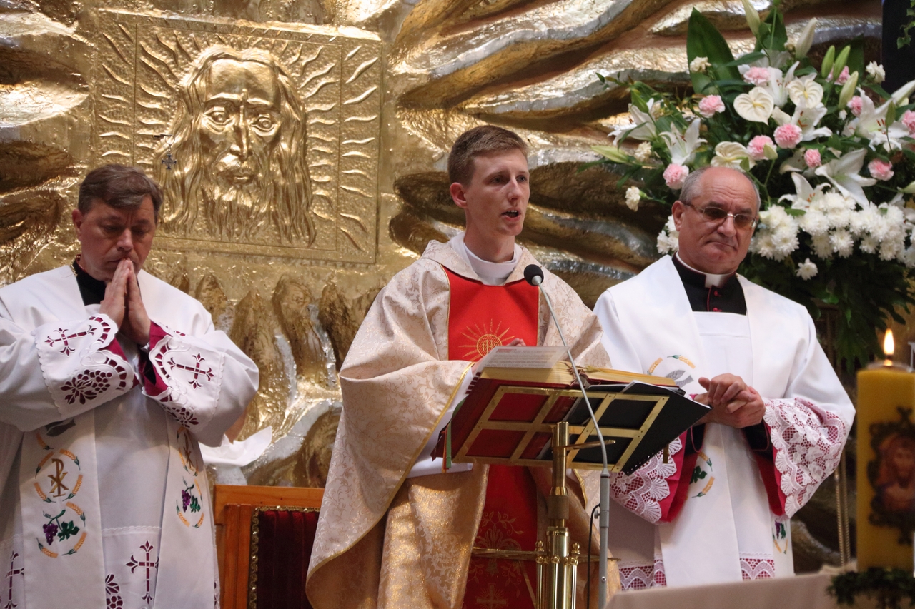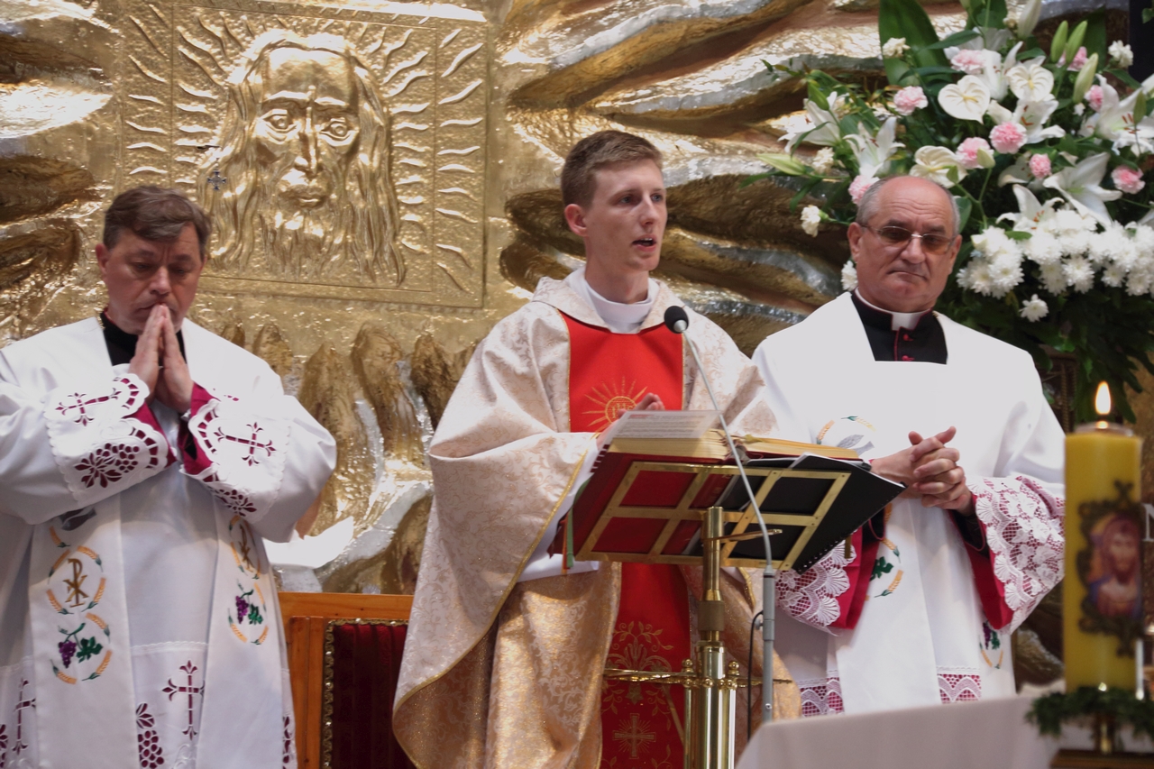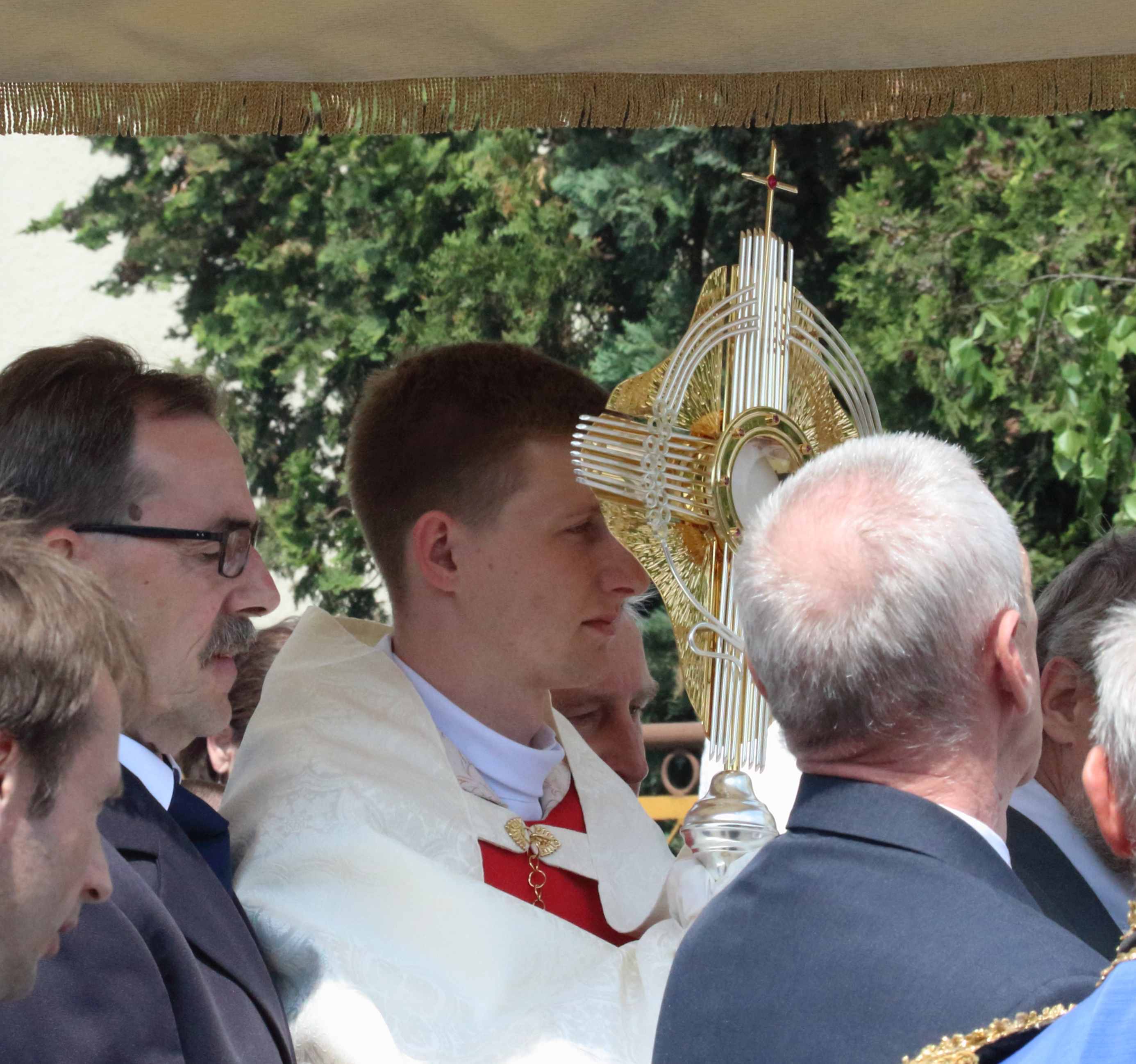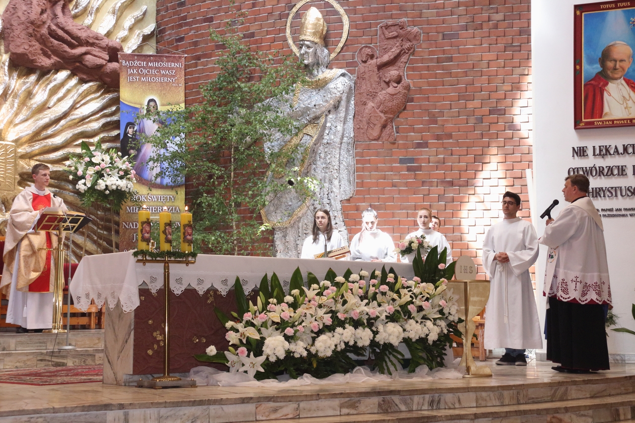 Procesję Eucharystyczną do czterech ołtarzy poprowadził ks. neoprezbiter Paweł Białczyk. Bezpośrednio po procesji Ks. Paweł odprawił Mszę św. i udzielił prymicyjnego błogosławieństwa.