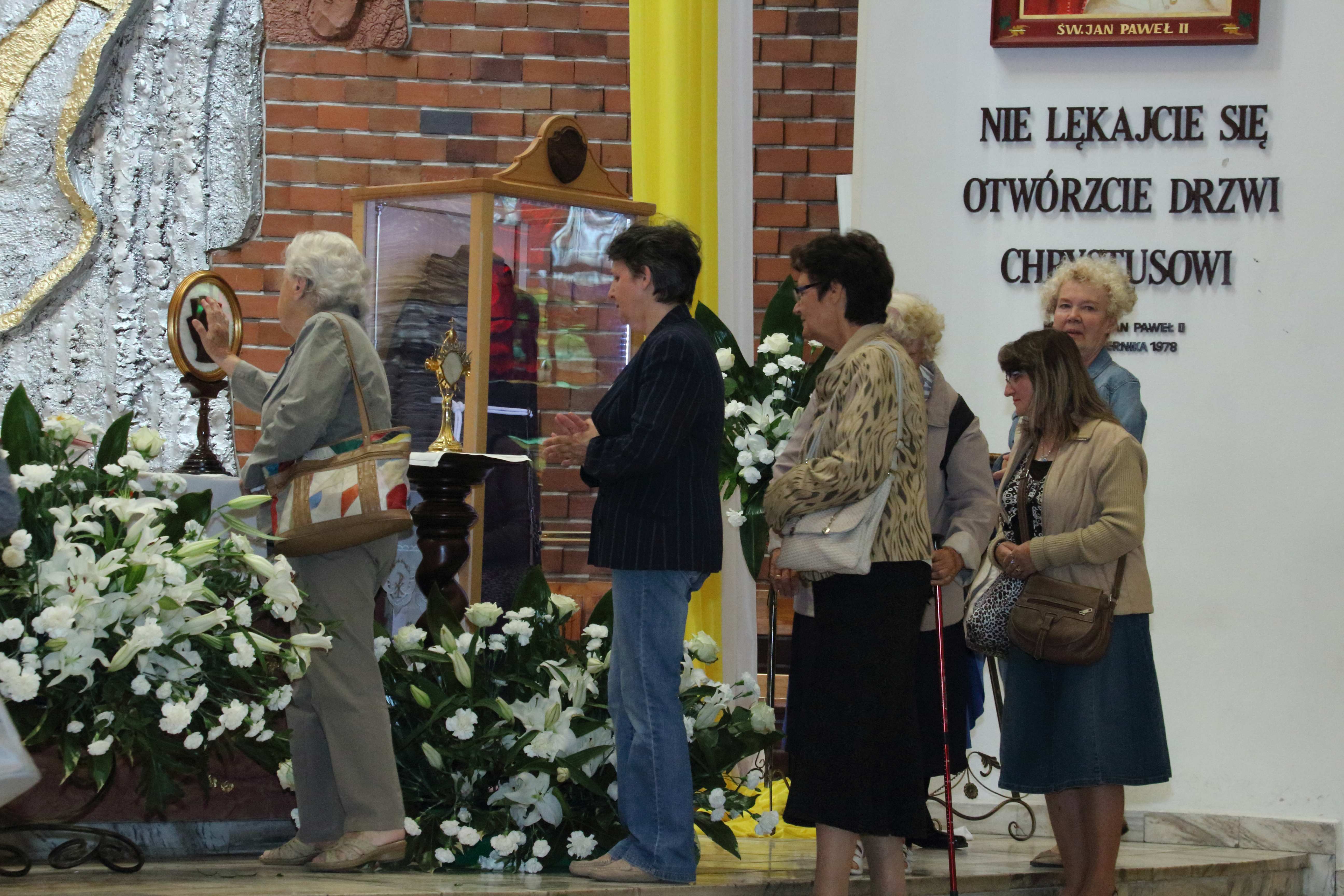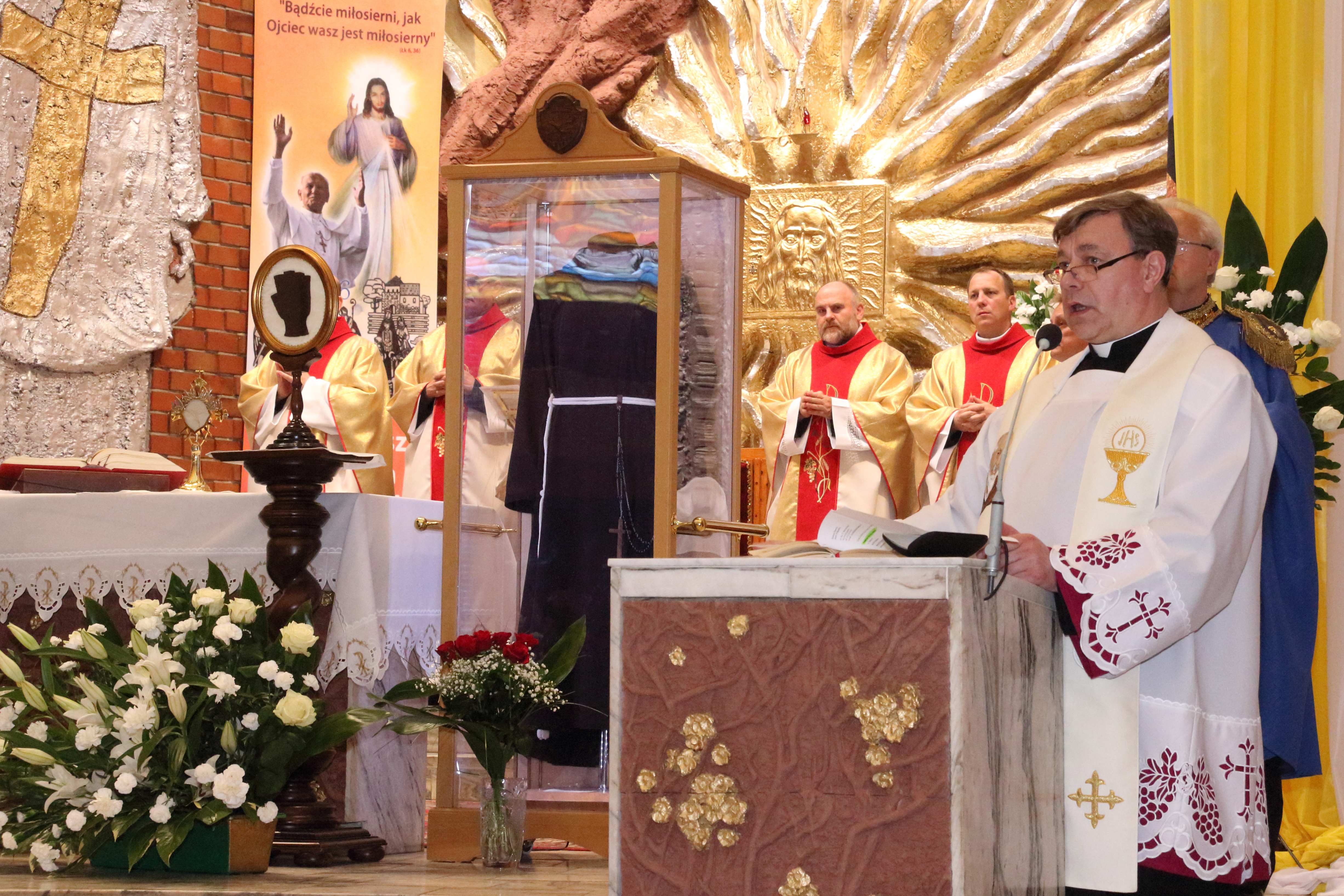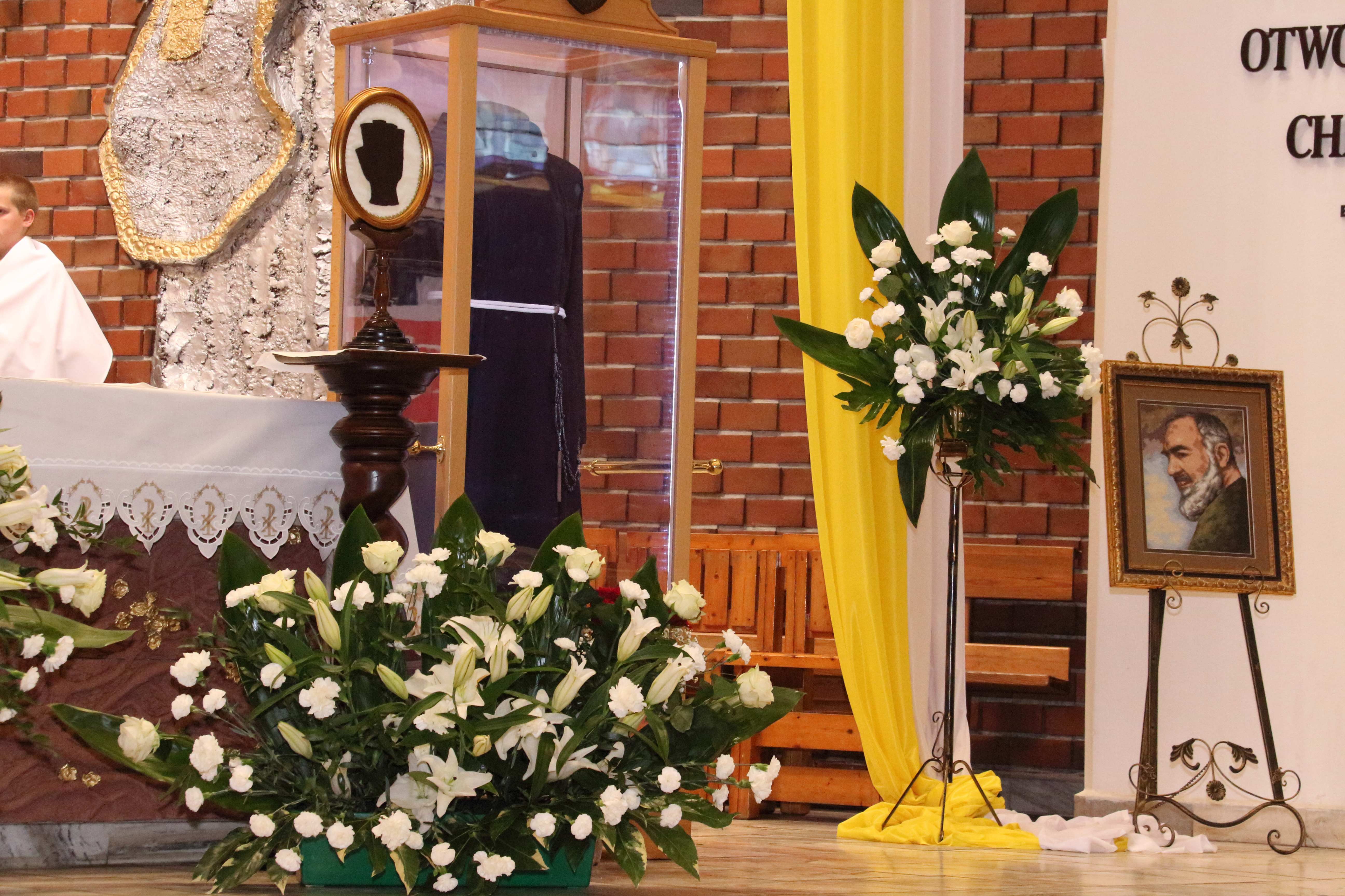 O godz. 16,3o przez Bramę Miłosierdzia uroczyście wprowadzone zostały relikwie św. Ojca Pio: habit, rękawiczka skrywająca stygmaty i bandaż z Jego krwią. Po wprowadzeniu, odprawiona została Koronka do Bożego Miłosierdzia z wystawieniem Najświętszego Sakramentu i ucałowaniem relikwii św. Ojca Pio. O godz. 18.oo uroczysta Msza św. koncelebrowana pod przewodnictwem ks. Biskupa Jana Tyrawy. Relikwie O. Pio można było adorować do poniedziałku. Po Mszy św. o godz. 10.oo odbyło się pożegnanie przybyłych do parafii szczególnych relikwii włoskiego stygmatyka. Przez dziesięć dni relikwie o. Pio nawiedzą dwanaście parafii i klasztorów w całej Polsce. Relikwie Ojca Pio przybywają do miejsc, w których od wielu lat jest żywo obecny, jako orędownik u Boga i przewodnik na duchowych drogach, gdzie działają jego Grupy Modlitwy.