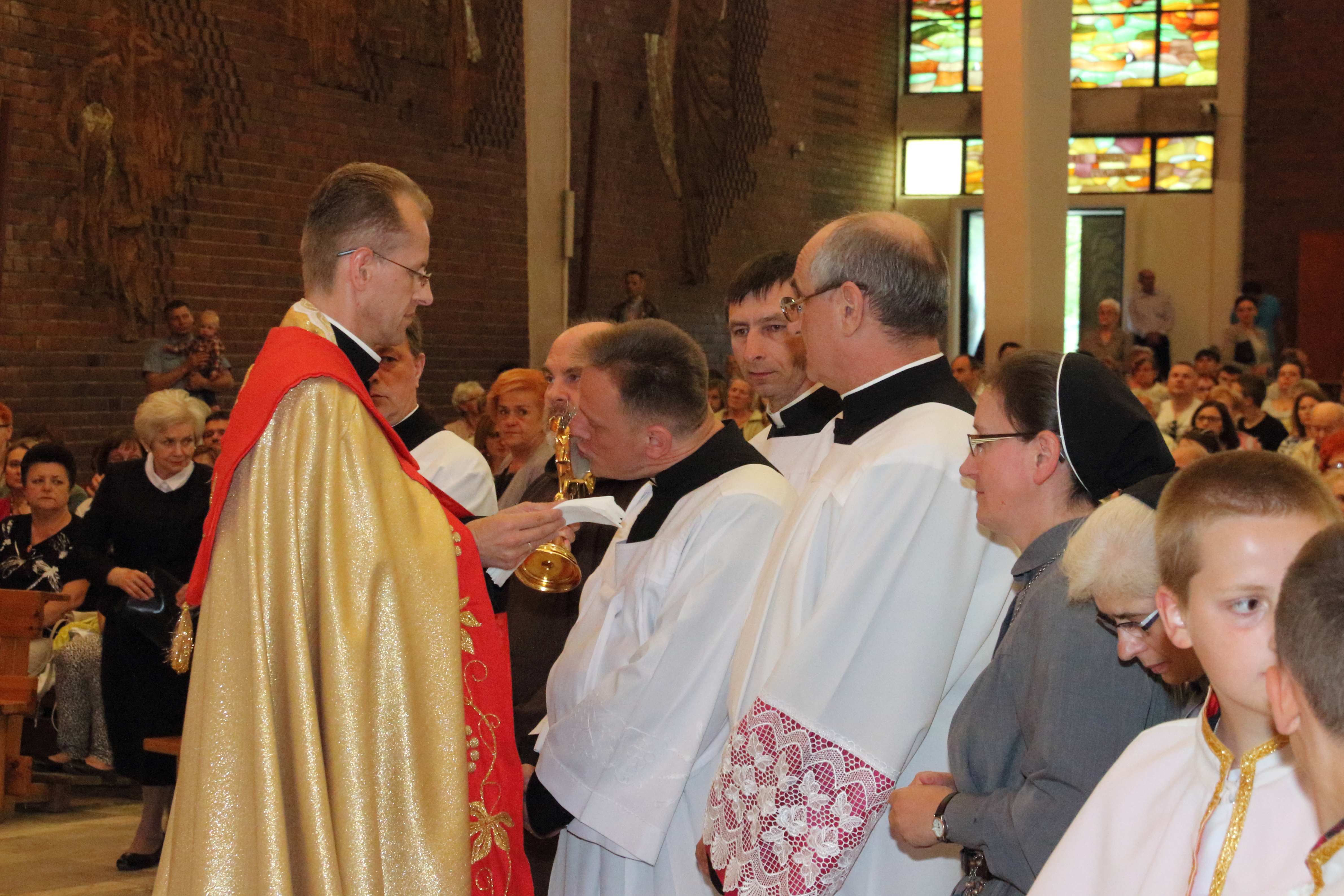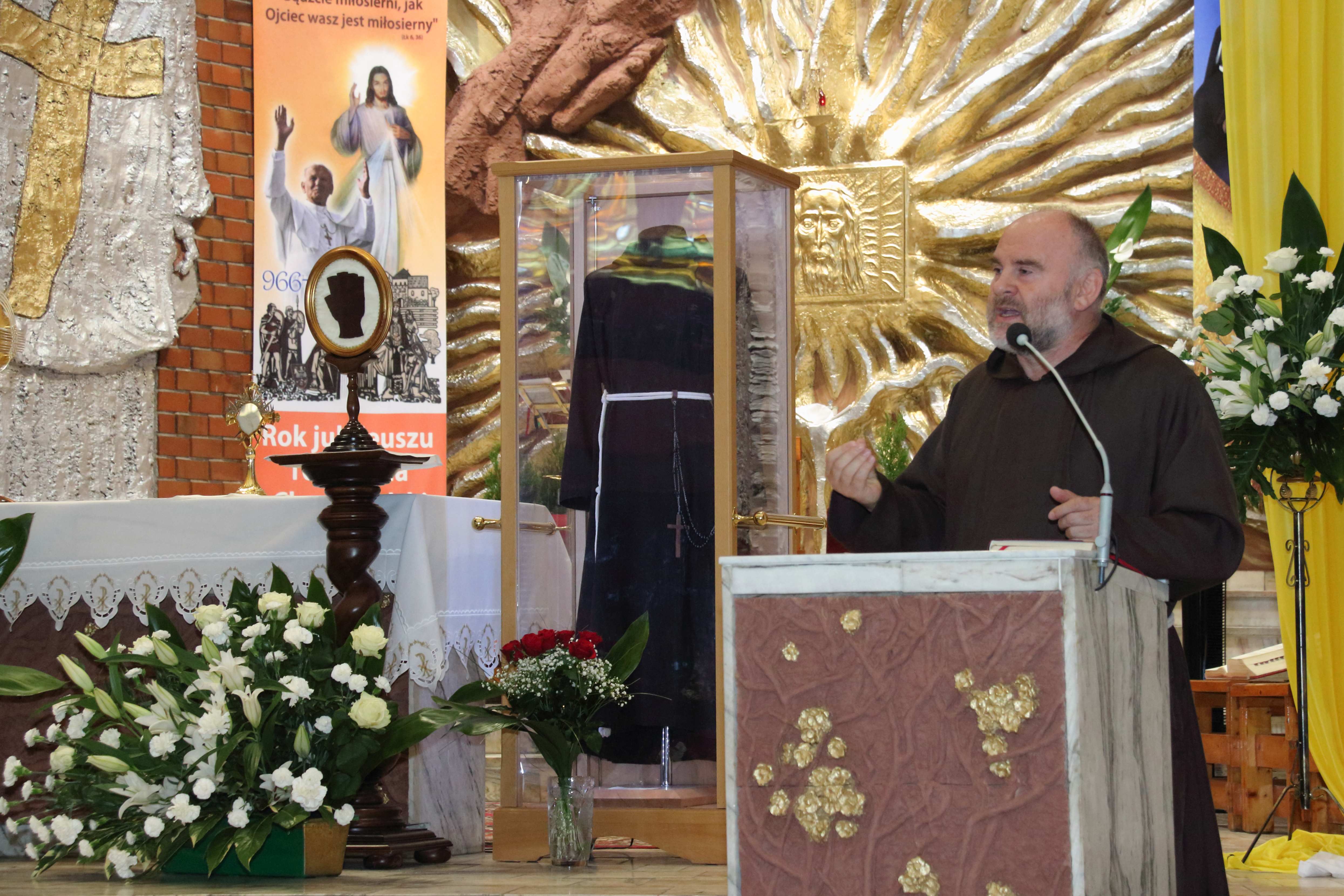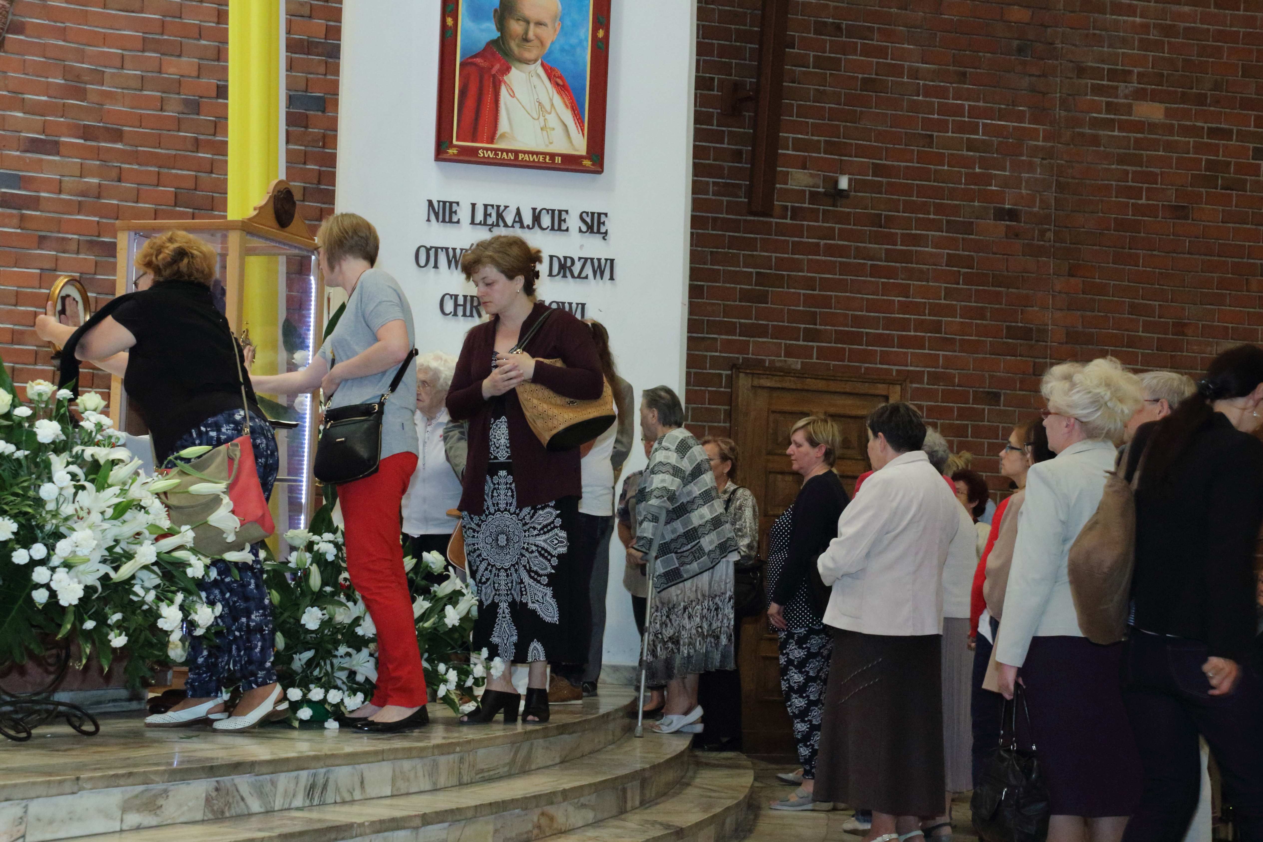 O godz. 16,3o przez Bramę Miłosierdzia uroczyście wprowadzone zostały relikwie św. Ojca Pio: habit, rękawiczka skrywająca stygmaty i bandaż z Jego krwią. Po wprowadzeniu, odprawiona została Koronka do Bożego Miłosierdzia z wystawieniem Najświętszego Sakramentu i ucałowaniem relikwii św. Ojca Pio. O godz. 18.oo uroczysta Msza św. koncelebrowana pod przewodnictwem ks. Biskupa Jana Tyrawy. Relikwie O. Pio można było adorować do poniedziałku. Po Mszy św. o godz. 10.oo odbyło się pożegnanie przybyłych do parafii szczególnych relikwii włoskiego stygmatyka. Przez dziesięć dni relikwie o. Pio nawiedzą dwanaście parafii i klasztorów w całej Polsce. Relikwie Ojca Pio przybywają do miejsc, w których od wielu lat jest żywo obecny, jako orędownik u Boga i przewodnik na duchowych drogach, gdzie działają jego Grupy Modlitwy.