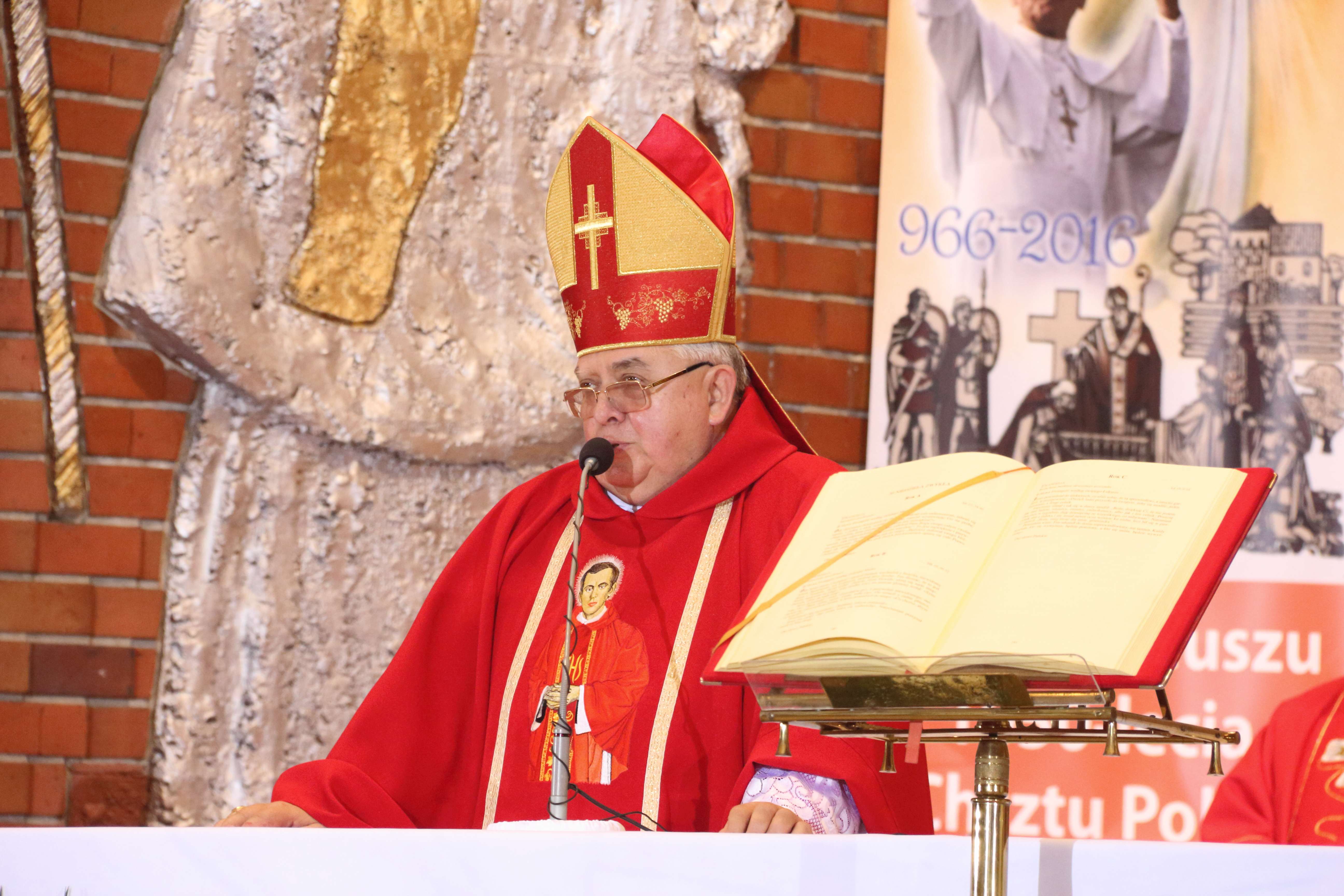 Biskup ordynariusz Jan Tyrawa przypomniał także, że w czasach zbrodniczego systemu dla Boga nie było w ogóle miejsca. – Błogosławiony ks. Jerzy Popiełuszko ginie nie dlatego, że komunizm odniósł sukces. Ginie dlatego, że komunizm sukcesu nie odniósł, a mimo to się bronił. Została po nim tylko pustka. Fenomen tego kapłana polega na tym, że stanął wobec systemu nie z siłą militarną, ale ze słowem. To słowo okazało się być czymś najbardziej niebezpiecznym. Słowo okazało się groźniejsze niż potęga militarna, z którą ten system wiązał wszelkie nadzieję, wszelką odnowę – dodał.