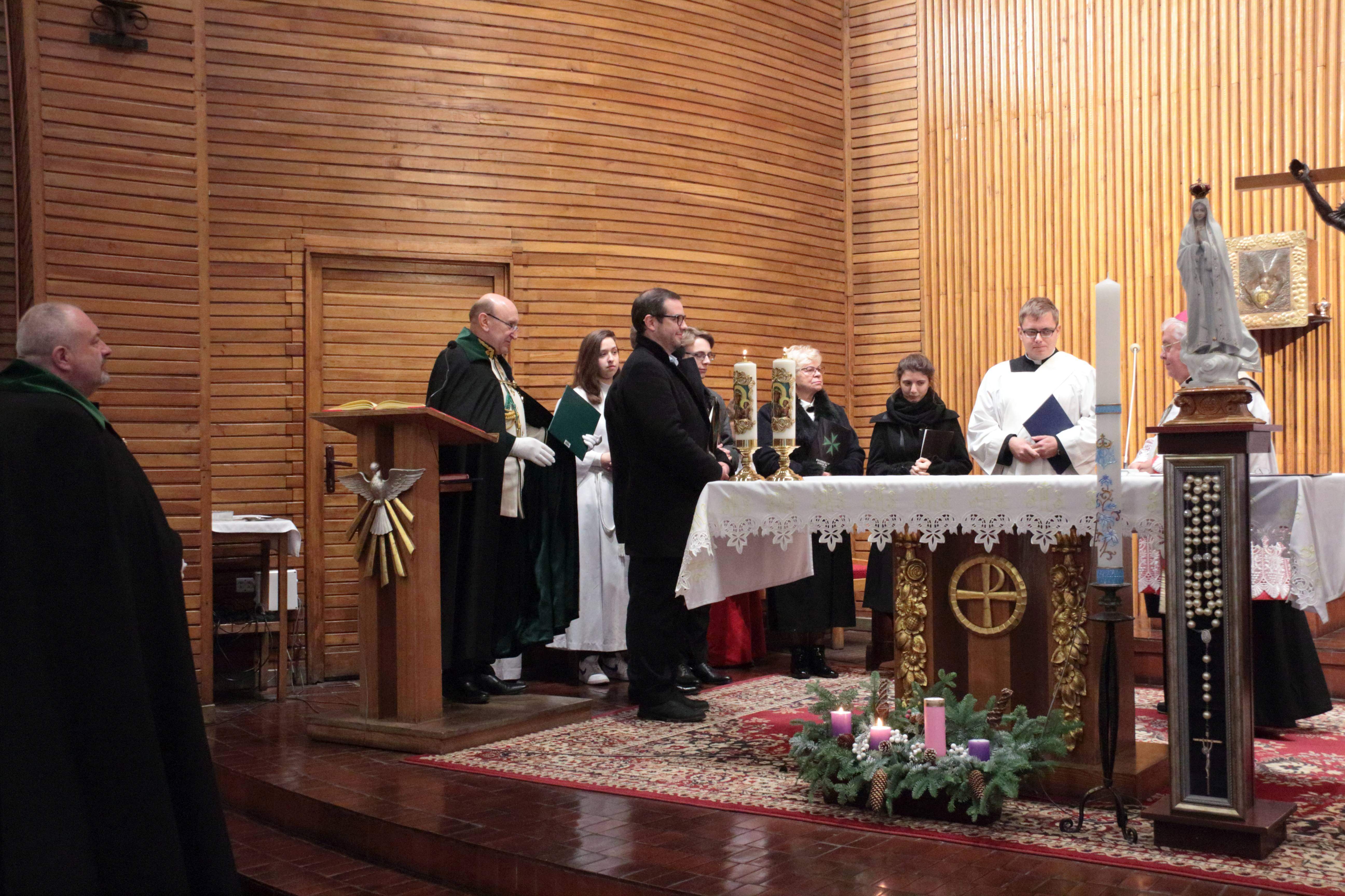W sobotę 15 grudnia o godz. 12.oo w Kościele Nawiedzenia parafii Świętych Polskich Braci Męczenników na bydgoskich Wyżynach odbyło się nabożeństwo adwentowe i modlitwa Anioł Pański pod przewodnictwem księdza Biskupa Jana Tyrawy, Ordynariusza Bydgoskiego. Podczas nabożeństwa nastąpiło przyjęcie pięciu nowych postulantów do Rycerskiego i Szpitalnego Zakonu św. Łazarza z Jerozolimy. Z lazarskim zawołaniem „Atavis et Armis” witamy w naszych szeregach trzech Braci i dwie Siostry. Po nabożeństwie, zgodnie z coroczną tradycją Komandorii Kujawsko-Pomorskiej, była okazja do podzielenia się opłatkiem i złożeniem życzeń świątecznych.