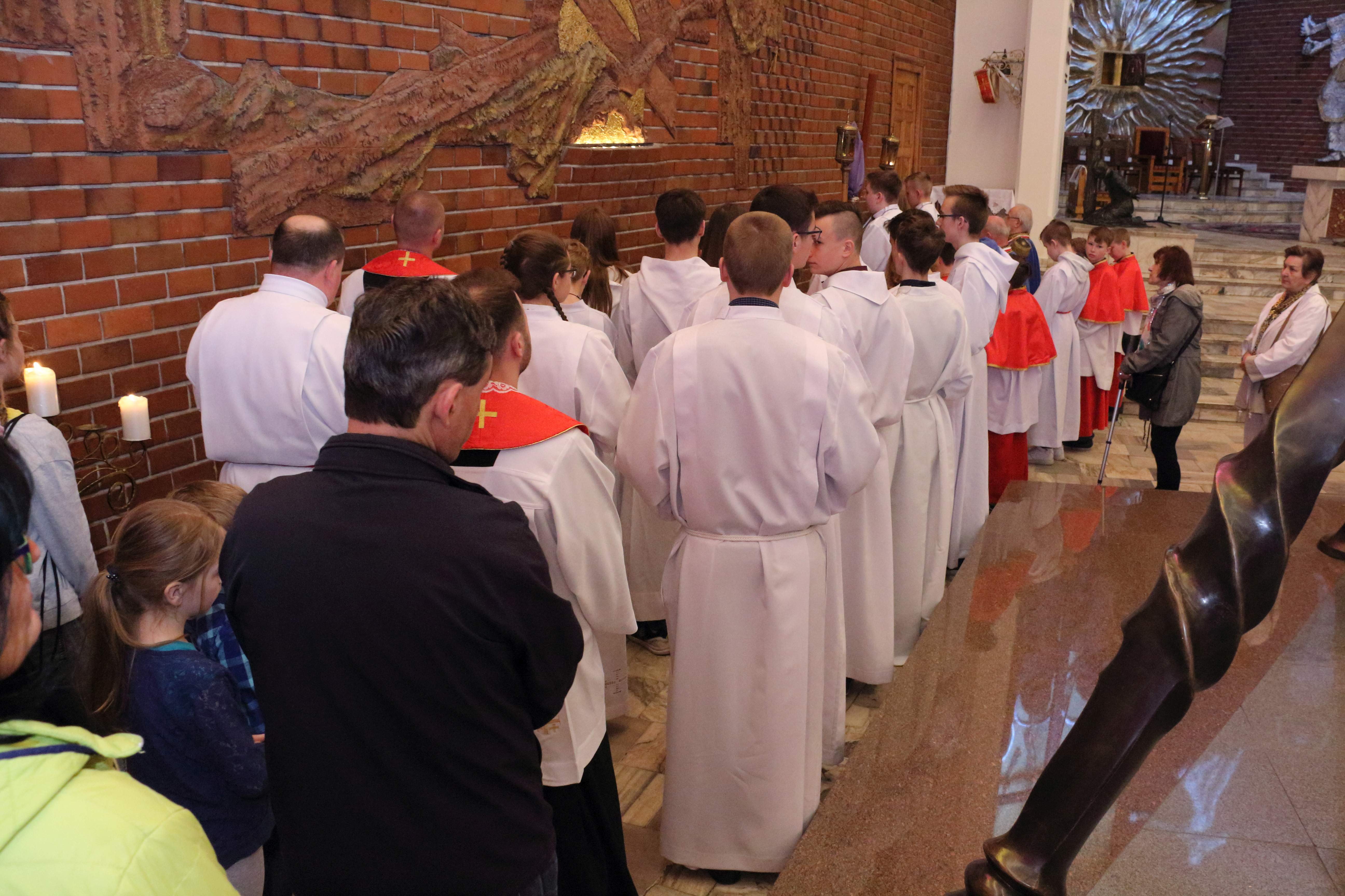 Wielki Piątek to dzień Krzyża. Po południu we wszystkich świątyniach katolickich odprawiana jest niepowtarzalna wielkopiątkowa Liturgia Męki Pańskiej. Celebrans i asysta wchodzą w ciszy. Następnie czyta się lub śpiewa, zwykle z podziałem na role, opis Męki Pańskiej według św. Jana. Po homilii w bardzo uroczystej modlitwie wstawienniczej Kościół poleca Bogu siebie i cały świat, wyrażając w ten sposób pragnienie samego Chrystusa: aby wszyscy byli zbawieni. Szczególnie przejmujące są modlitwy o jedność chrześcijan, za Żydów i za niewierzących.