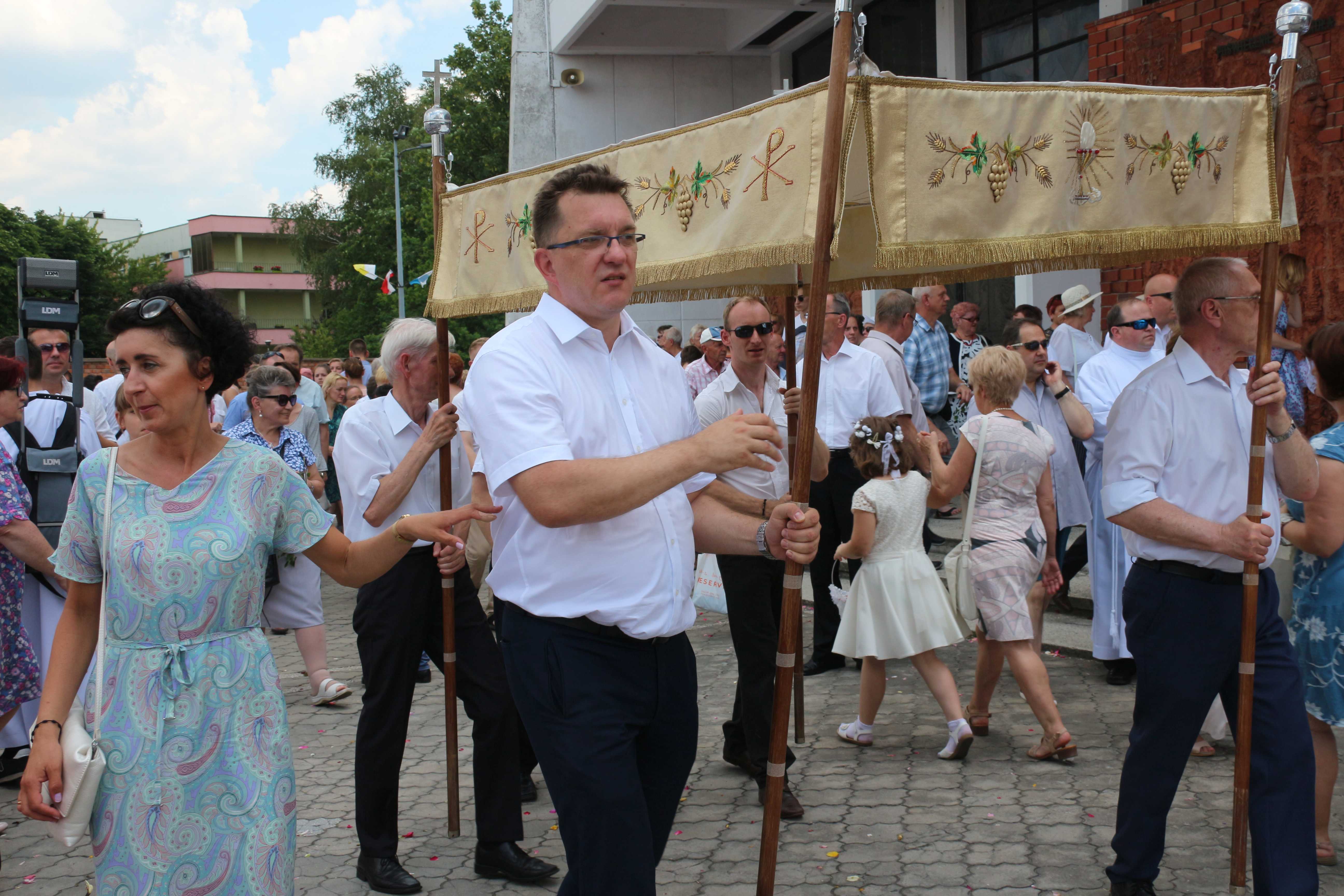 Procesja Eucharystyczna w Boże Ciało jak w latach ubiegłych przeszła ulicami: ks. J. Popiełuszki; Białogardzką; Białostocką; Łomżyńską i ks. J. Popiełuszki. Pierwszy ołtarz przygotowany został przez Stowarzyszenie Rodzin Katolickich, Legion Maryi i Różaniec Rodziców w intencji dzieci, pozostałe – Neokatechumenat, młodzież, Nadzwyczajni Szafarze Komunii św. Nie tylko na trasie procesji w wielu domach zostały wywieszone flagi i udekorowane okna. Jest to zewnętrzny wyraz naszej wiary i miłości do Chrystusa, a także forma sprzeciwu wobec ostatnich aktów profanacji wizerunku Matki Najświętszej, Mszy świętej i procesji Eucharystycznej.