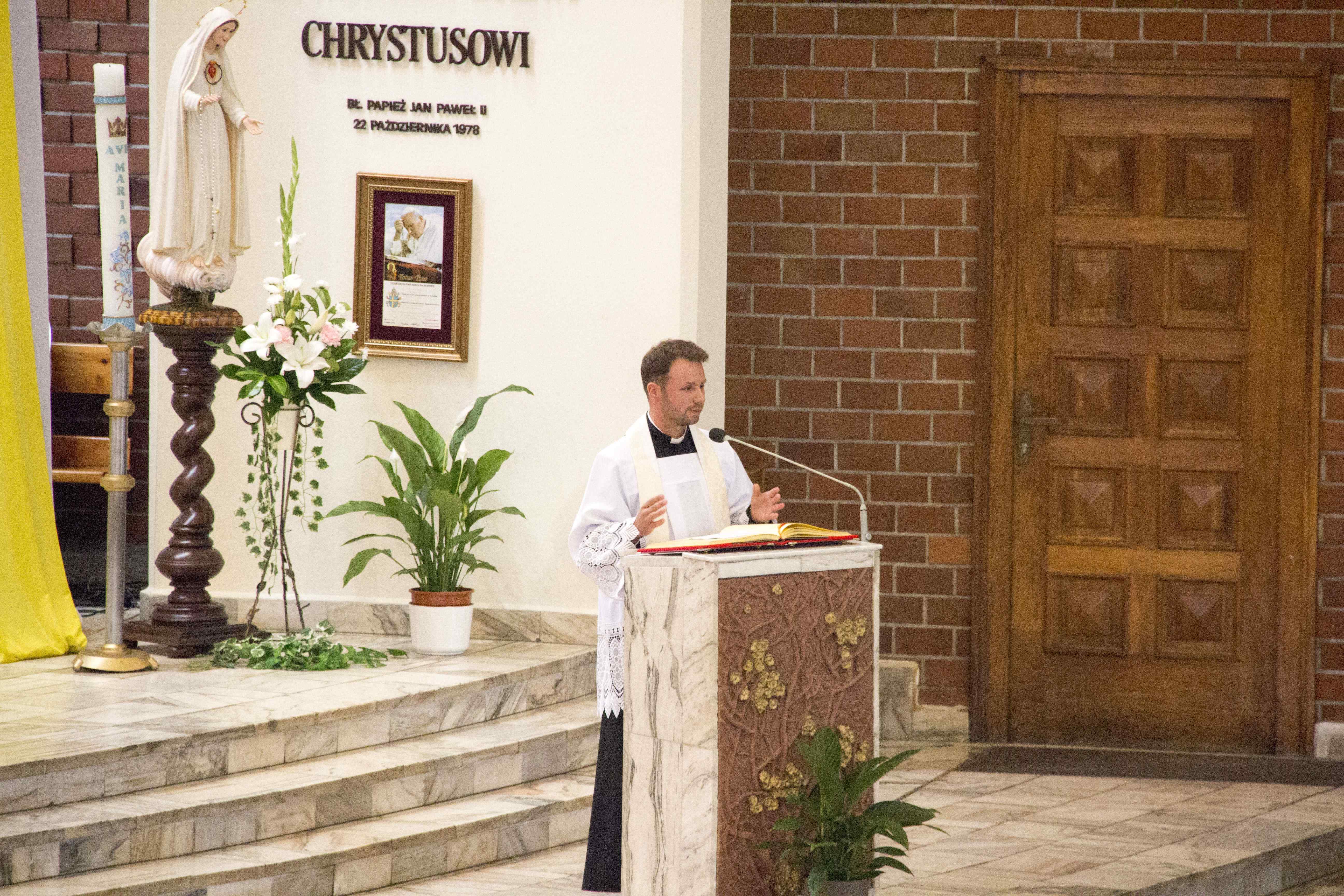 O godz. 10,15 Mszę św. prymicyjną odprawił ks. Damian Lenckowski, syn naszej parafii, pracujący na misjach w Nigerii. Po Mszy św. ks. Neoprezbiter udzielił prymicyjnego błogosławieństwa. Po błogosławieństwie kończącym liturgię ksiądz neoprezbiter podziękował wszystkim uczestnikom liturgii za obecność i wspólną modlitwę. Ksiądz Damian w najbliższych dniach powróci do Nigerii, aby teraz jako prezbiter Kościoła, służyć mieszkańcom Afryki, pełniej posługiwać wierzącym jak i tym, którzy nigdy nie słyszeli o Jezusie i Kościele. Będzie pierwszym kapłanem we Wspólnocie Apostołów Nadziei.