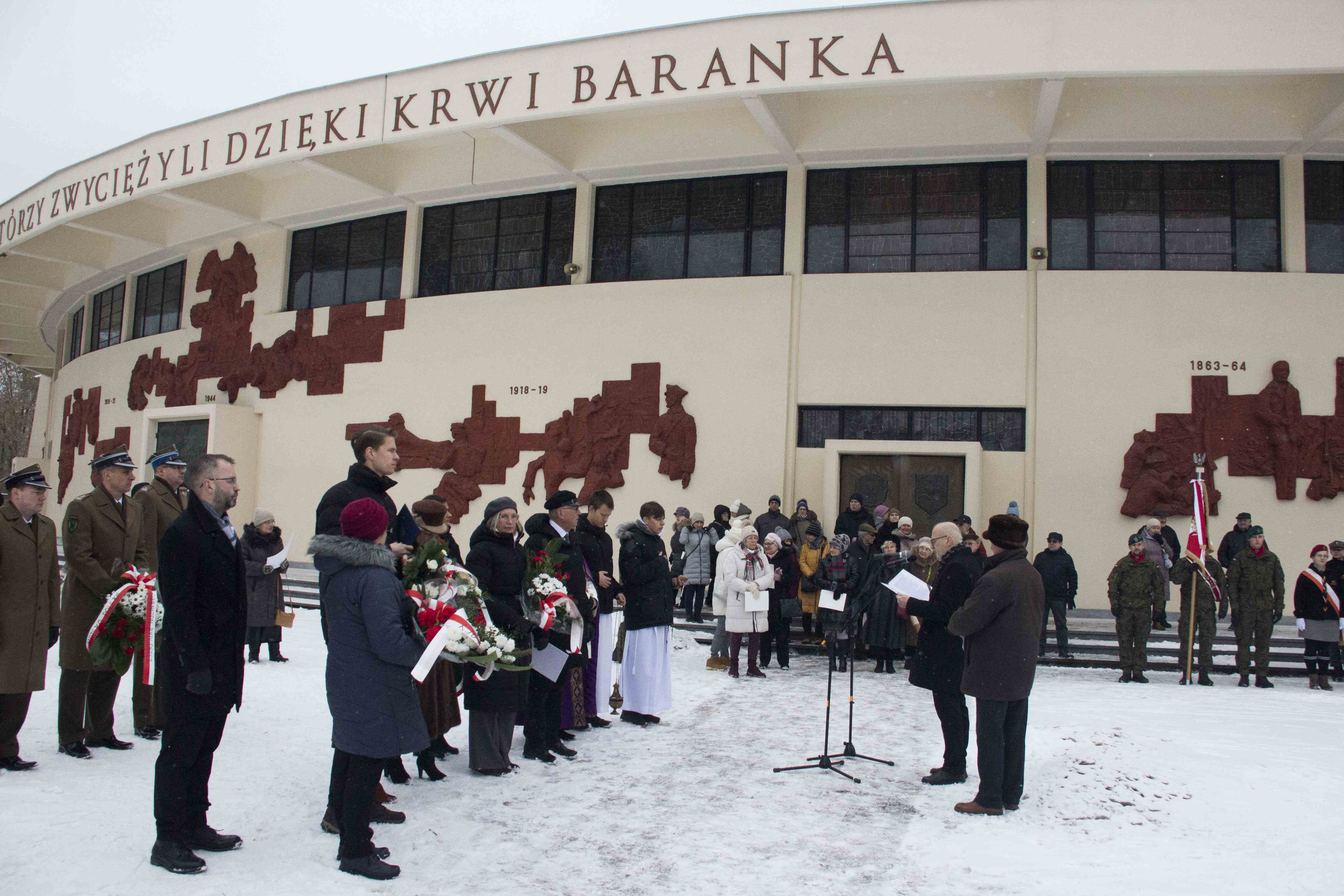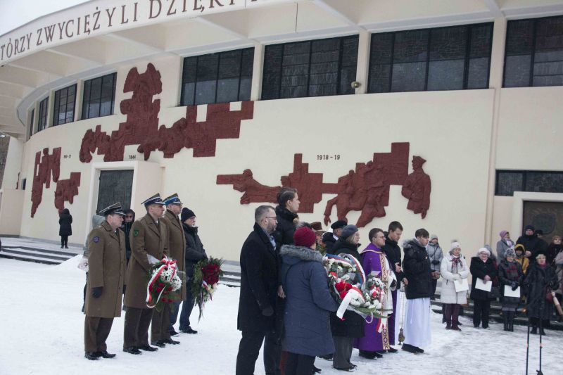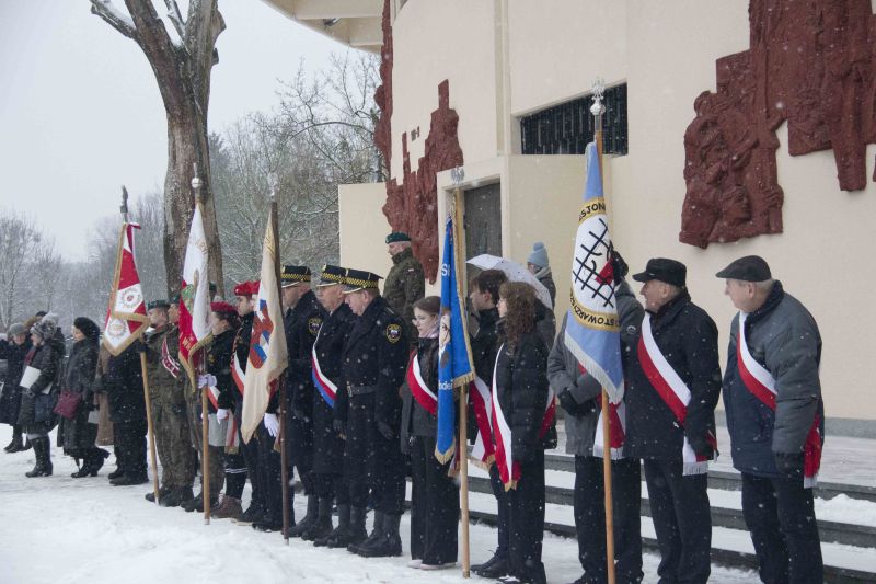Po mszy św. uczestnicy uroczystości pod Pomnikiem Pamięci Sybiraków w obecności Wojska Polskiego, służb mundurowych oraz pocztów sztandarowych różnych organizacji i instytucji - w tym harcerzy - delegacji władz samorządowych, członków Związku Sybiraków oraz krewnych zesłanych złożyli wiązanki kwiatów i zapalili znicze.
